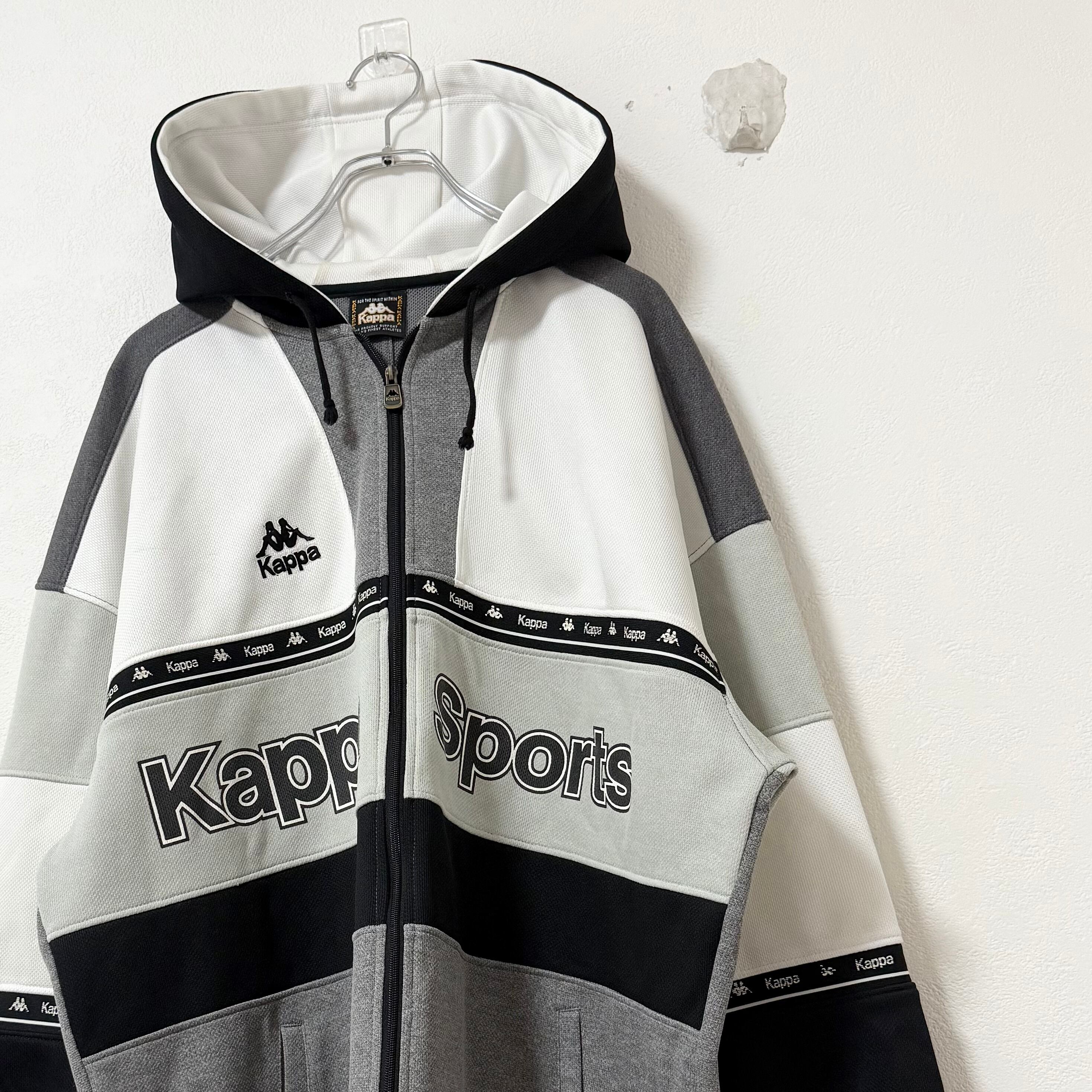 80s〜90s★Vintage/ビンテージ★KAPPA/カッパ★TrackJacket★ジャージ/パーカー★黒×白×グレー★XL