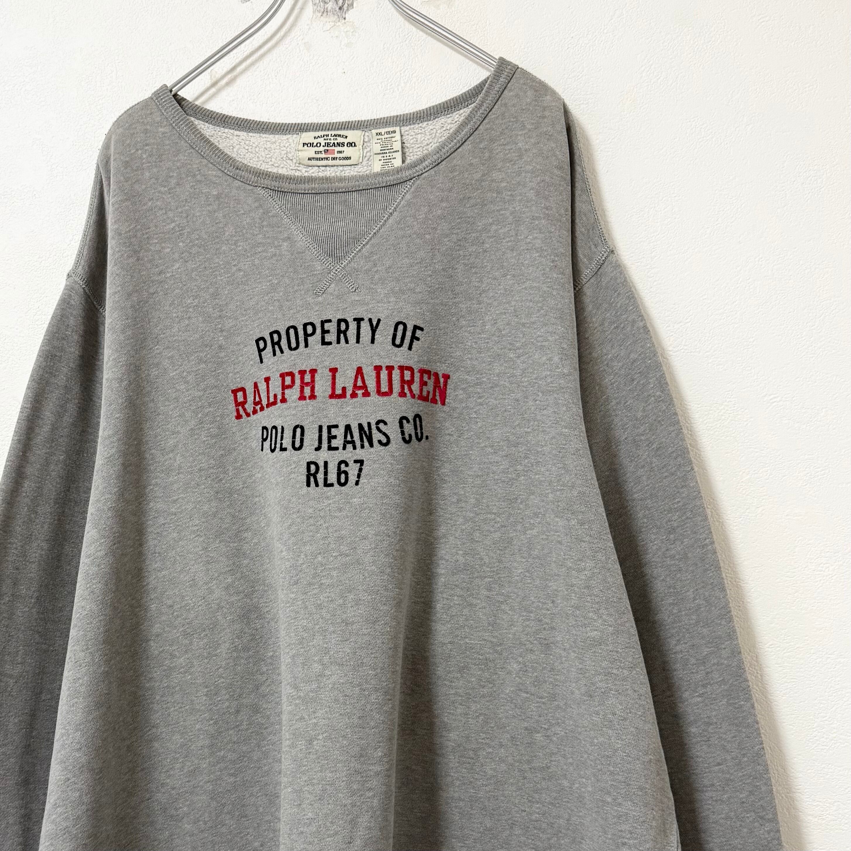 90s★USA製★PoloJeans/ポロジーンズ★RalphLauren/ラルフローレン★Vガゼットスウェット★グレー★2XL
