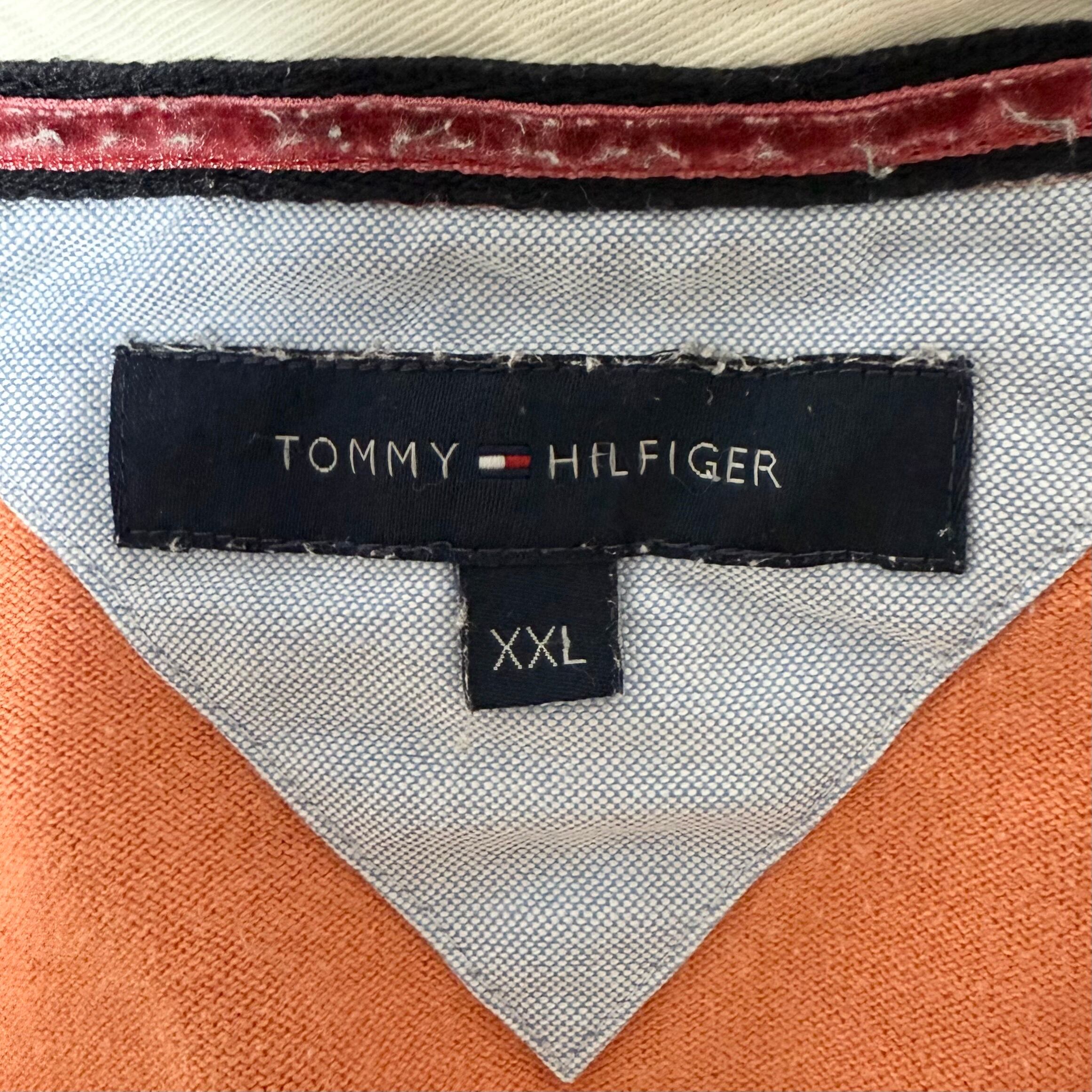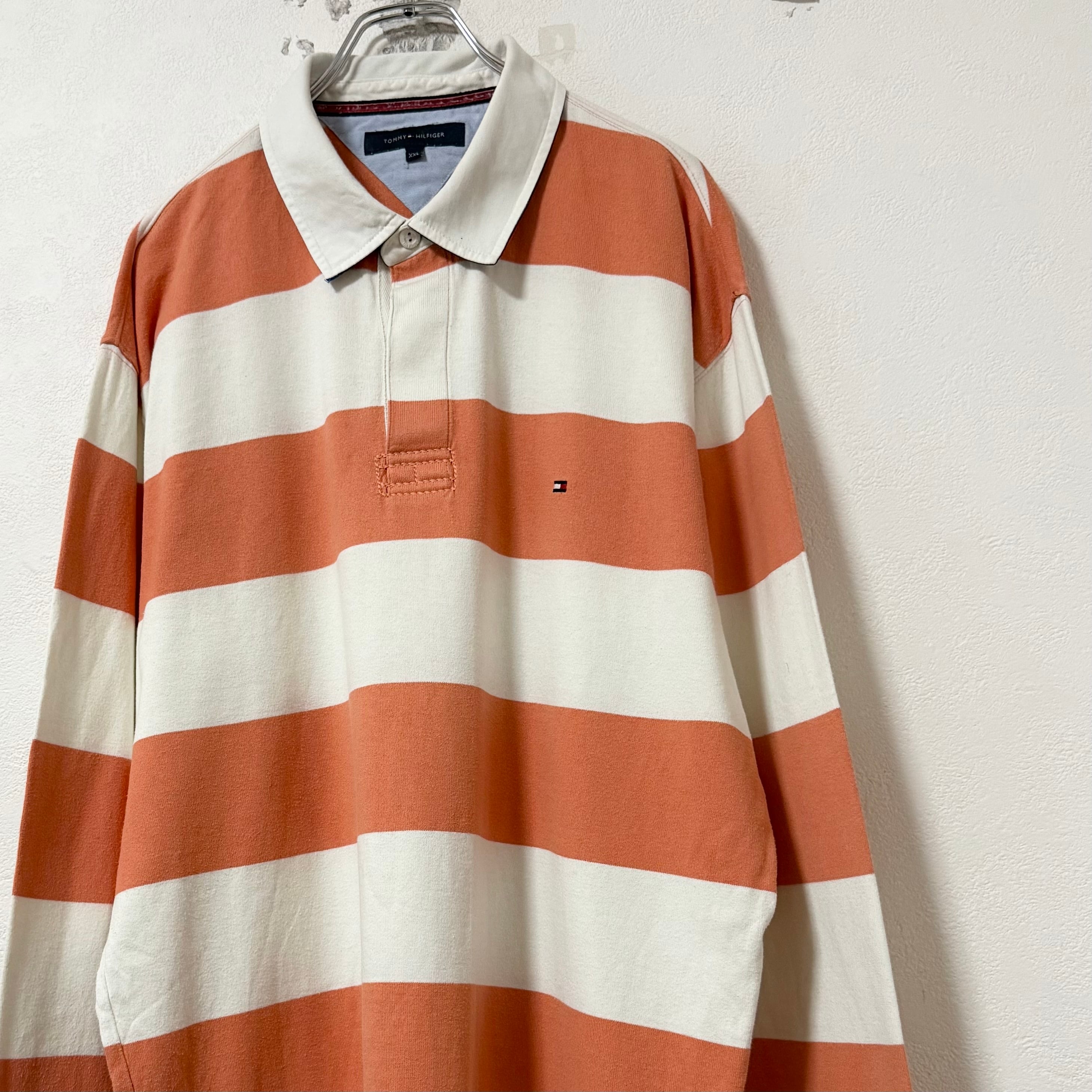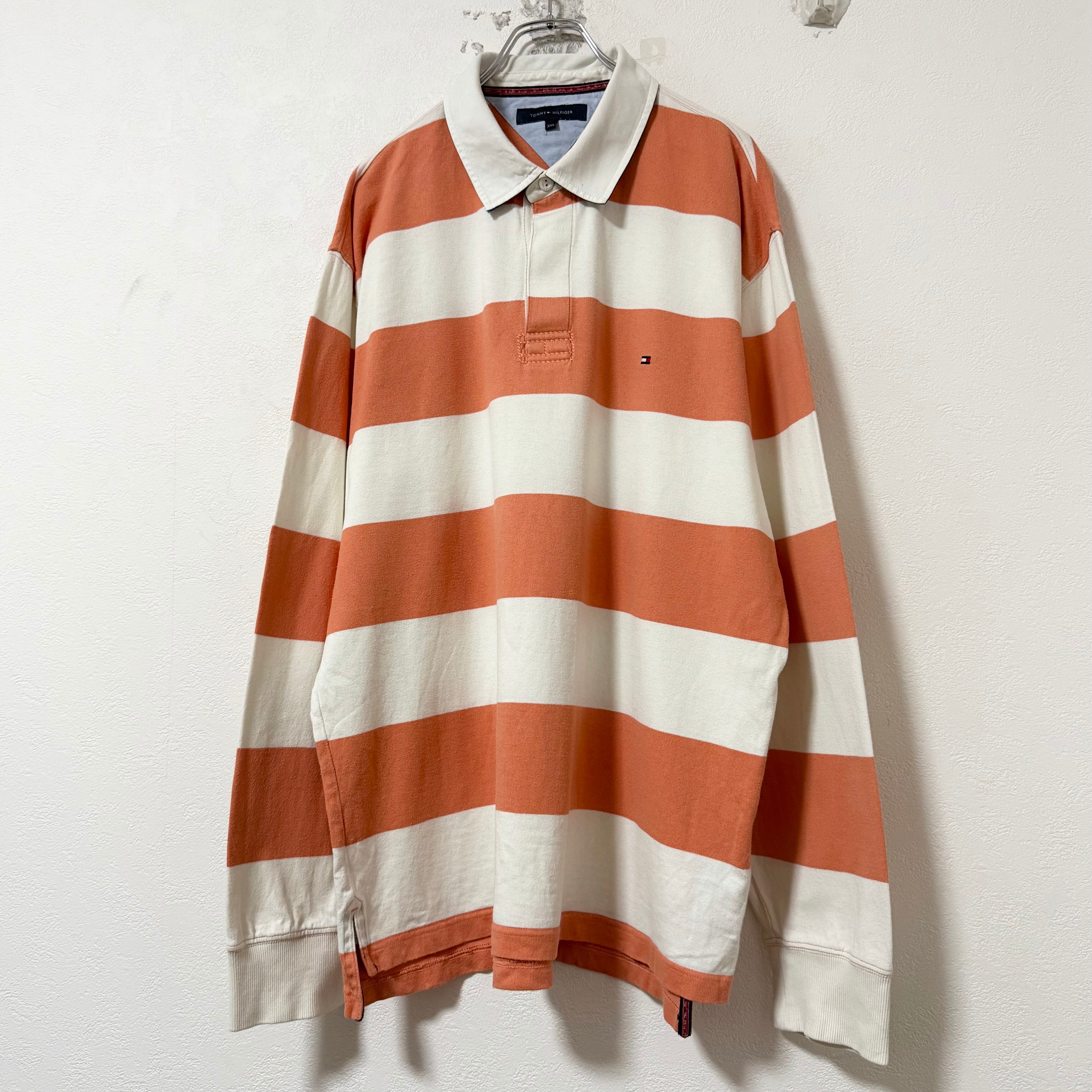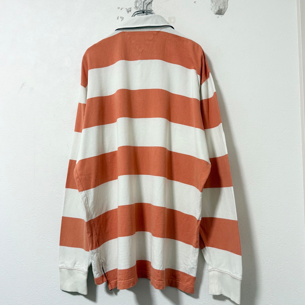 00s★TommyHilfiger★トミーヒルフィガー★ラガーシャツ★ボーダー★オレンジ×ホワイト/白★2XL