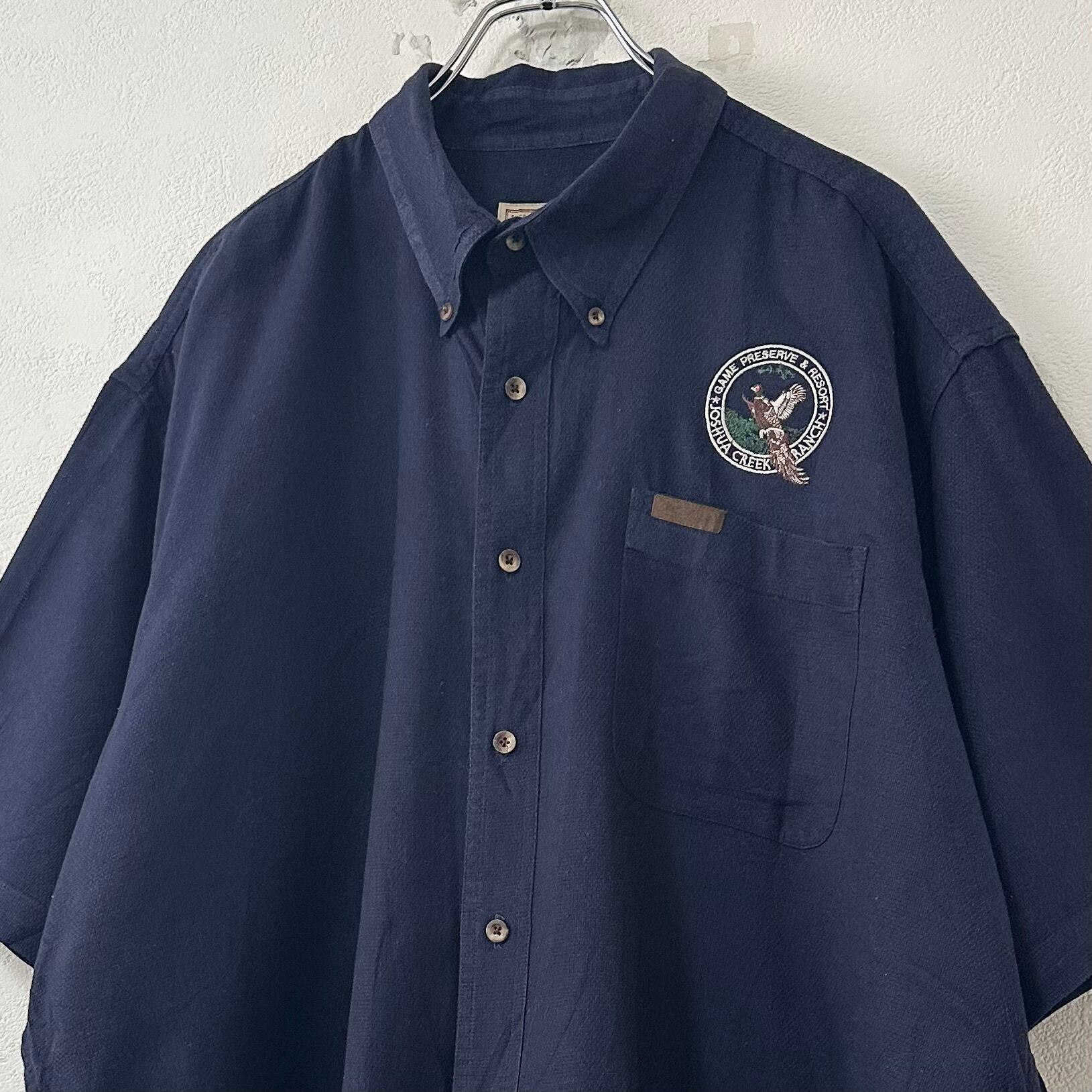 90s★Vintage★Woolrich/ウールリッチ★半袖シャツ★ネイビー/紺★XL