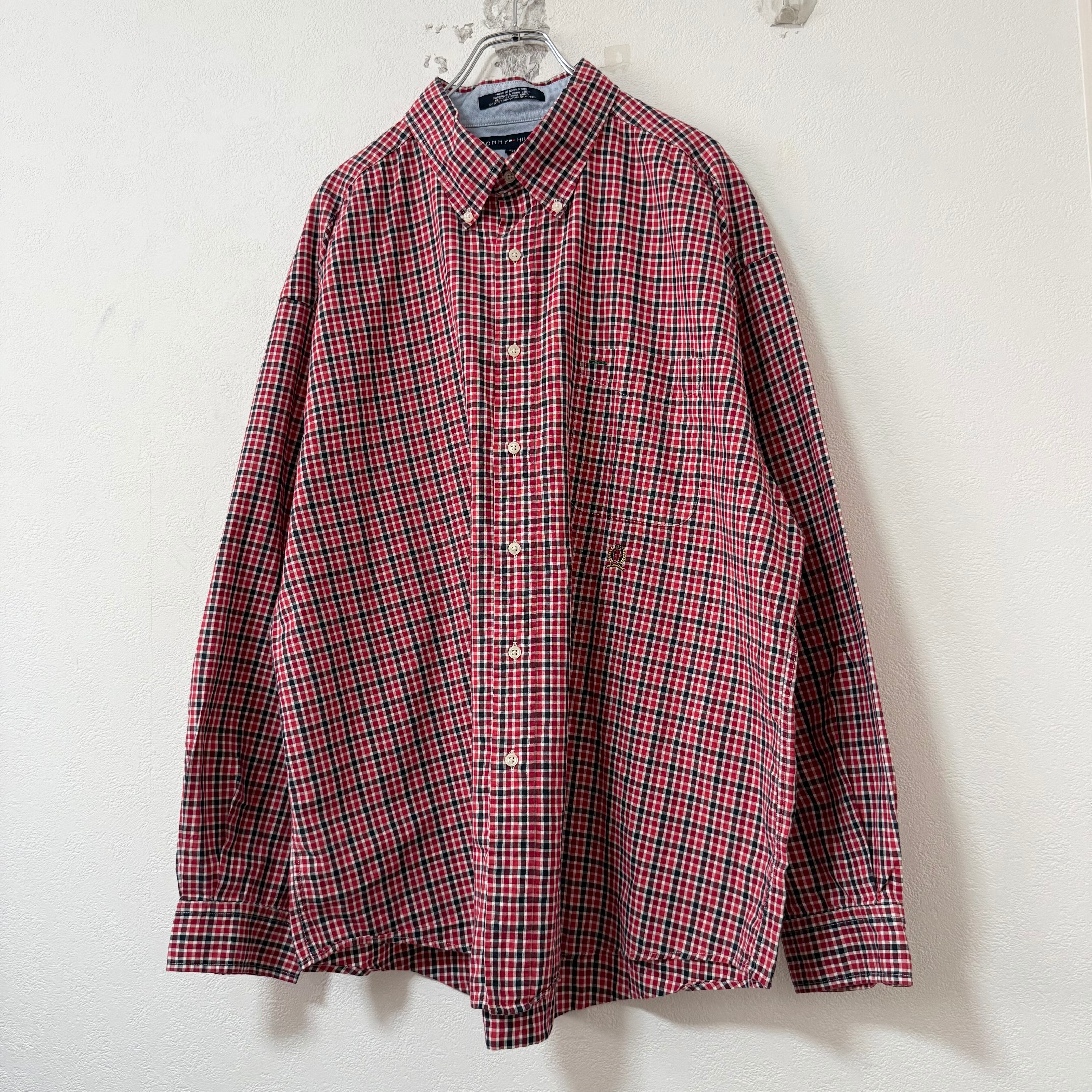 美品★00s★TommyHilfiger/トミーヒルフィガー★長袖チェックシャツ★Red×Navy/赤×紺×白★2XL/XXL