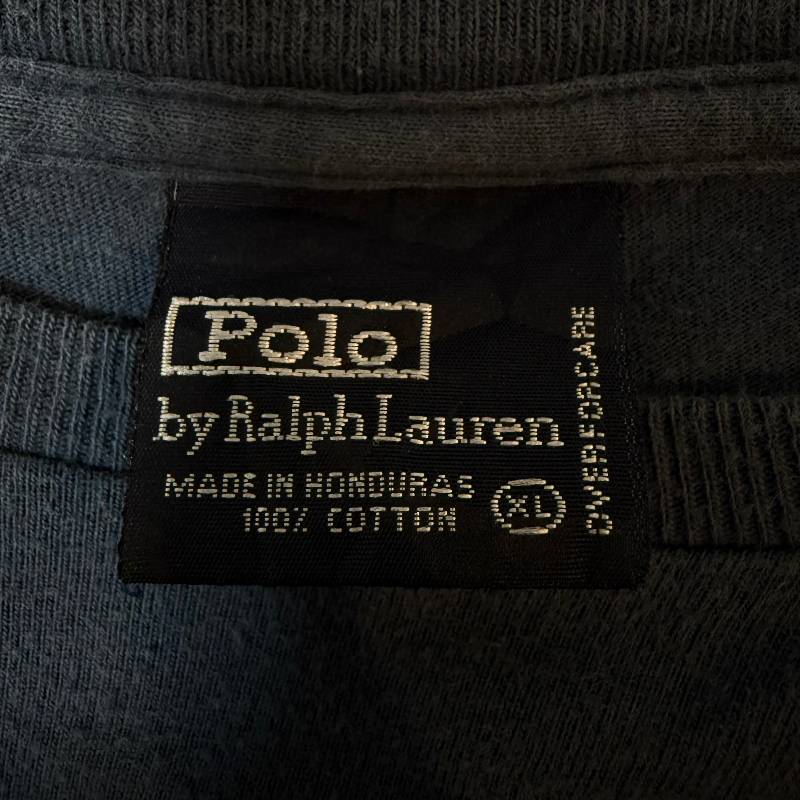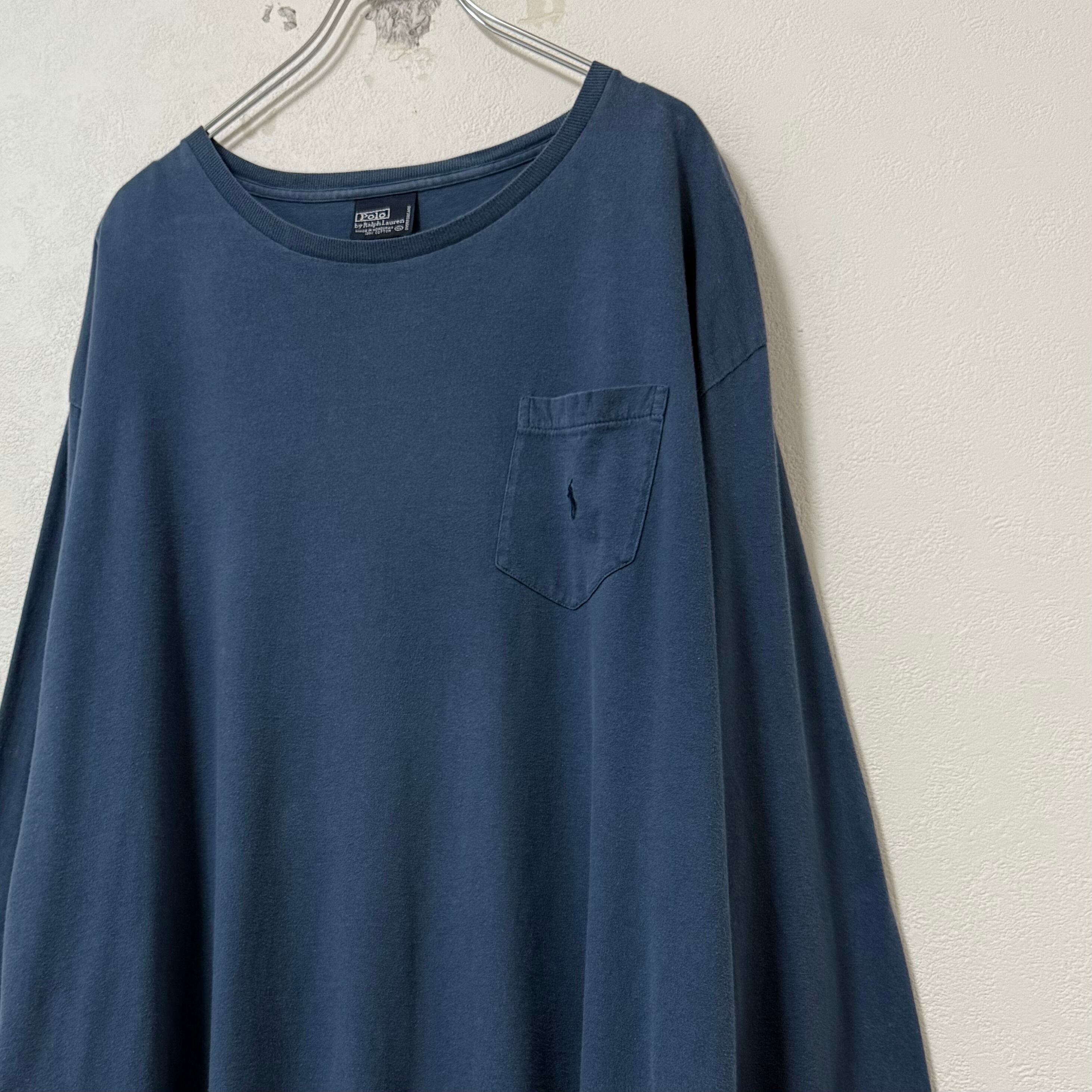90s★Polo RalphLaurenポロラルフローレン★長袖Tシャツ/ロンT★胸ポケ★ネイビー/紺★2XL相当