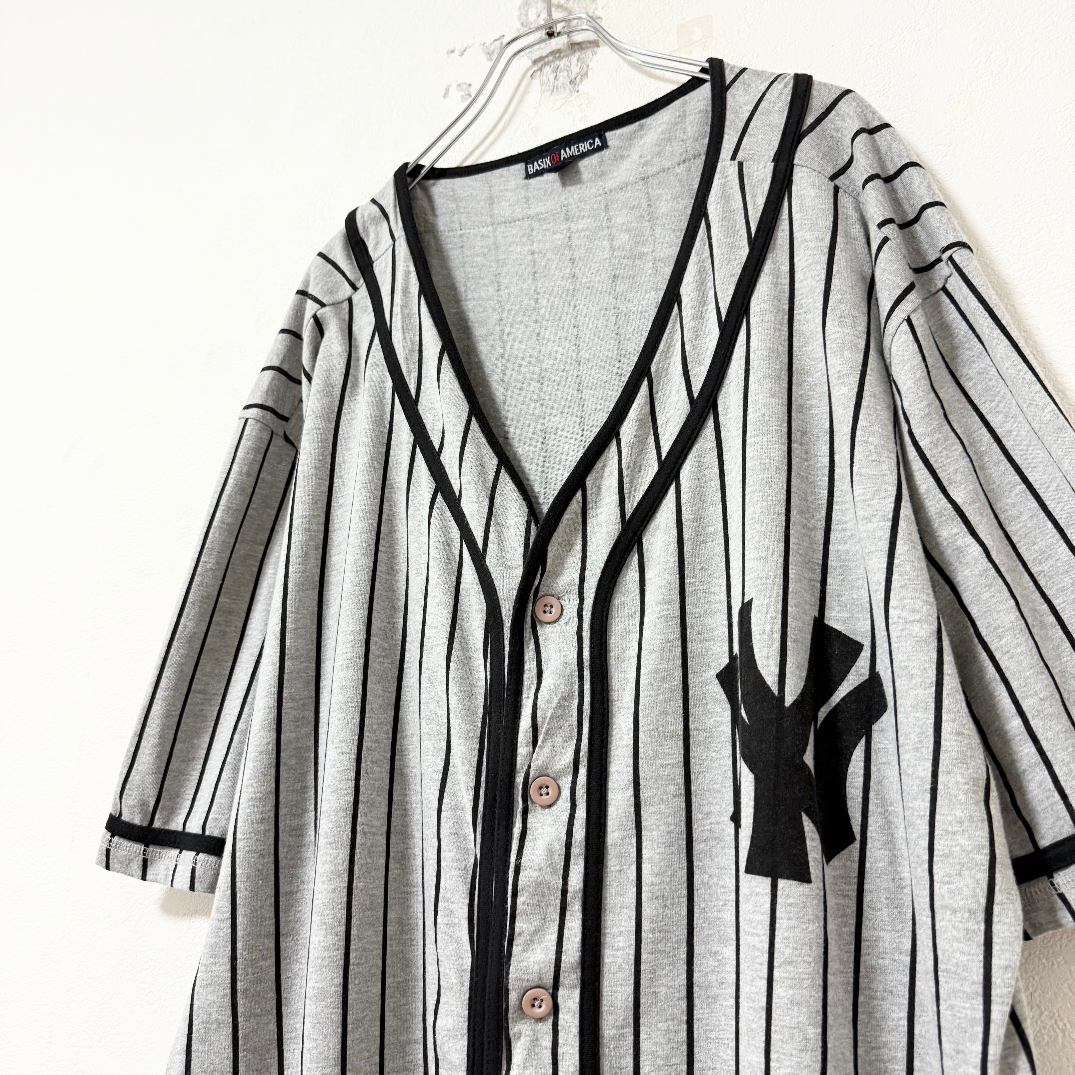 BasixOfAmerica★NY Yankees/ヤンキース★ゲームシャツ★ユニフォーム★スウェット地★グレー×黒★2XL