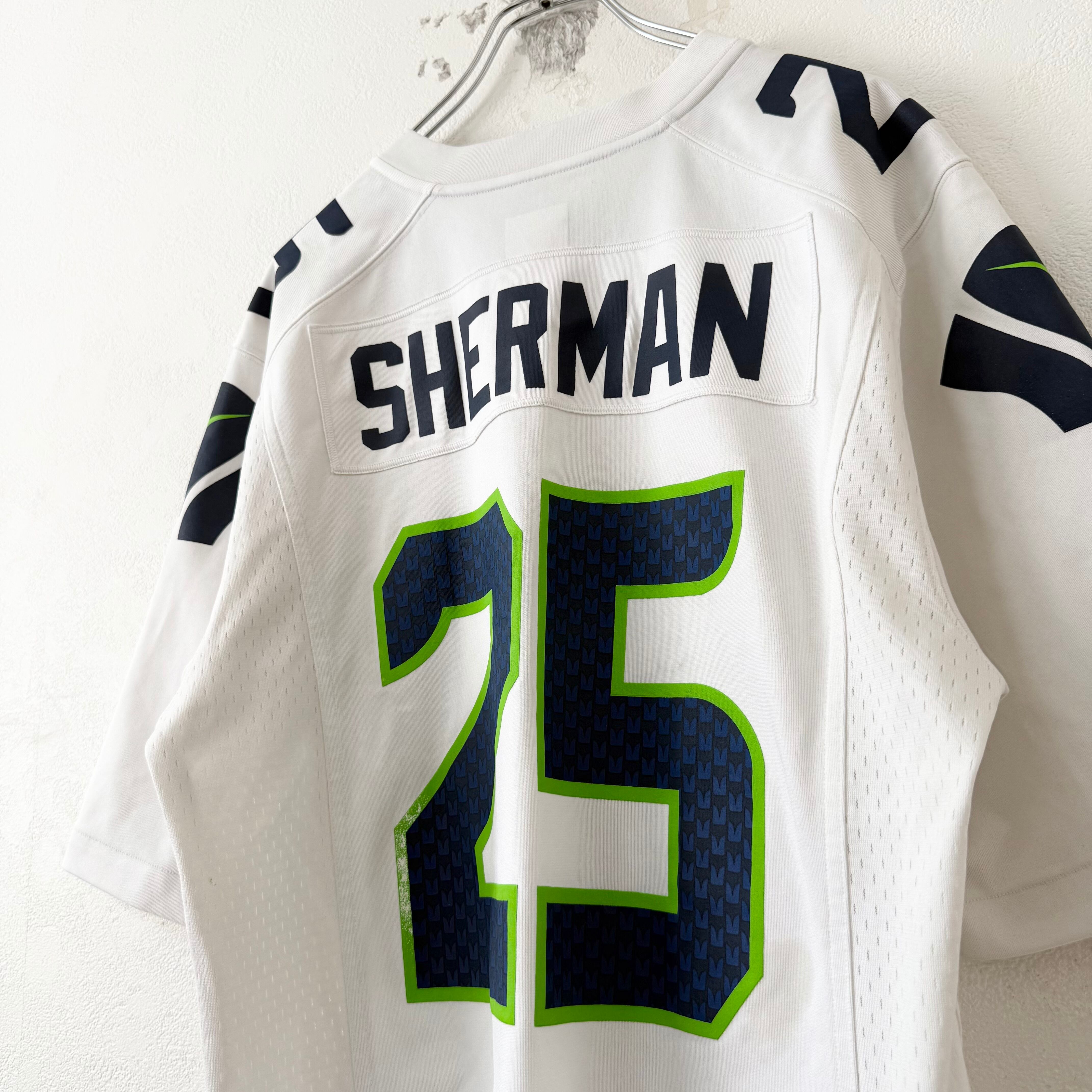 NIKE×NFL★Seahawks/シアトル シーホークス★シャーマン★アメフトゲームシャツ★ホワイト/白紺黄緑★M