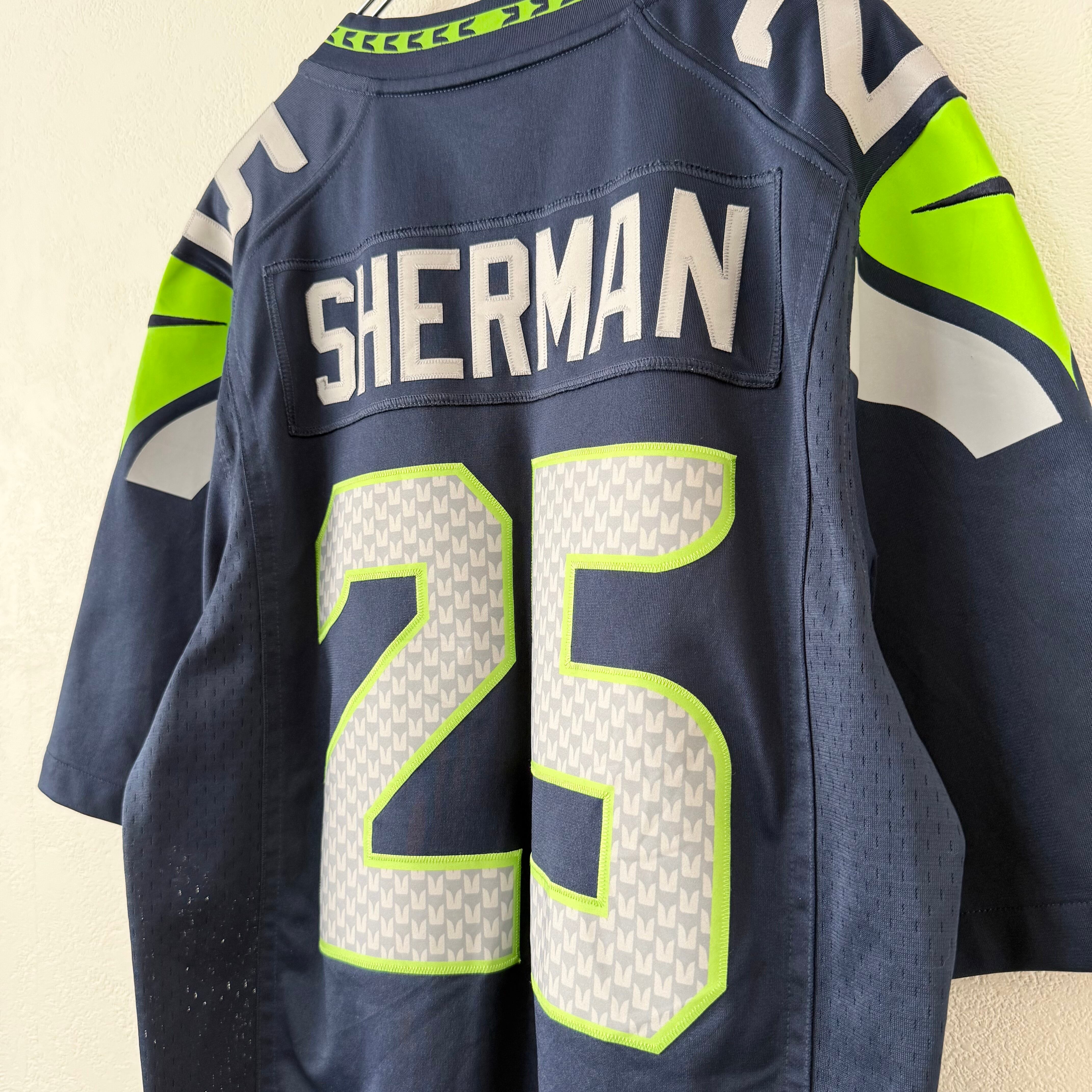 NIKE×NFL★Seahawks/シアトル シーホークス★リチャード・シャーマン★アメフトゲームシャツ★ネイビー/紺白黄緑★S