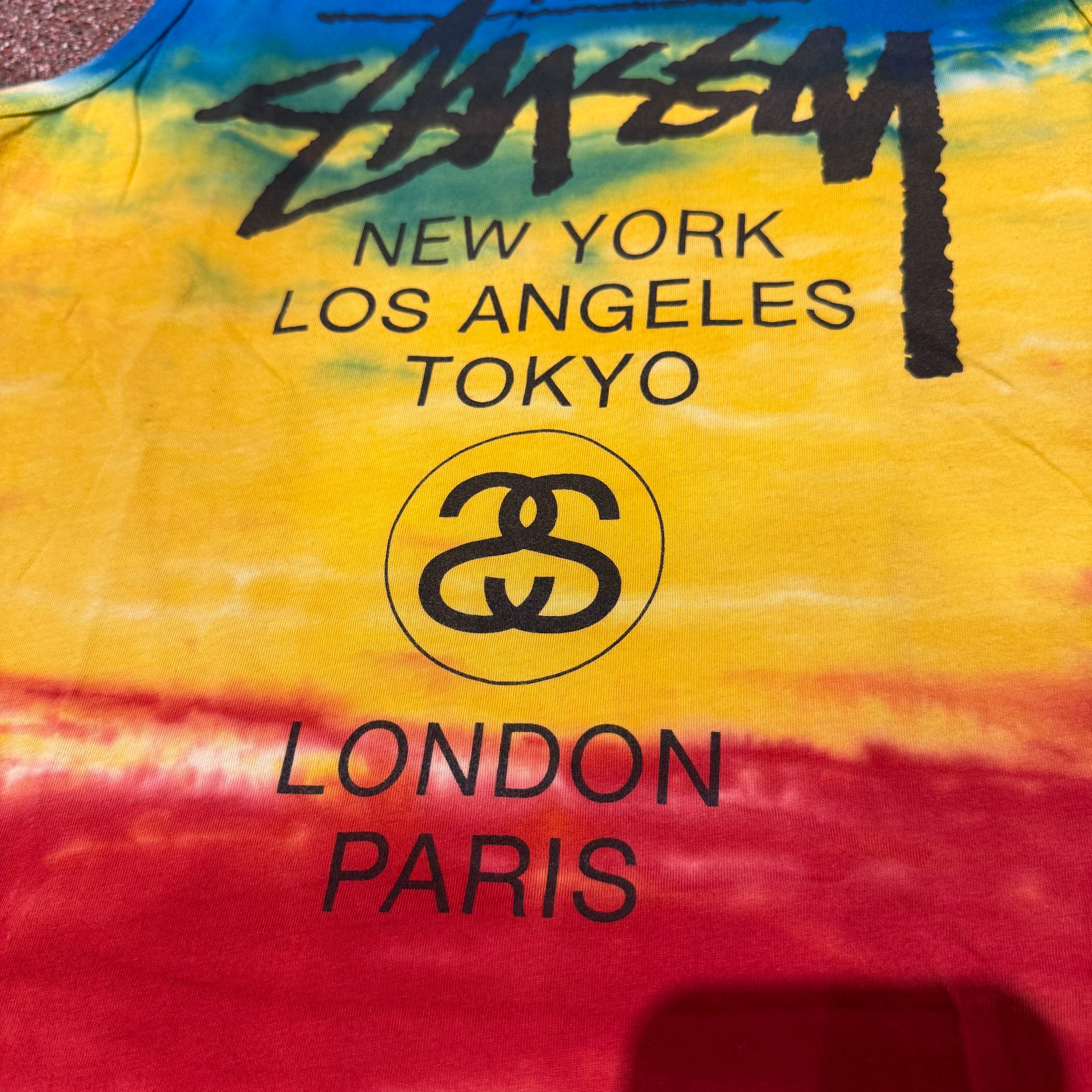 stussy/ステューシー★WorldTour/ワールドツアー★タイダイ★タンクトップ★青黄赤★S