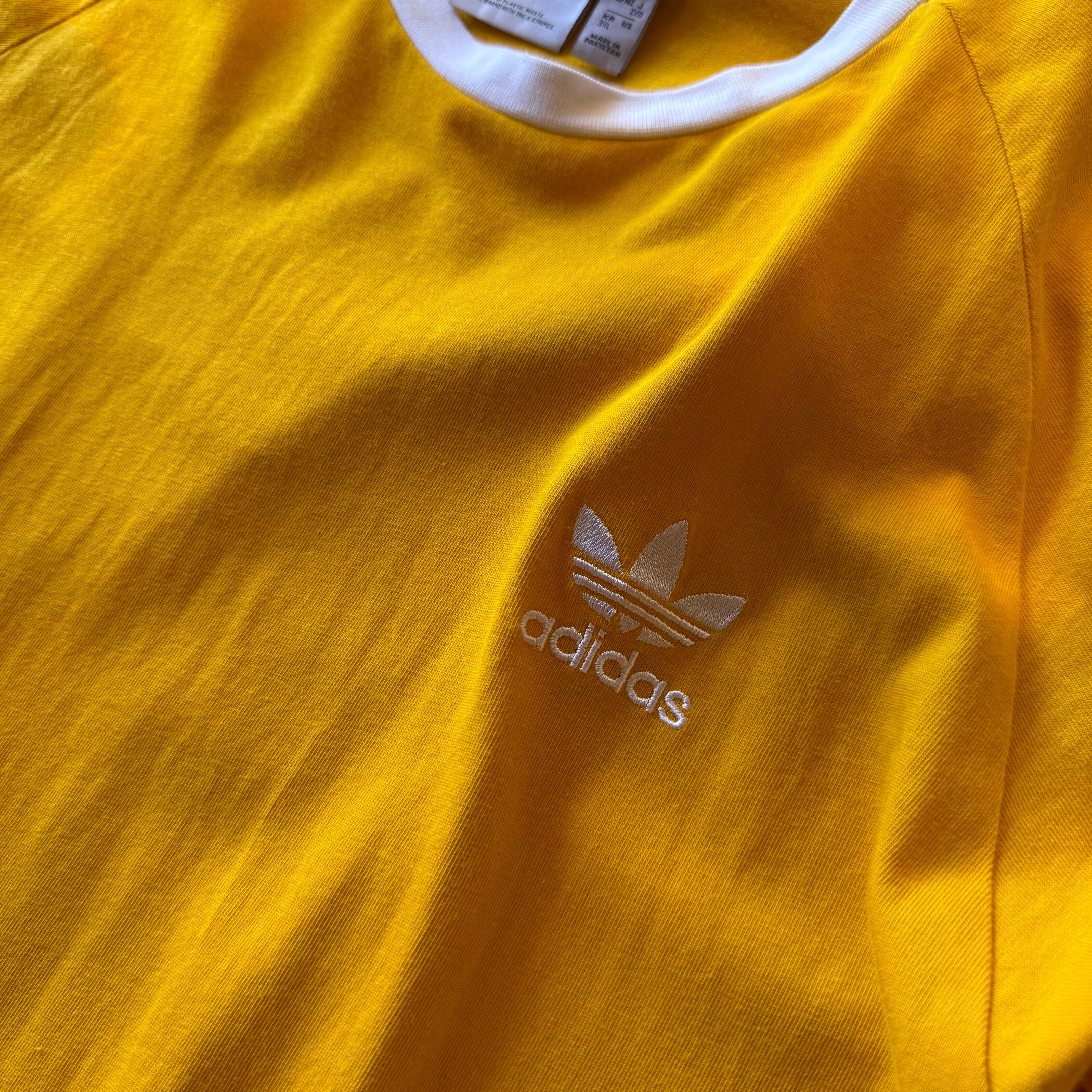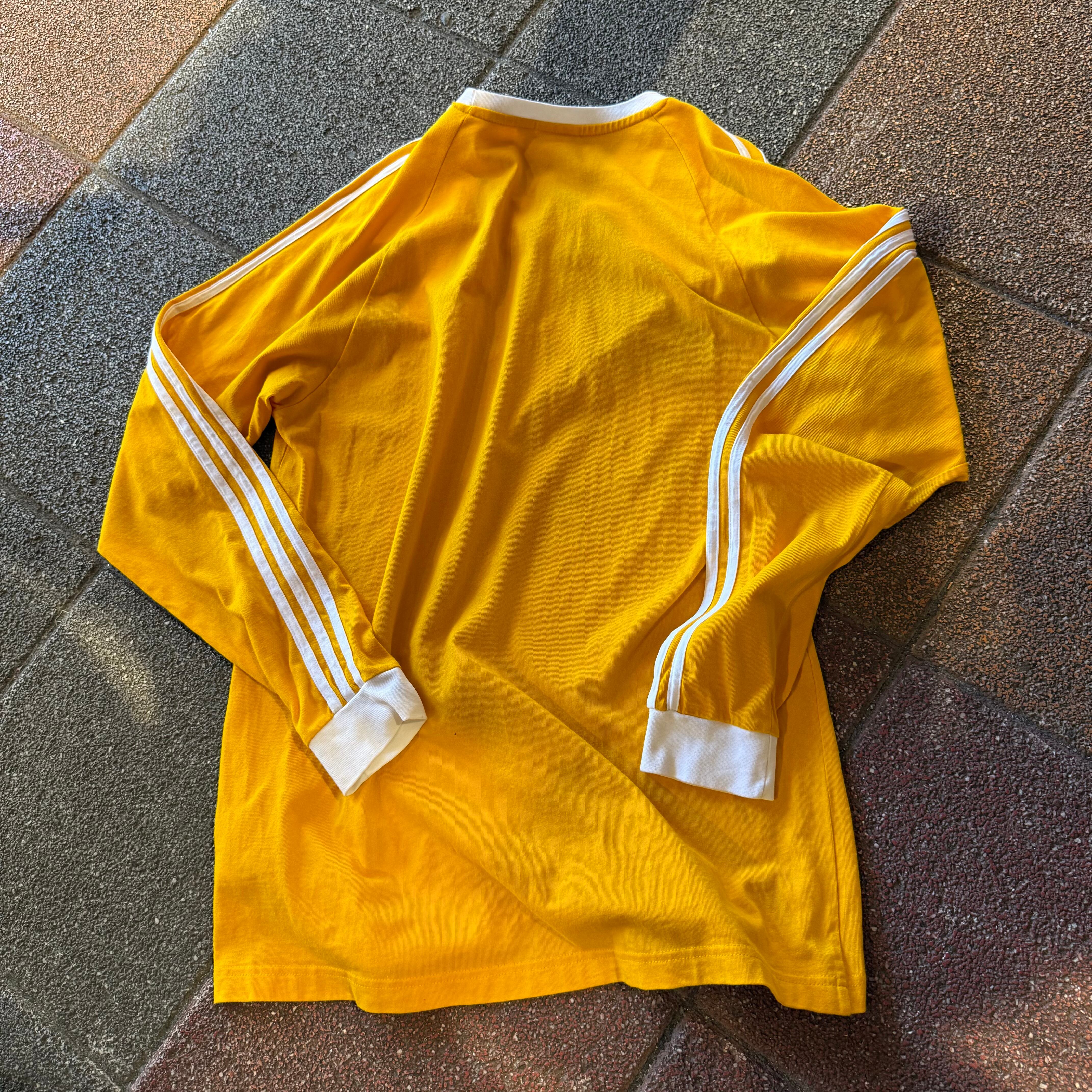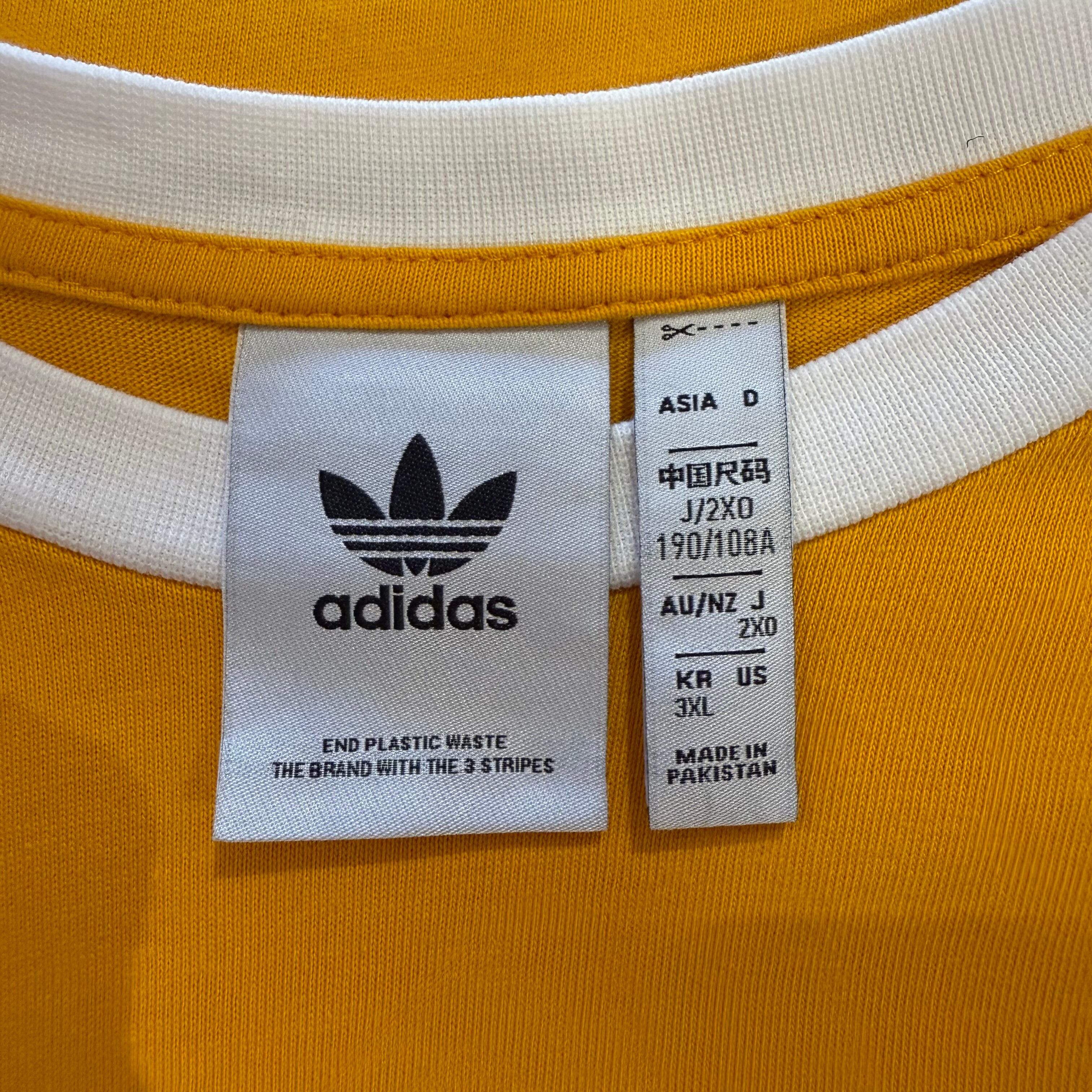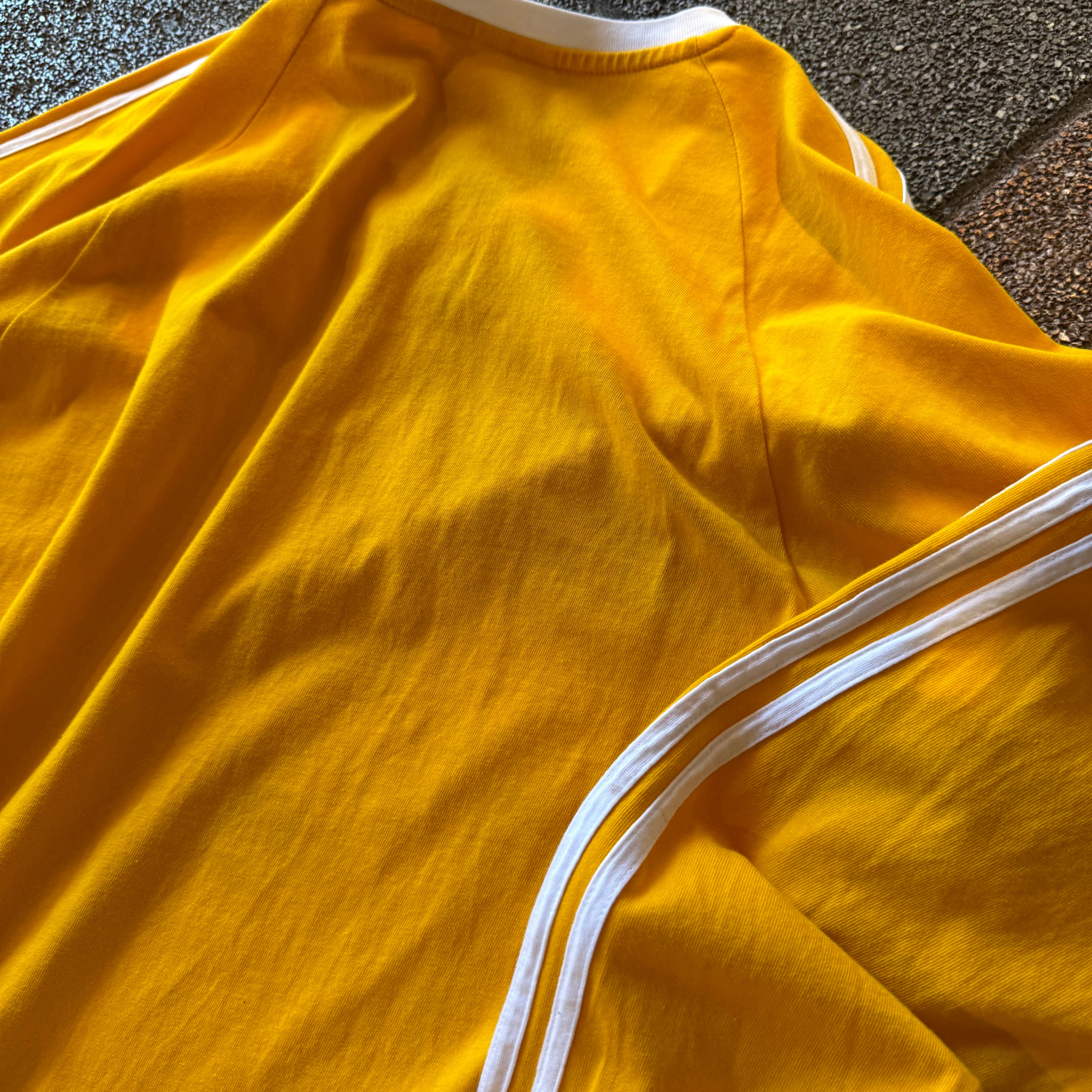 adidas/アディダス★リンガーT★長袖Tシャツ★ロンT★3ストライプ★イエロー×ホワイト/黄×白★2XL〜