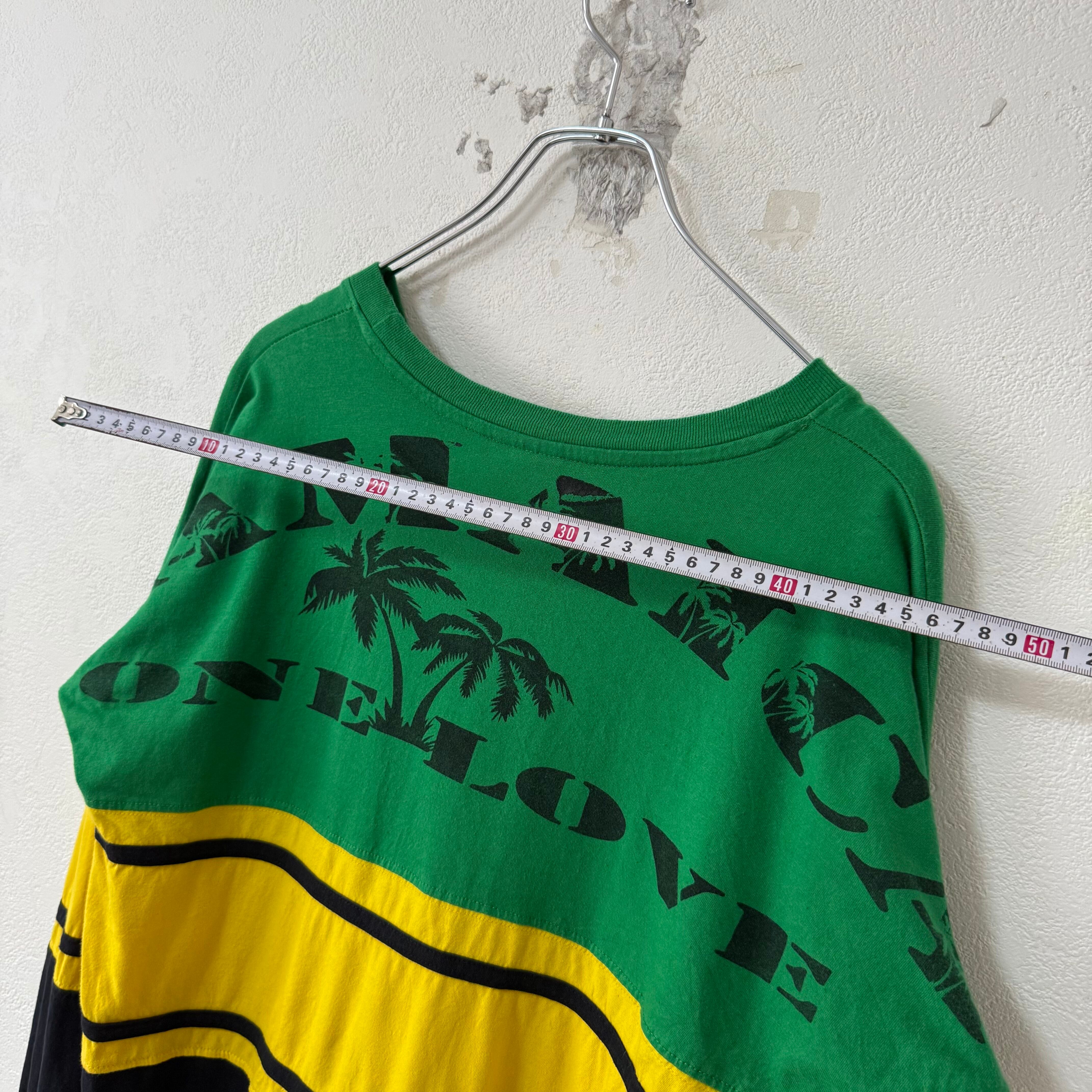 OneLoveJamaica★ワンラブ/ジャマイカ★ラスタ★ヤシの木★緑黒黄★M レゲエ★グリーン×ブラック×イエロー
