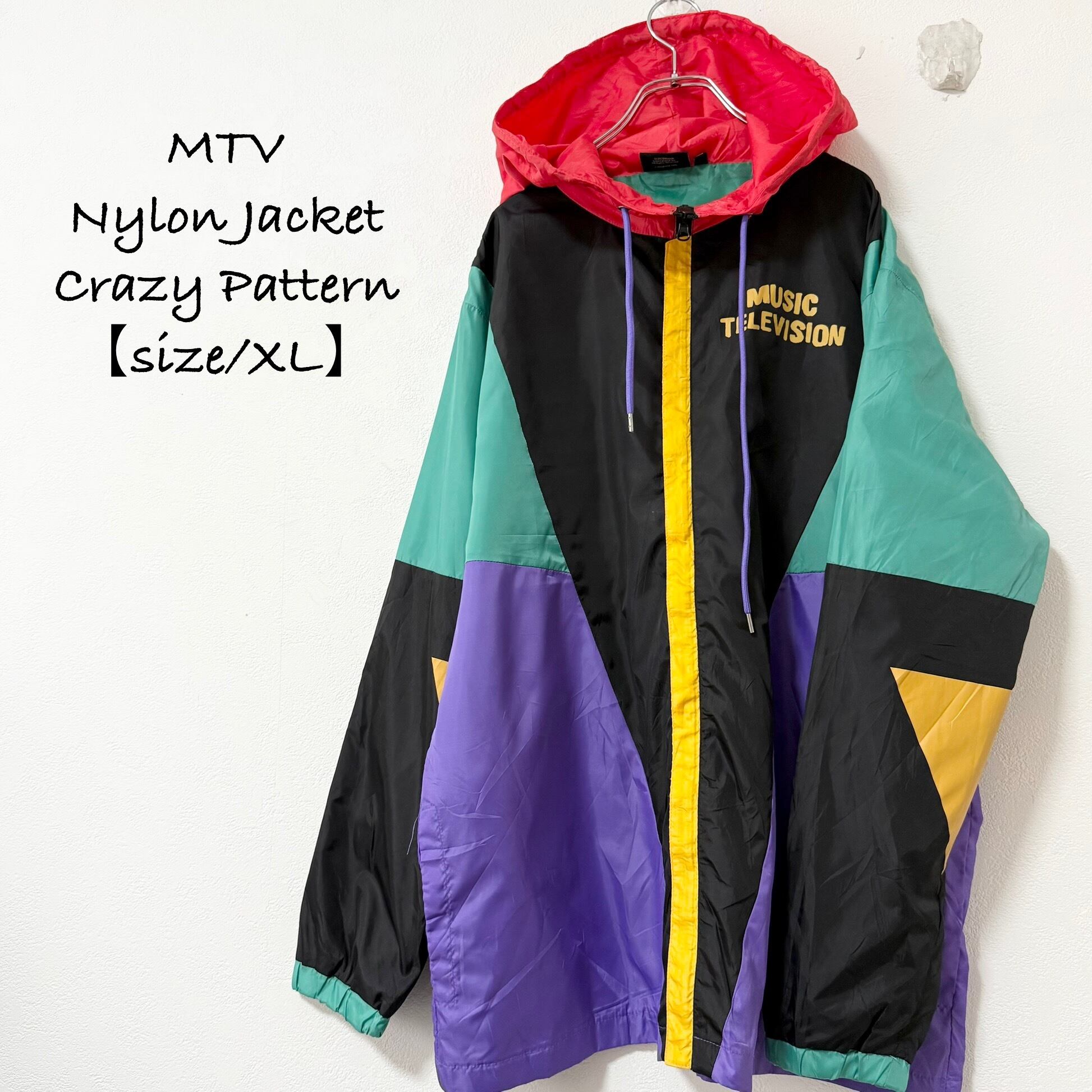 MTV★ナイロンジャケット★フルジップ★フーディー/パーカー★黒赤緑紫黄★XL