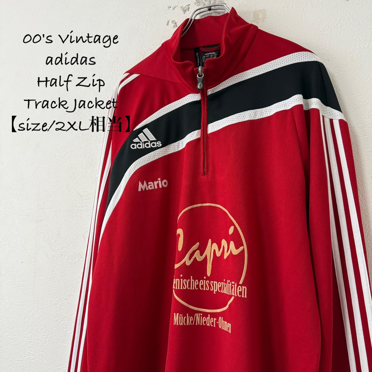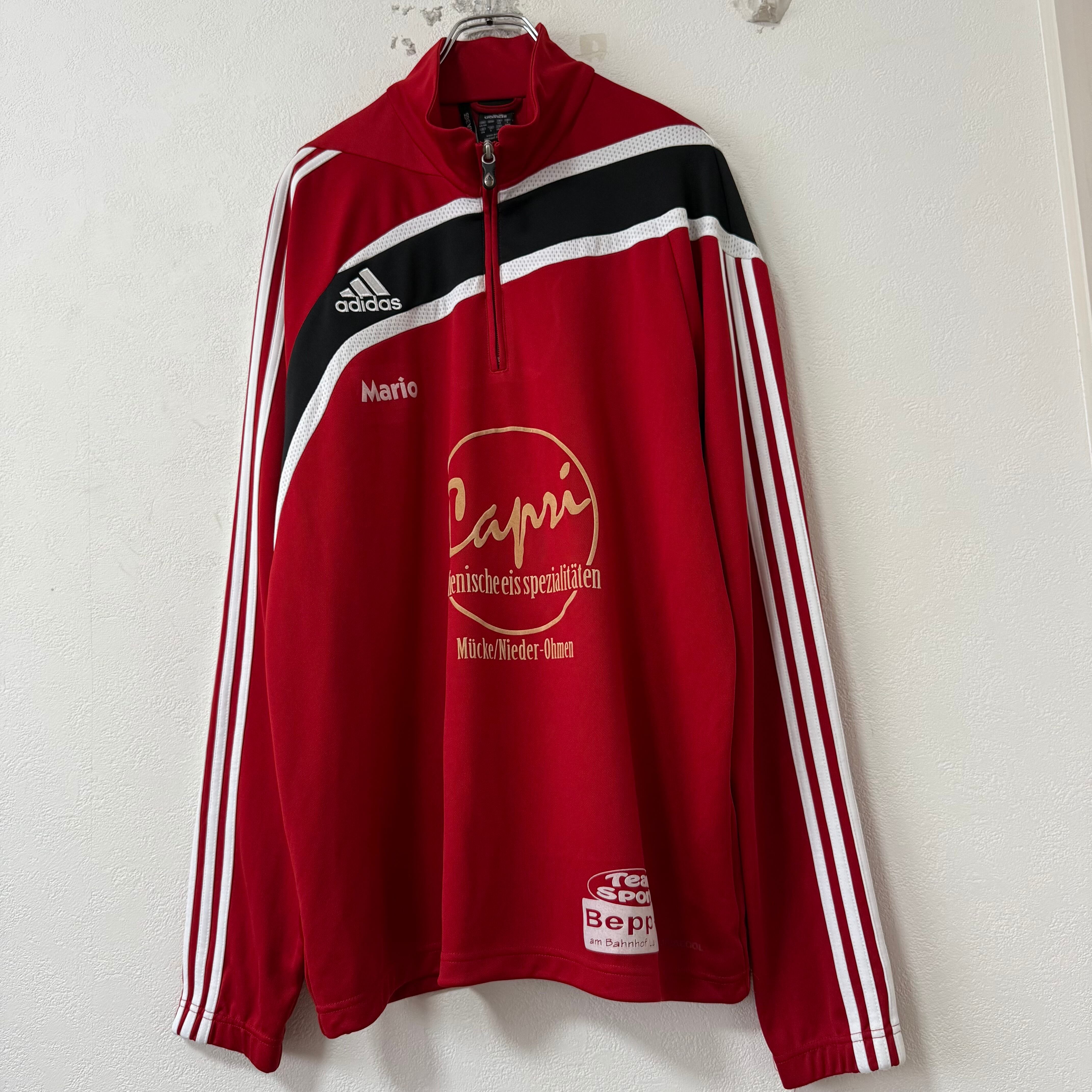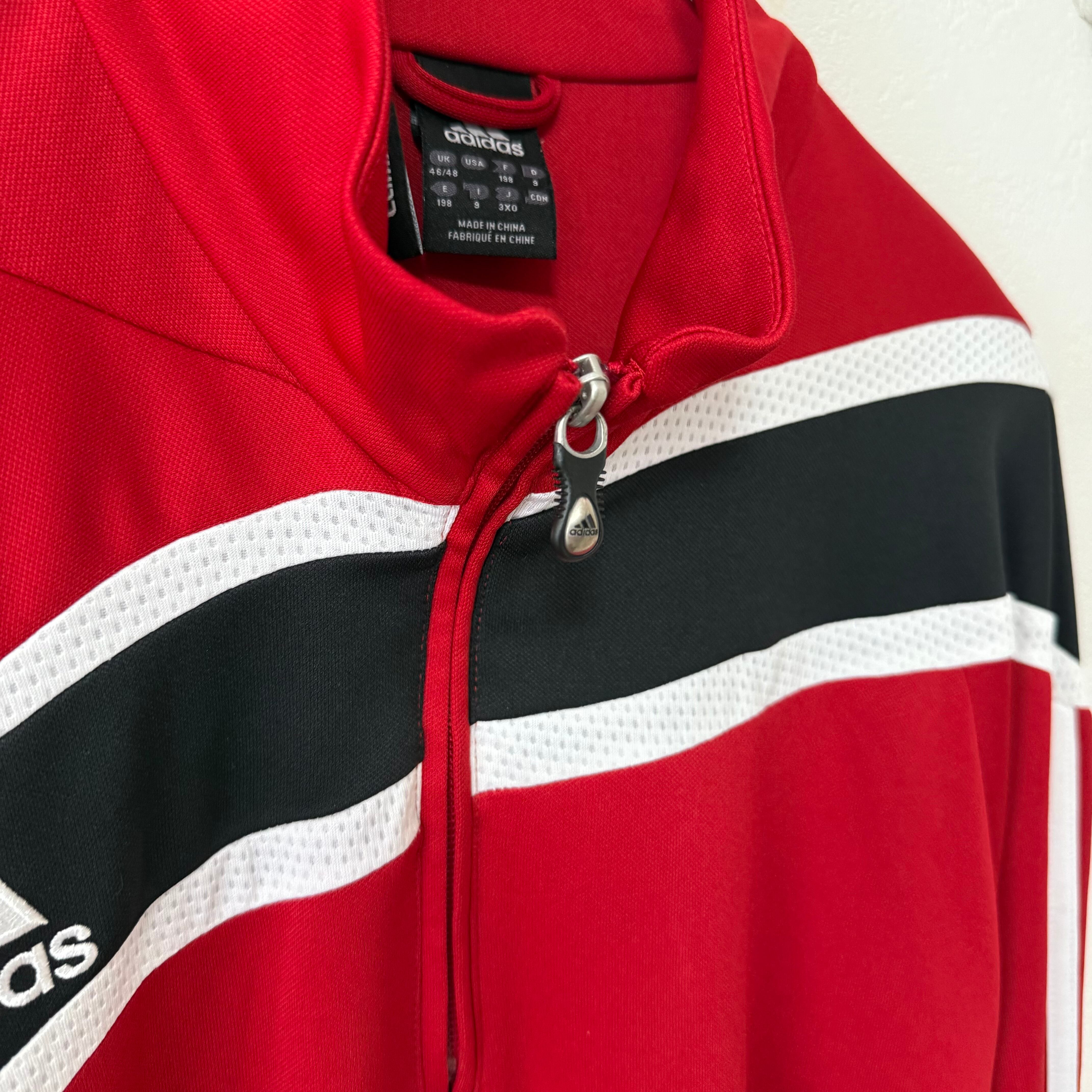 美品★00s★adidas/アディダス★ジャージ/トラックトップ★ハーフジップ★レッド×ブラック×ホワイト/赤黒白★2〜3XL相当