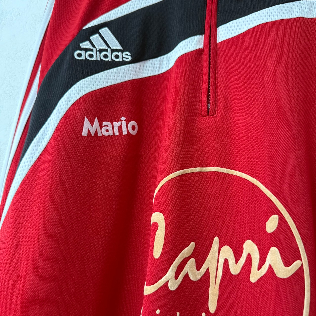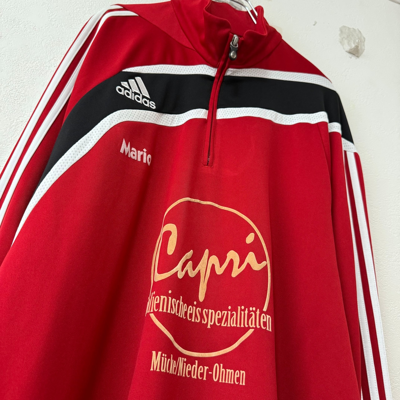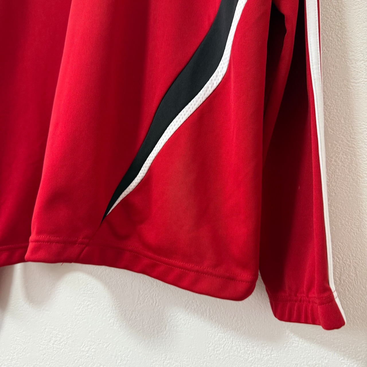 美品★00s★adidas/アディダス★ジャージ/トラックトップ★ハーフジップ★レッド×ブラック×ホワイト/赤黒白★2〜3XL相当