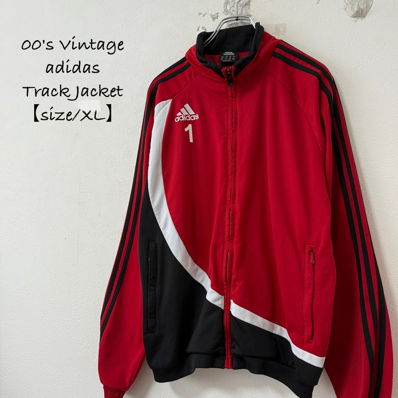 00s★adidas/アディダス★ジャージ★トラックジャケット★レッド/赤黒白★XL