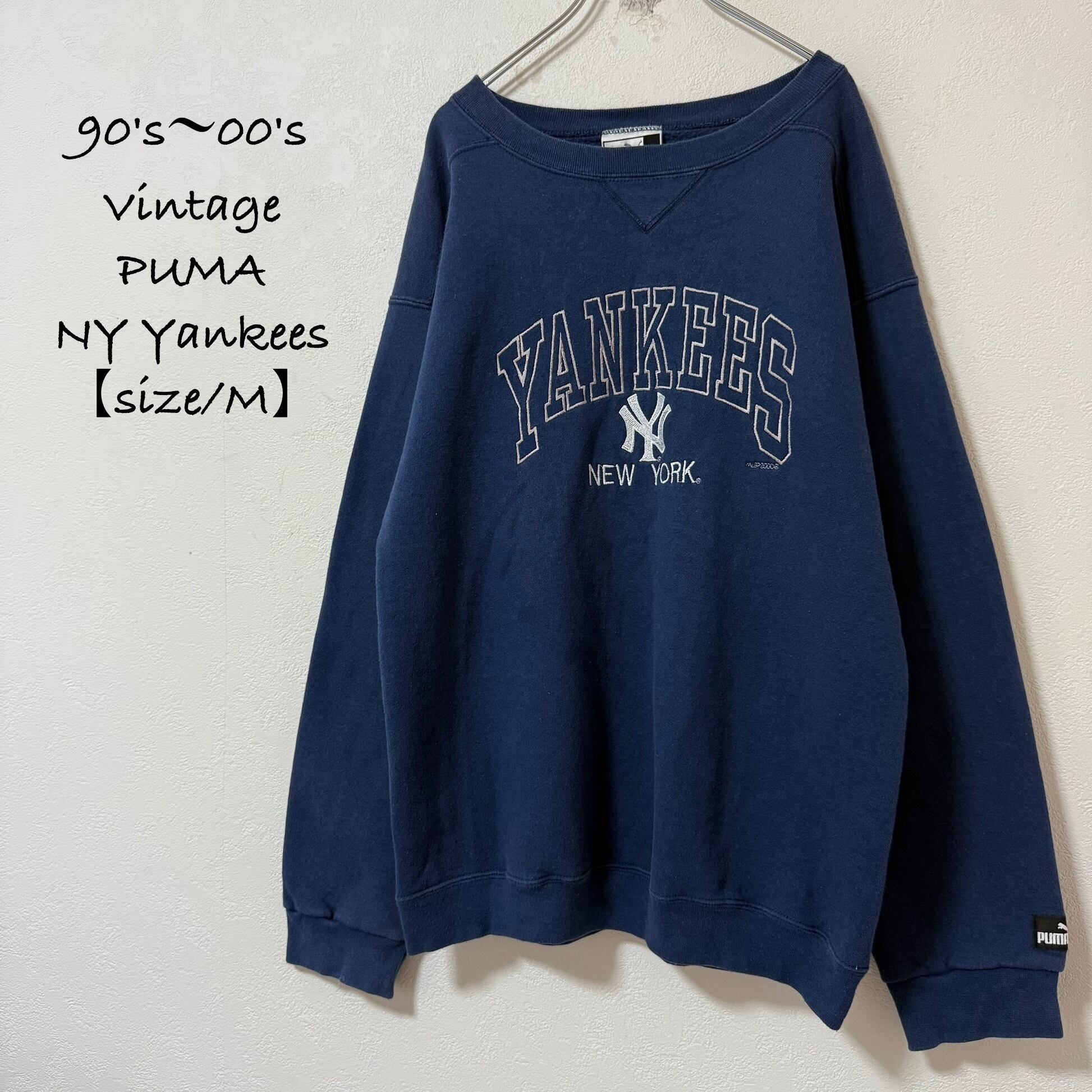 90s〜00s★ヴィンテージ★PUMA/プーマ×NY Yankees/ヤンキース★スウェット★Vガゼット★ネイビー/紺白グレー★M