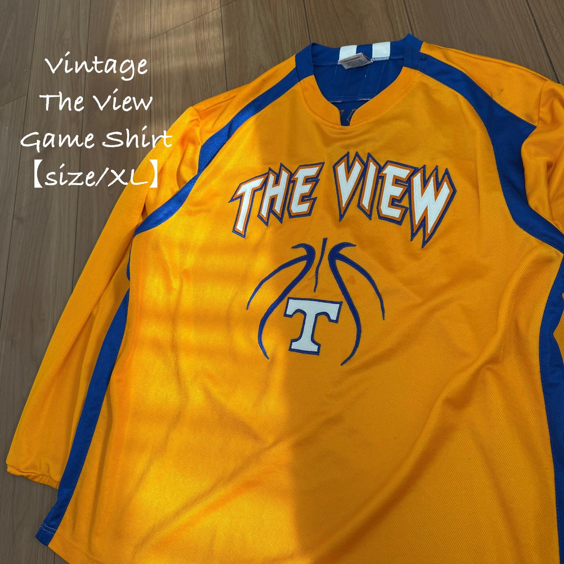 Vintage/ヴィンテージ★GameShirt/ゲームシャツ★黄/オレンジ系×ブルー/青★XL