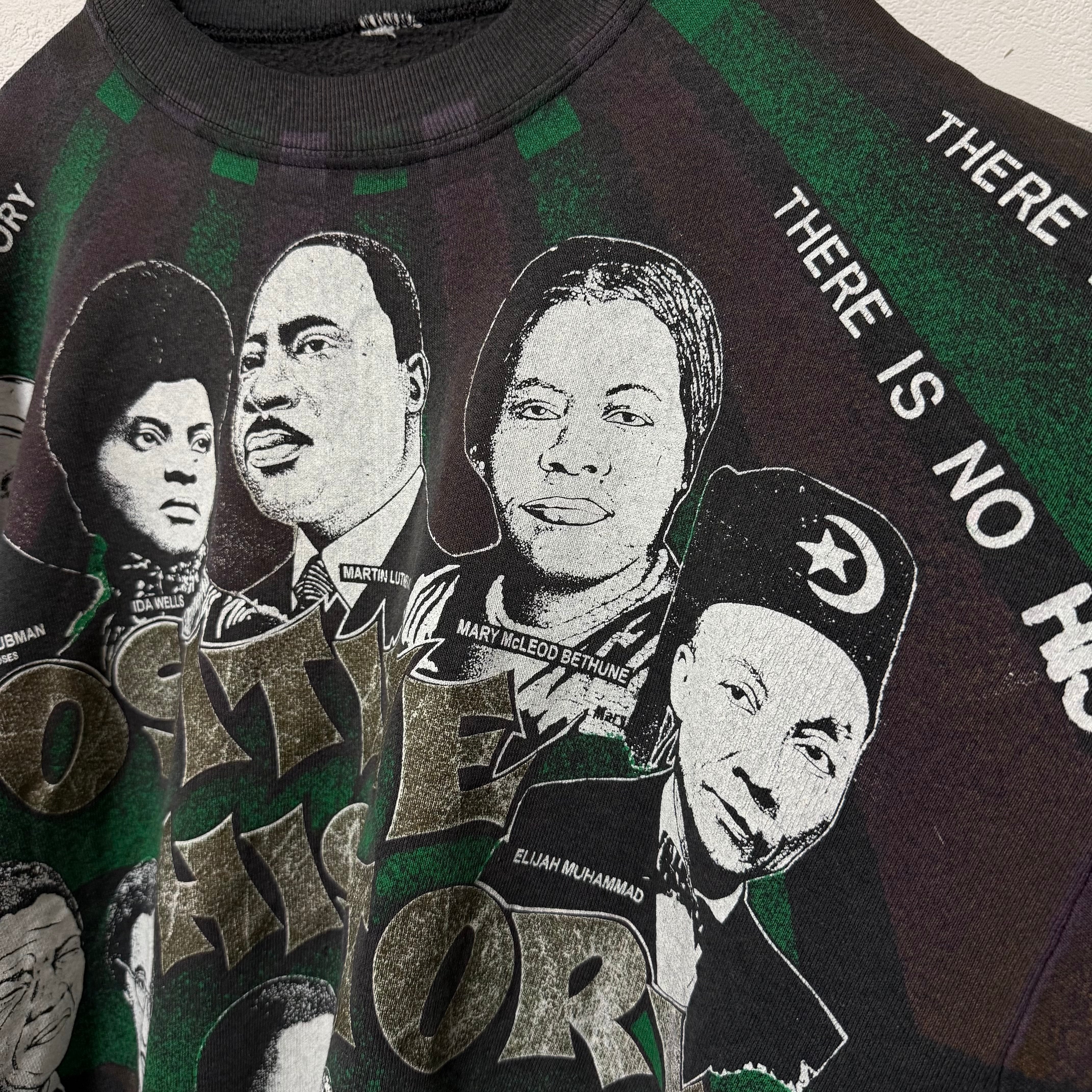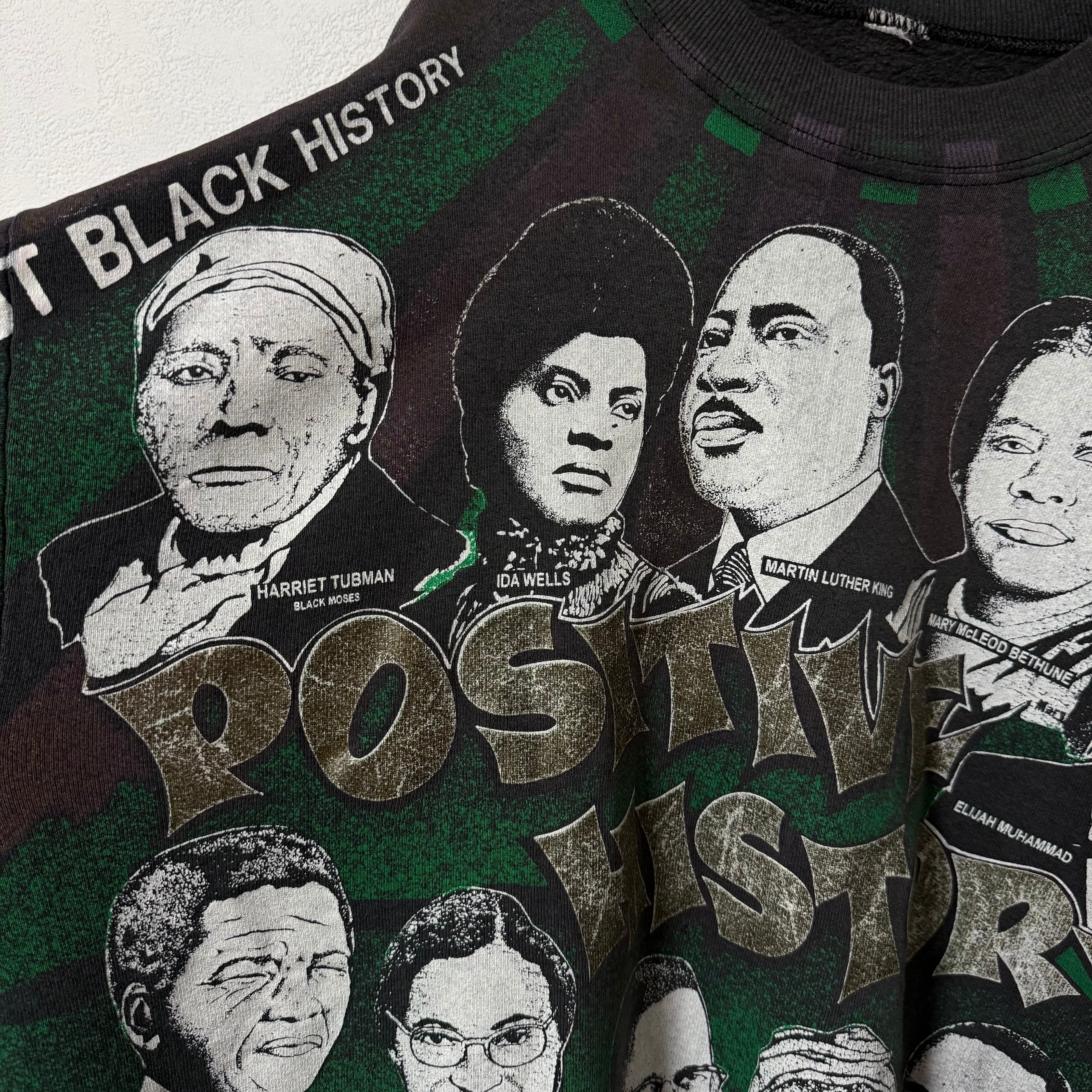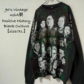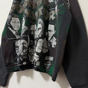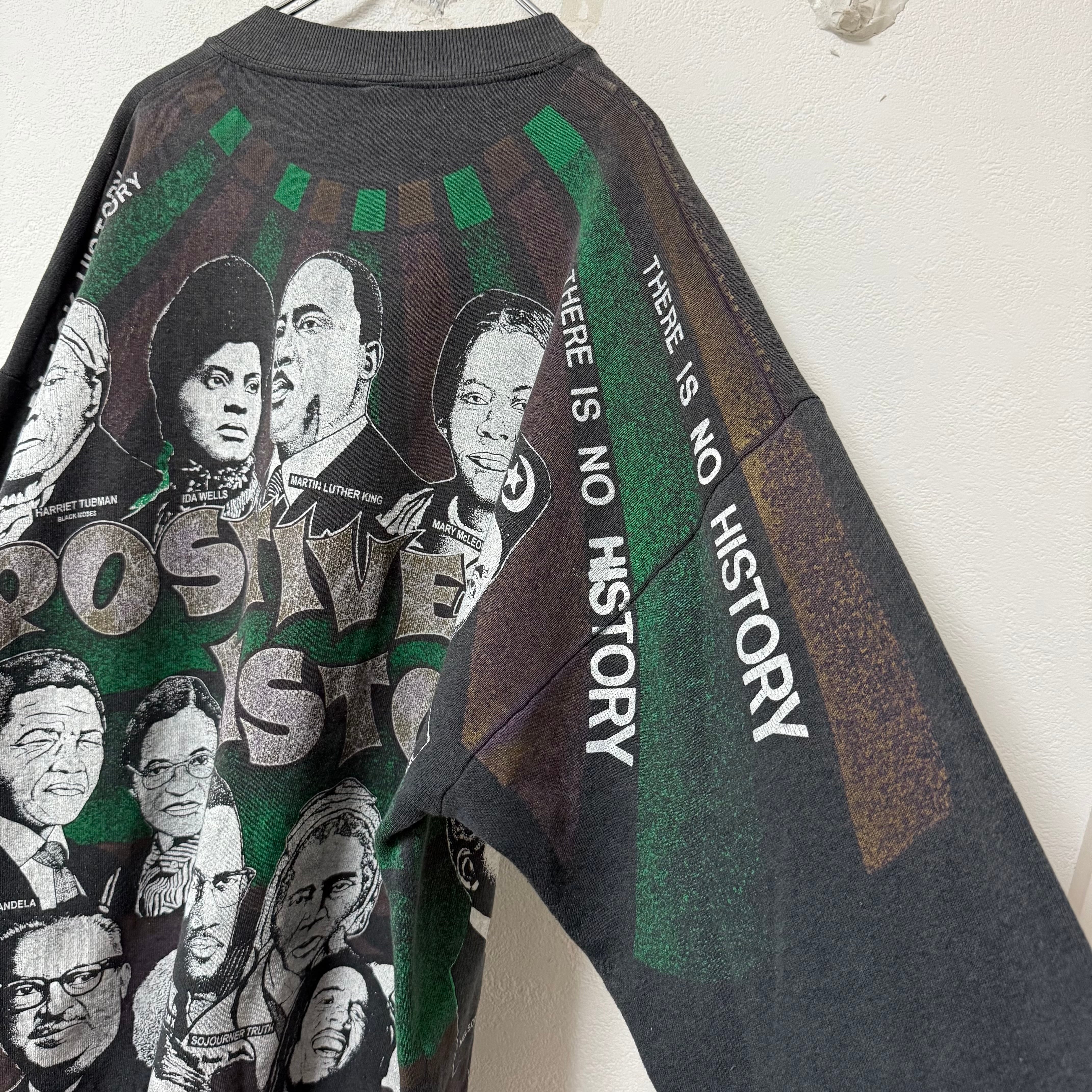 90sUSA製ヴィンテージ★PositiveHistory/ポジティブヒストリー★総柄スウェット★ブラック★マルコムX★XL