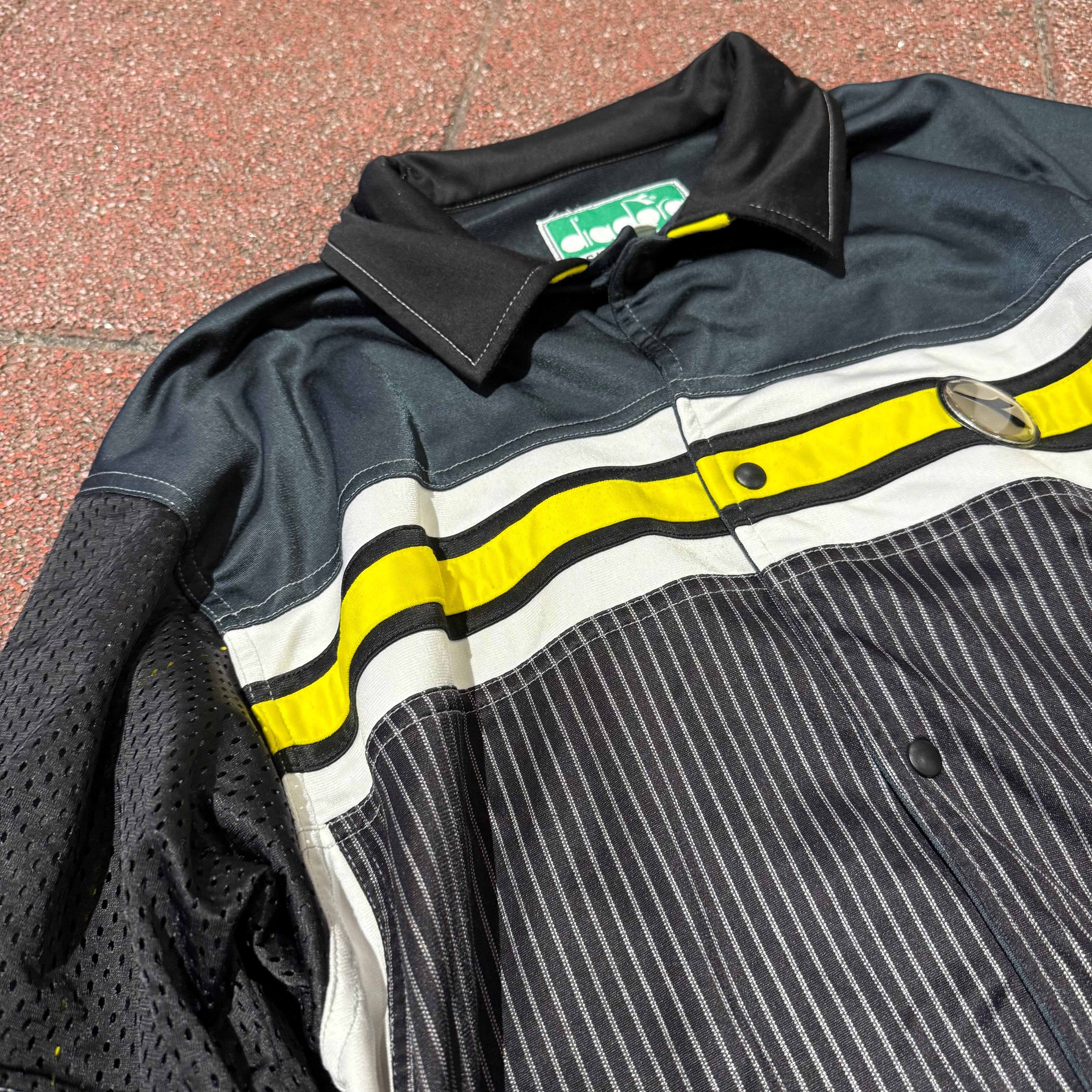 90s★Vintage/ヴィンテージ★diadora/ディアドラ★トラックジャケット/ジャージ★ブラック×イエロー/黒黄白★L