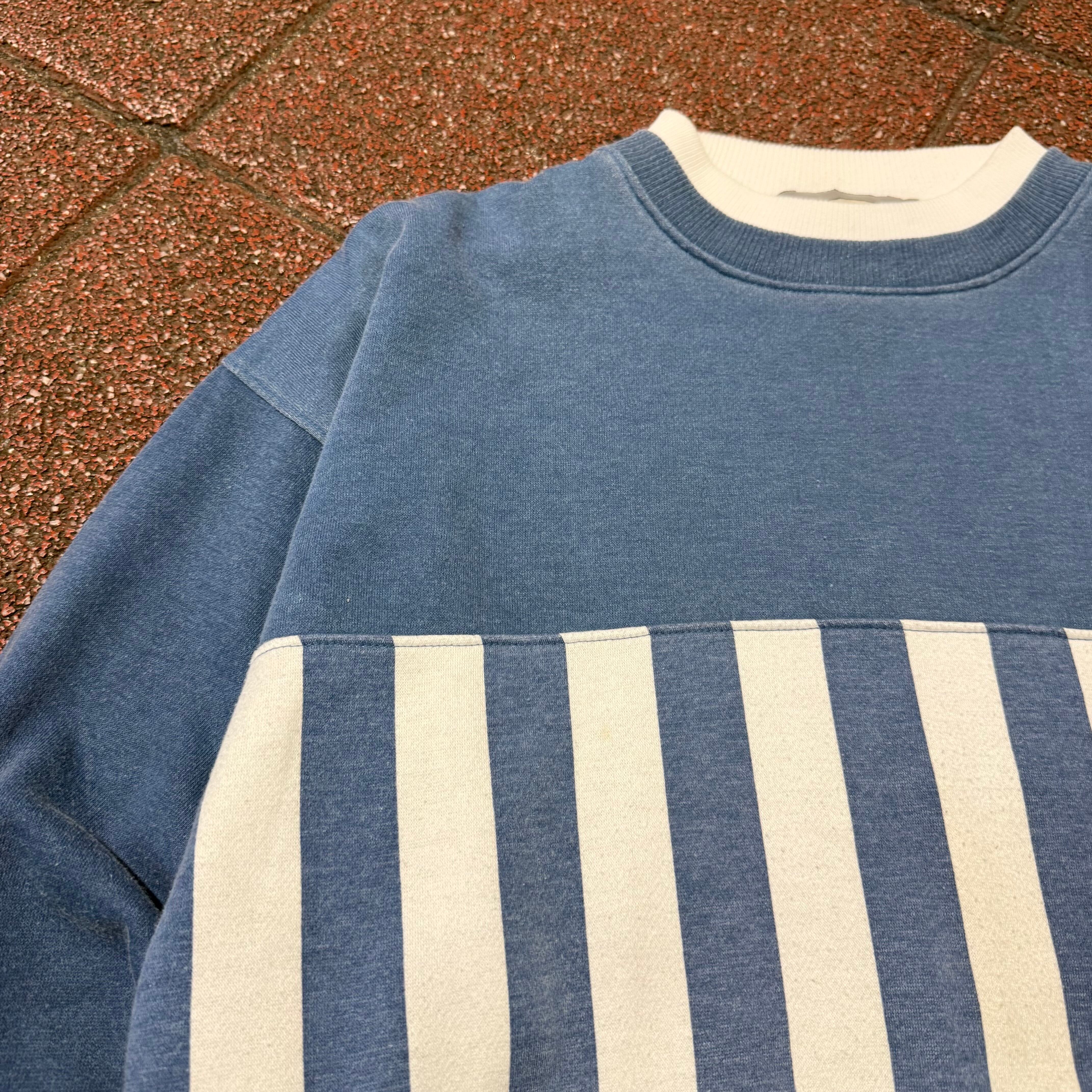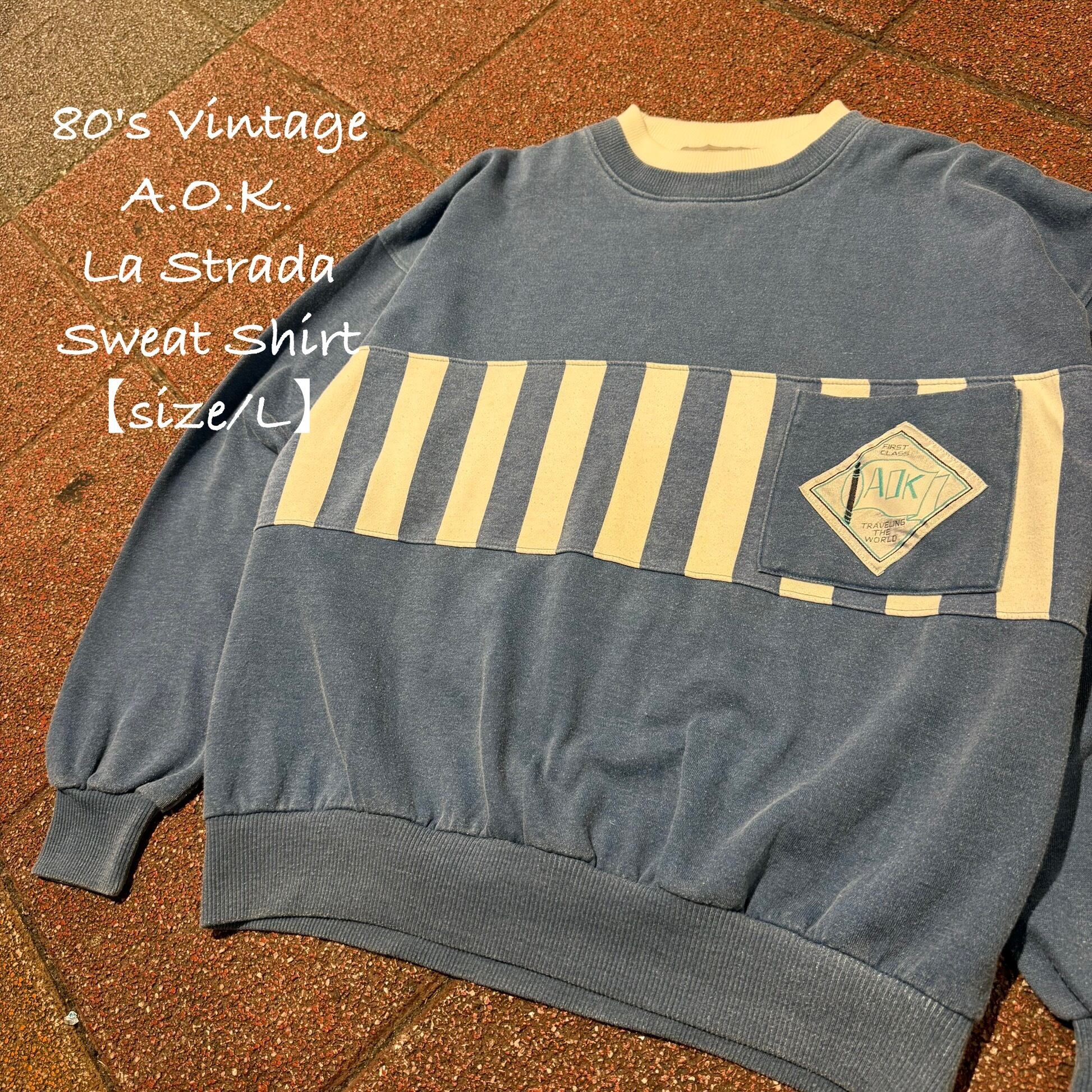80s★Vintage/ビンテージ★AOK★スウェット★ストライプ★Retro/レトロ★水色×白★L