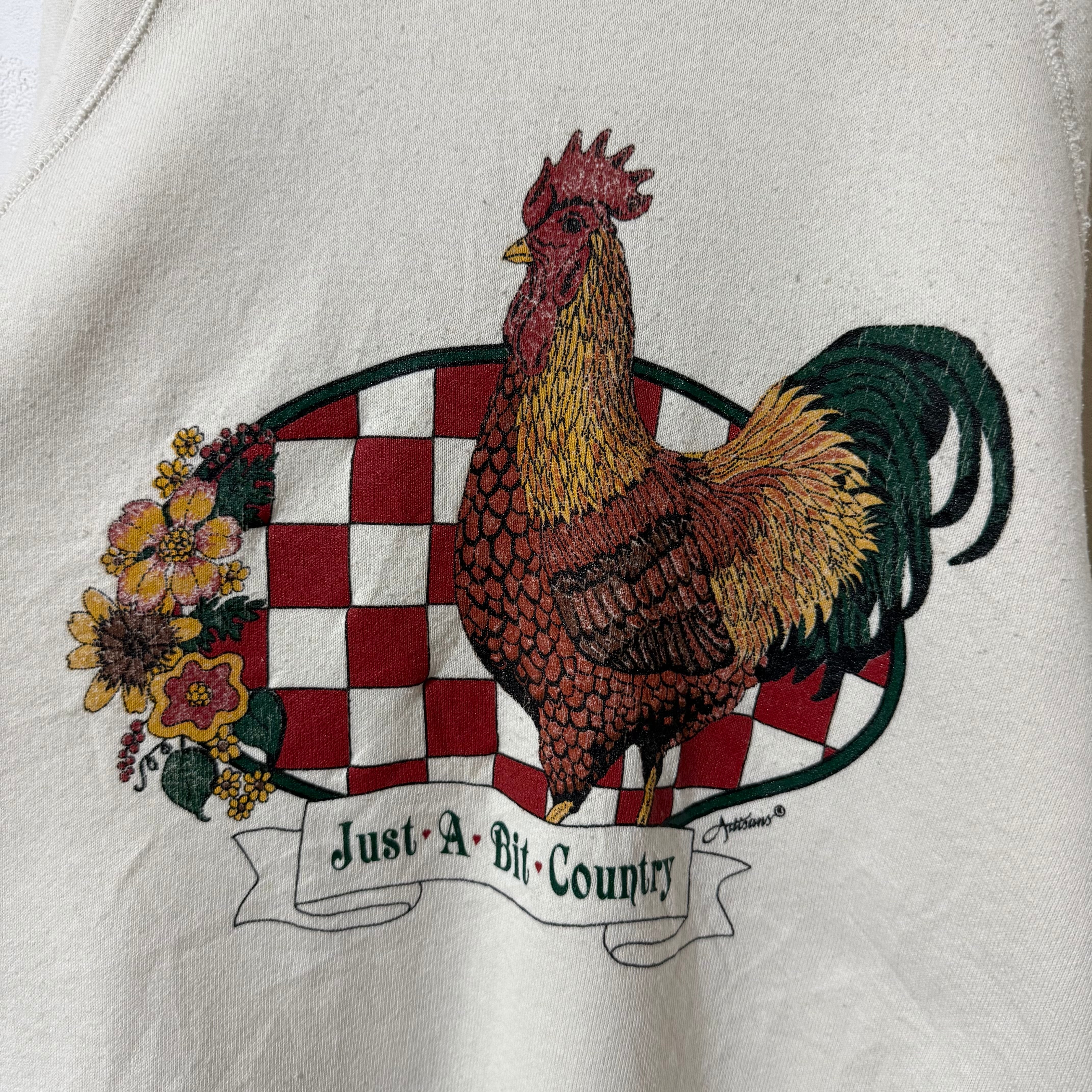 80s★Vintage/ビンテージ★襟付スウェット★Lee/リー★ニワトリ★オフホワイト/生成り×グリーン/緑★M〜L相当