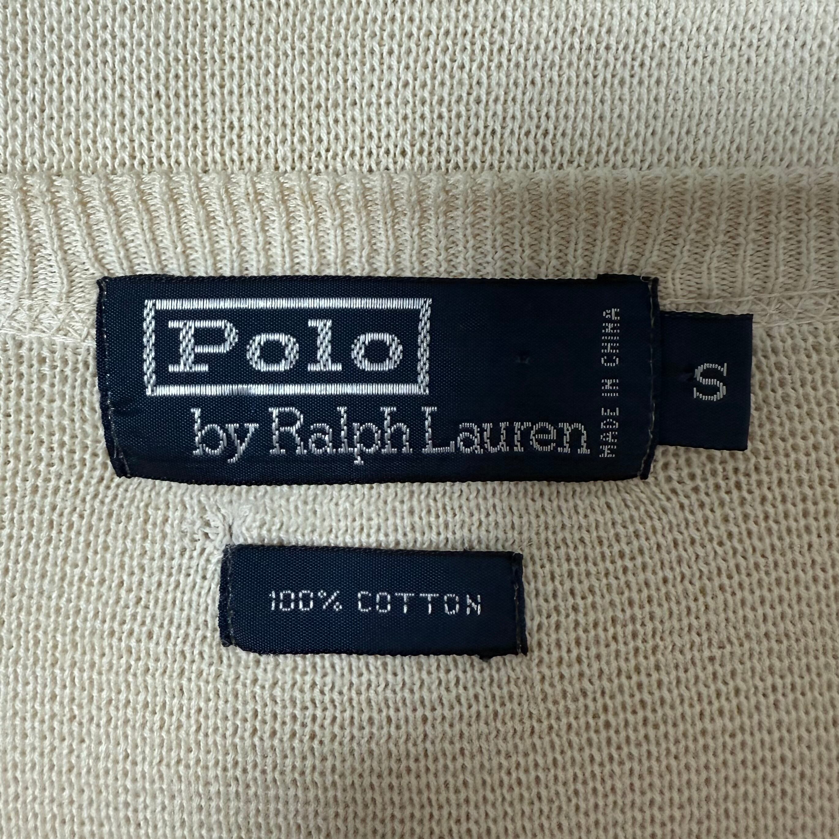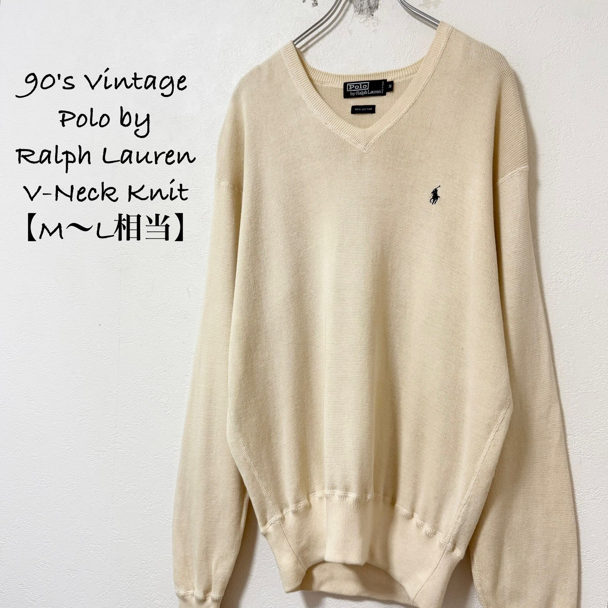 90sヴィンテージ★Polo RalphLauren★ポロラルフローレン★Vネックニットセーター★オフホワイトクリーム生成り★ML