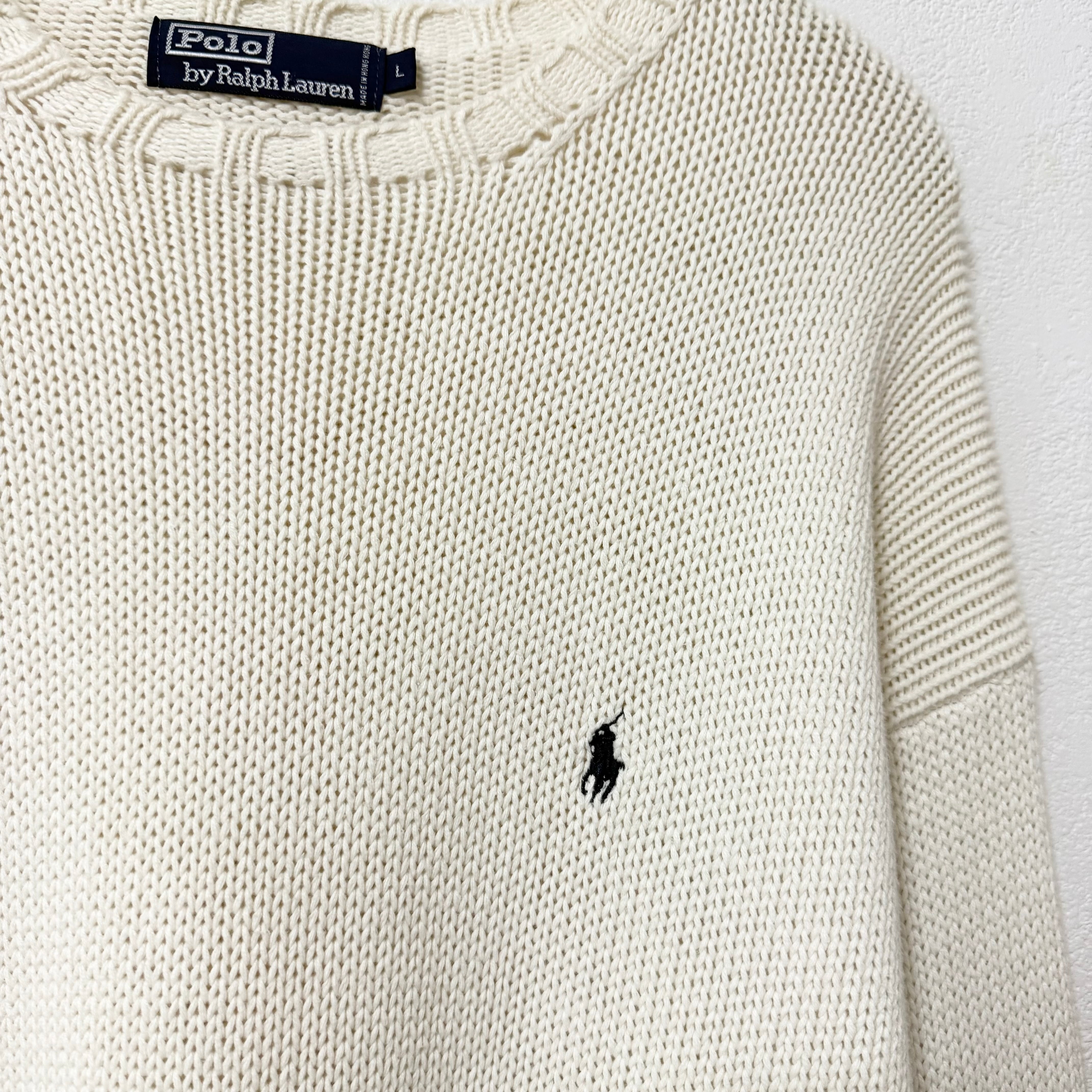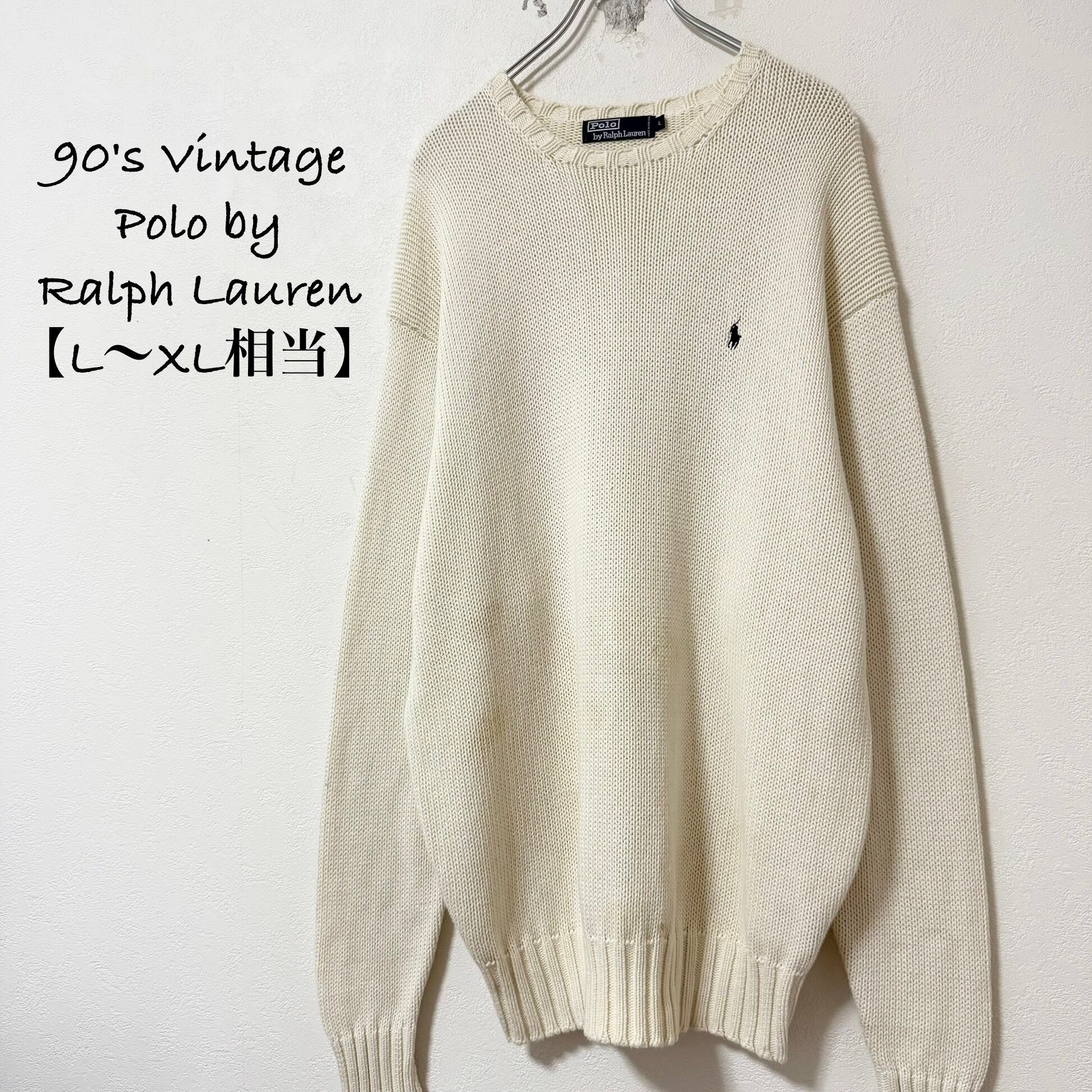 90sヴィンテージ★PoloRalphLauren★ポロラルフローレン★ニット/セーター★オフホワイト/クリーム/生成り★L~XL