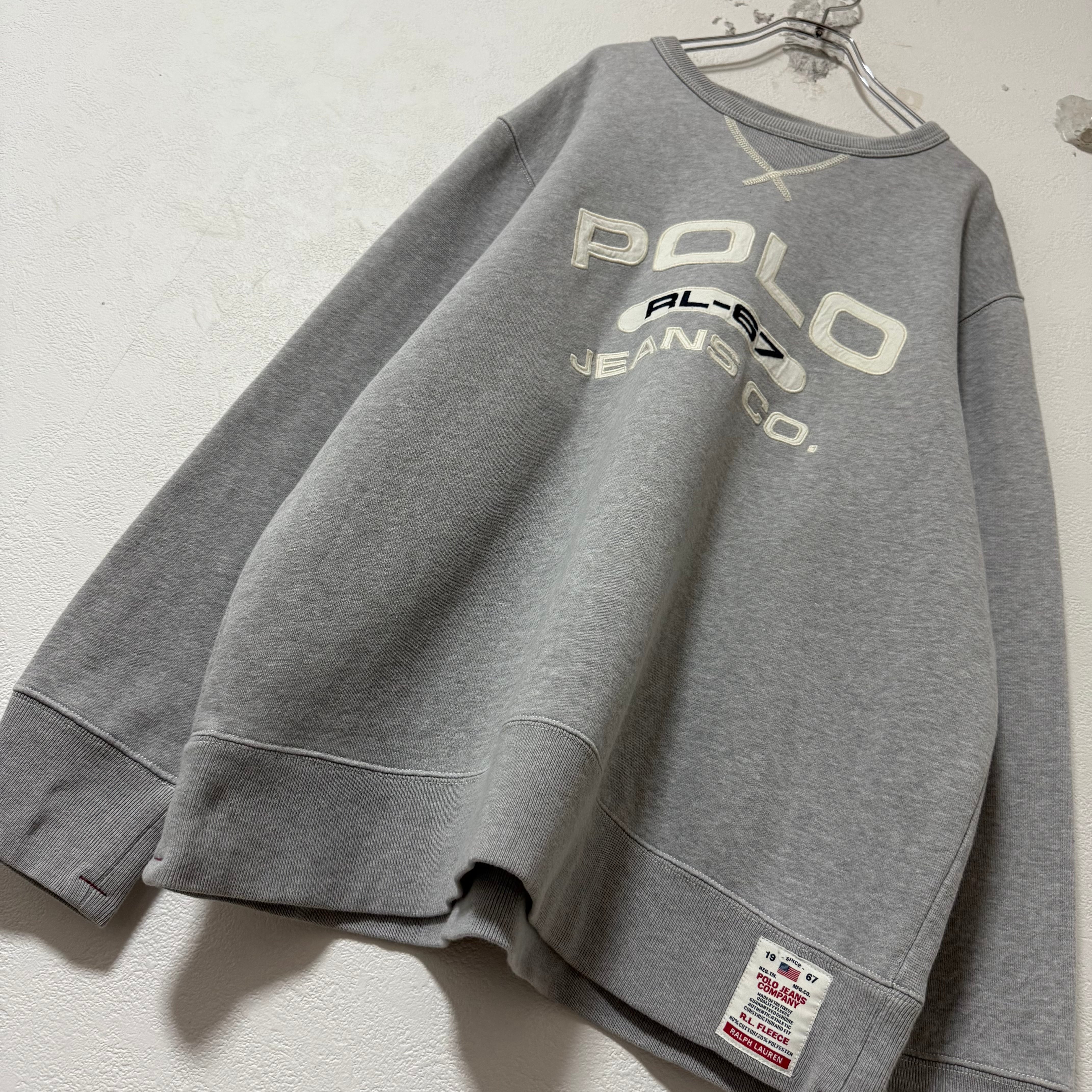 90sUSA製★ポロジーンズラルフローレン★スウェット★Vガゼット★グレー★ML