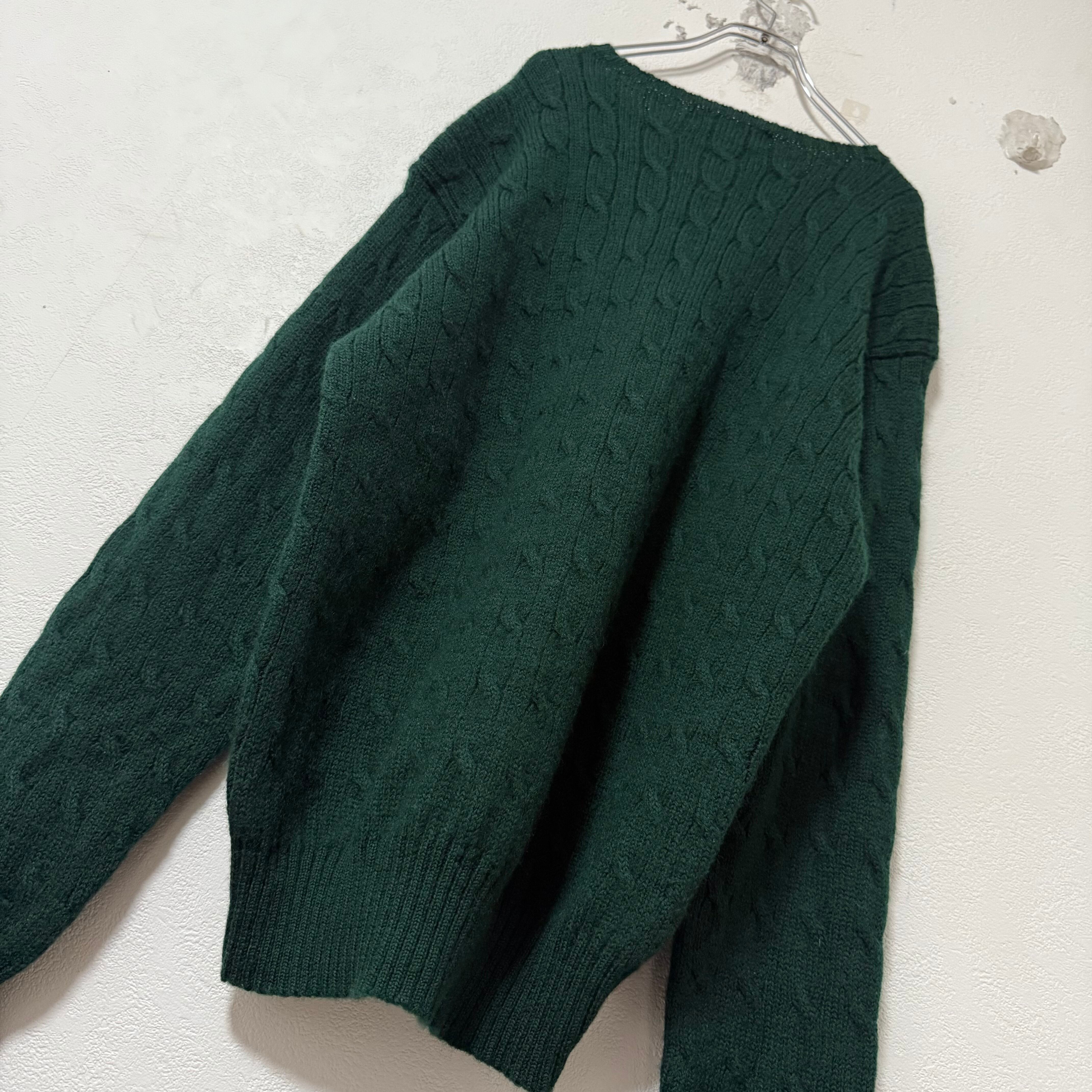 90s★ポロラルフローレン★ウール★ケーブルニット/セーター★グリーン/緑★XL