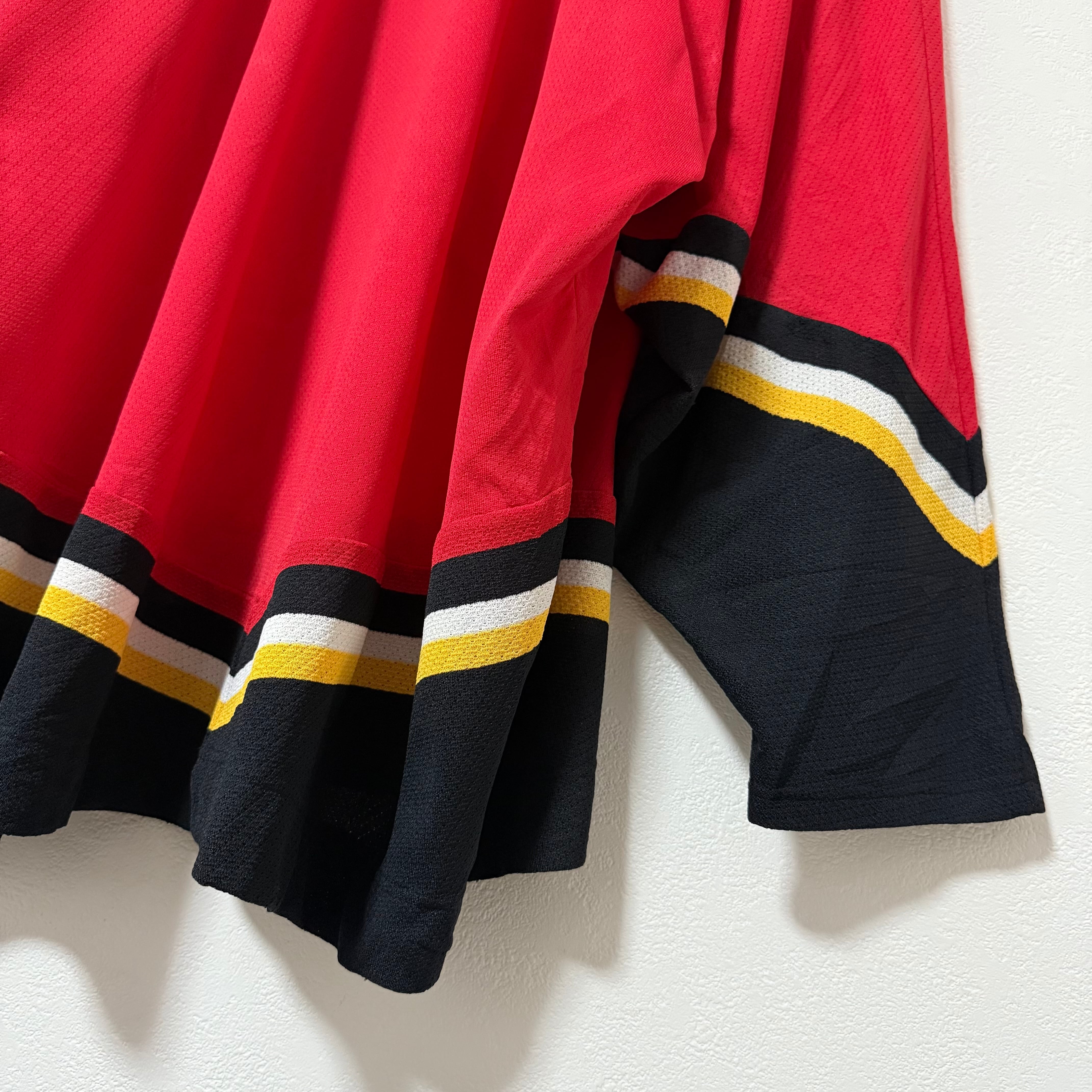 90s★レースアップホッケーゲームシャツ★カルガリーフレームス★赤黒白黄★2XL