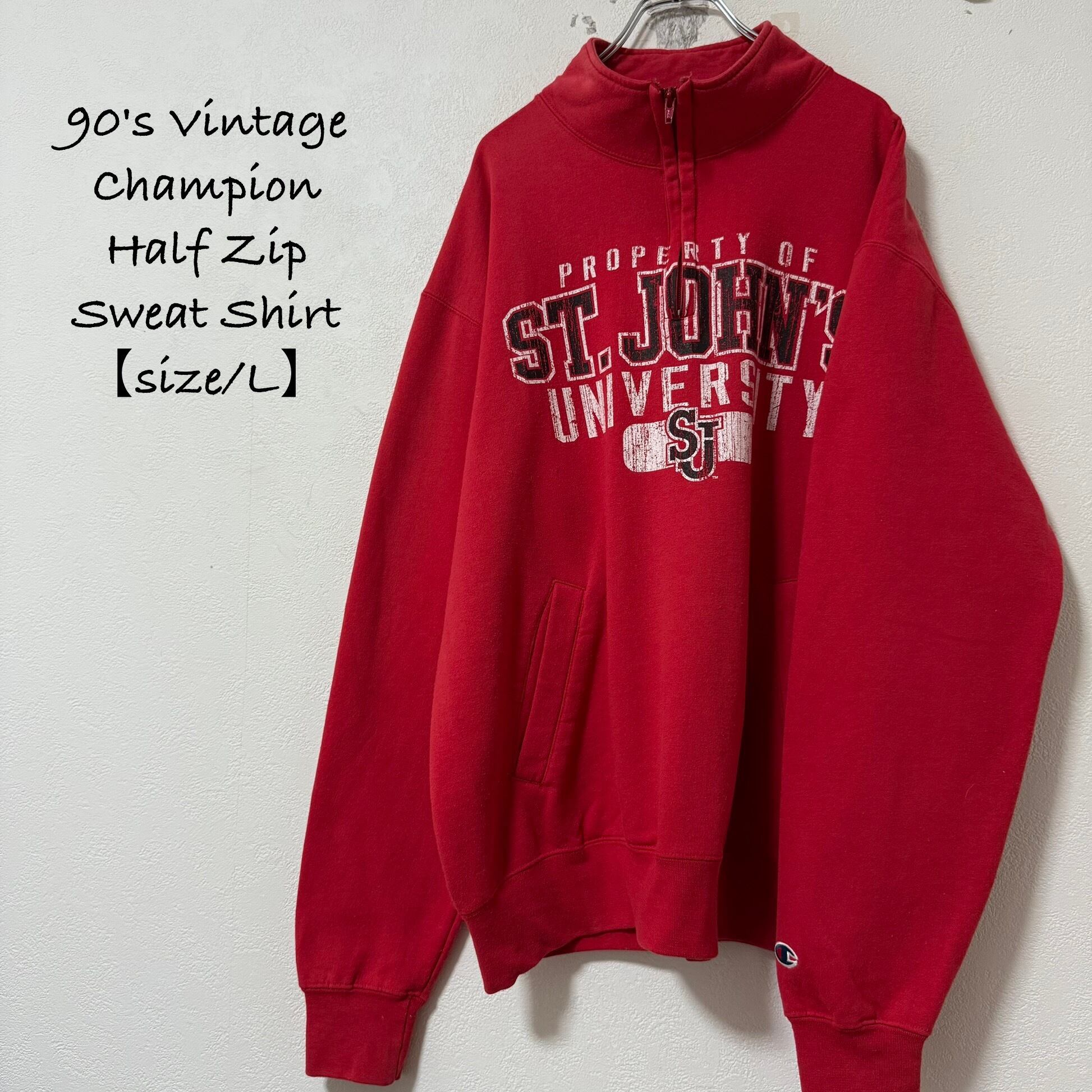 90s★ヴィンテージ★Champion/チャンピオン★スウェット★ハーフジップ★セントジョンズ大学★カレッジロゴ★赤×黒×白★L