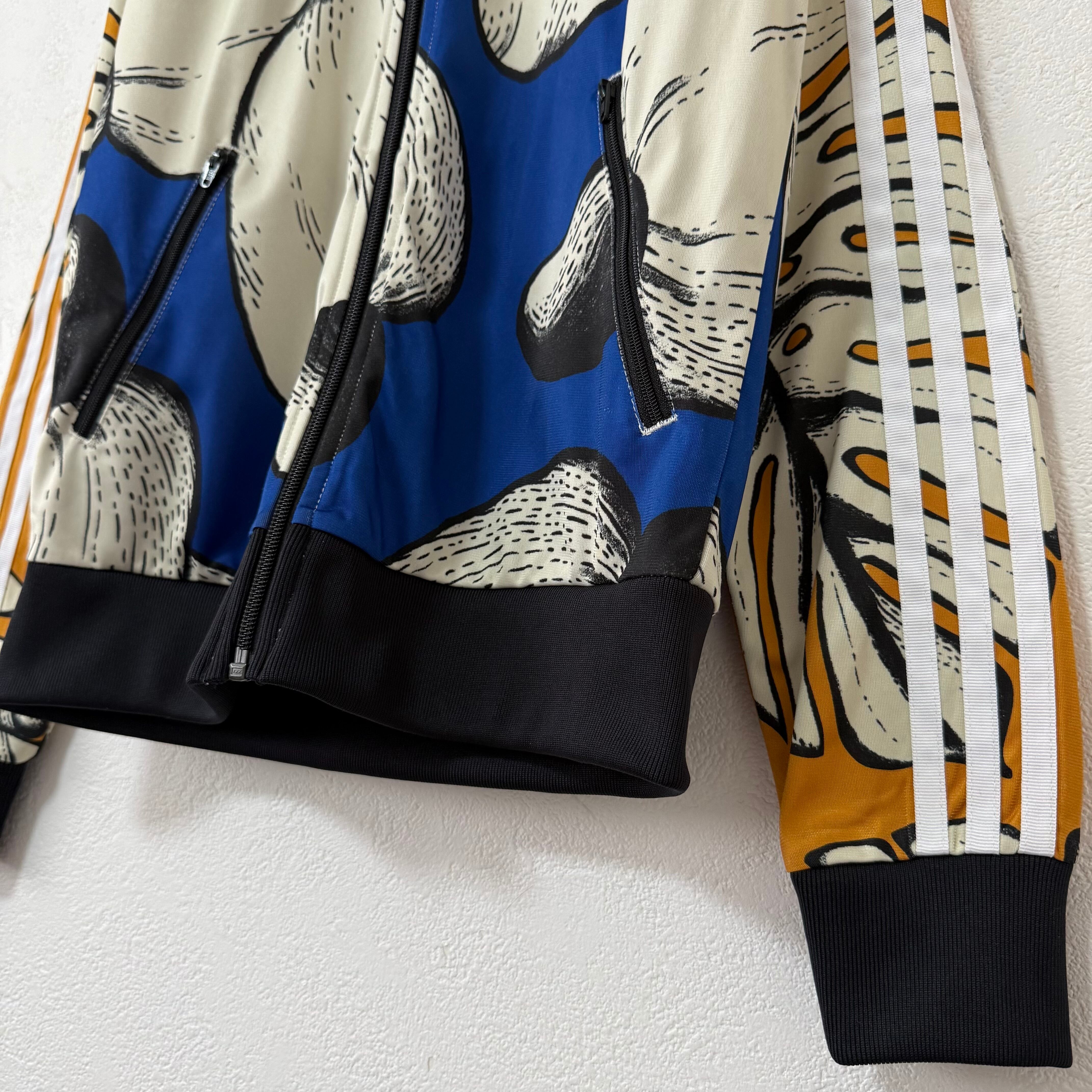 アディダス×ファームカンパニージャージ★ボタニカル柄トラックジャケット★黒青黄白