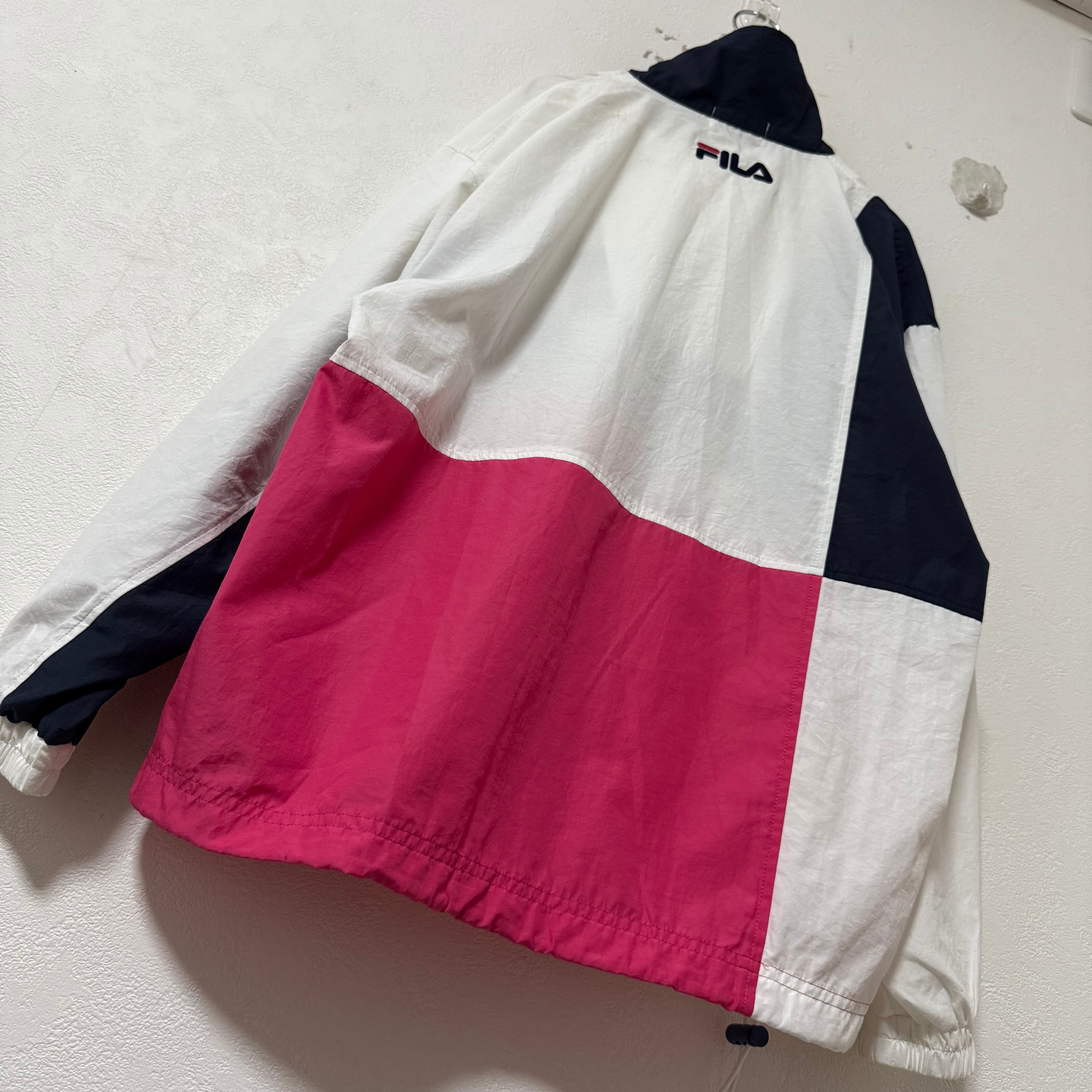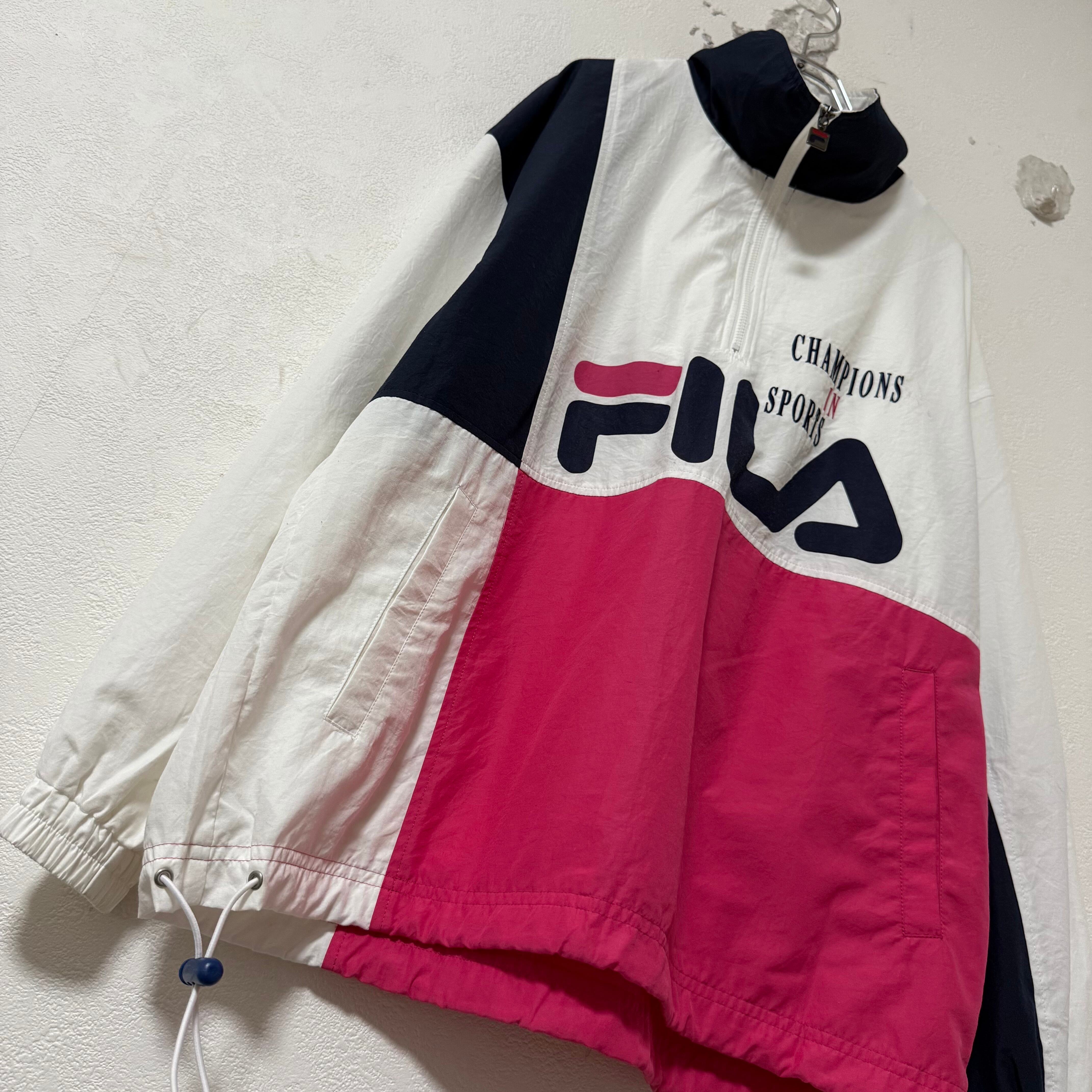 90s★FILA/フィラ★ハーフジッププルオーバー★ネイビー/紺×白×ピンク★S