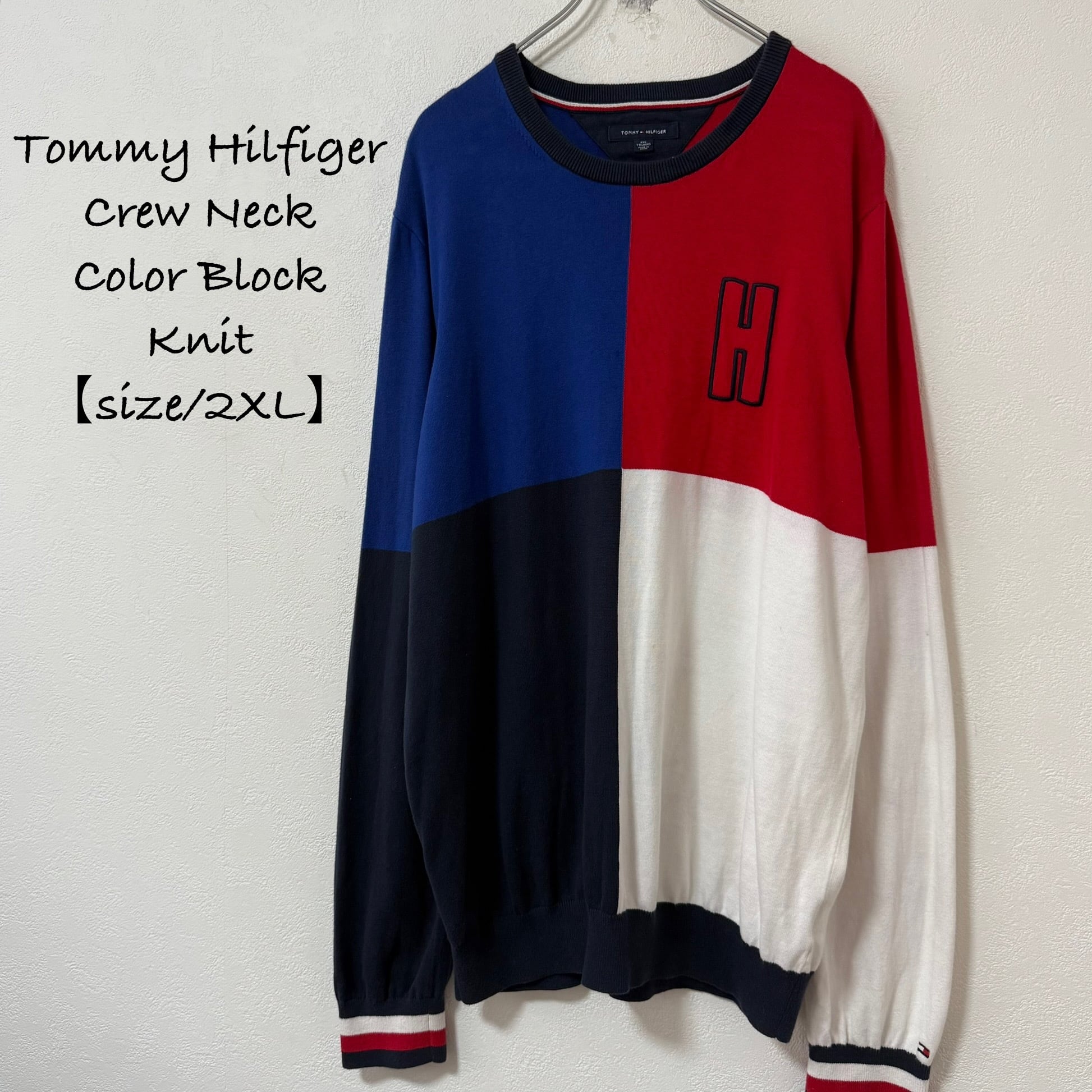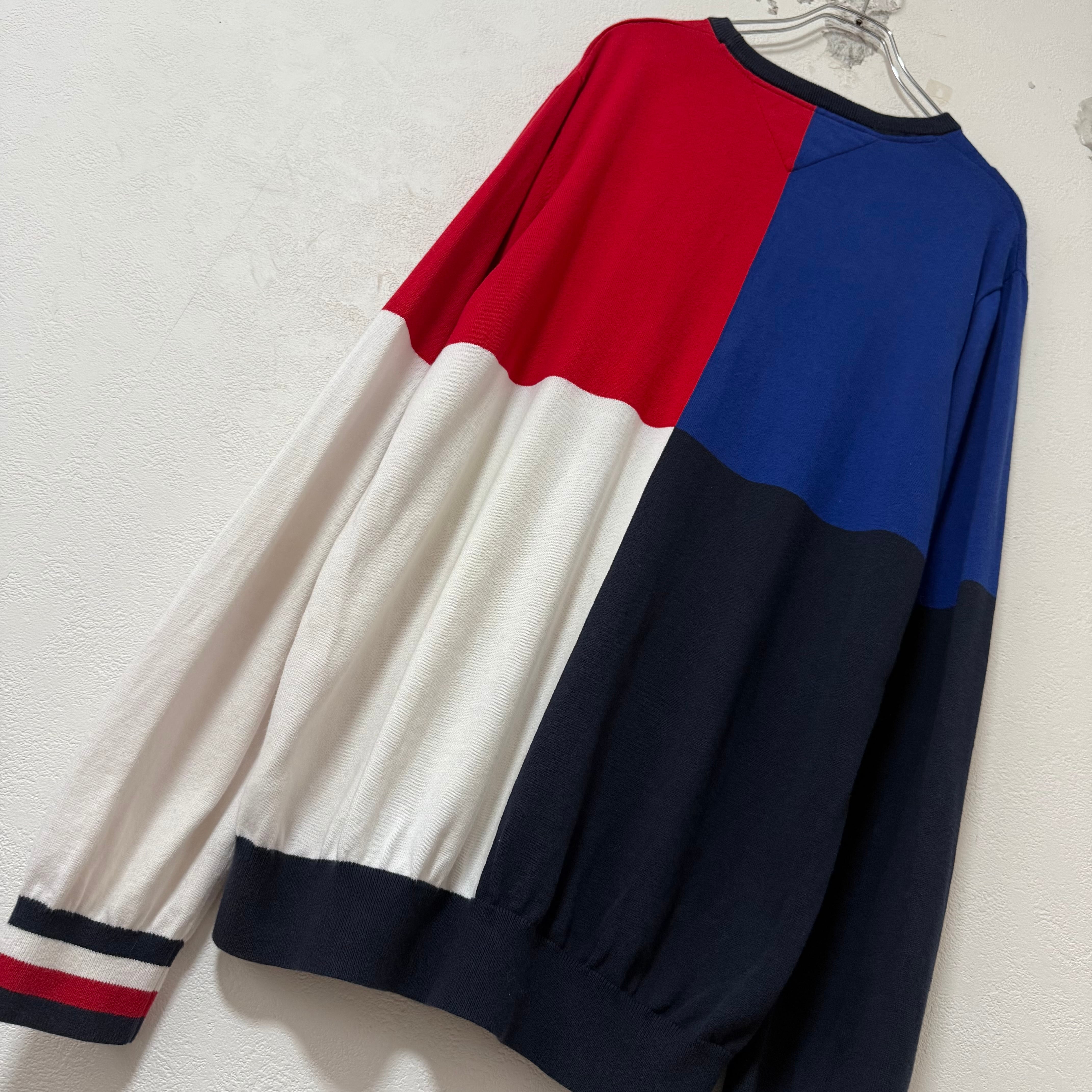 トミーヒルフィガー★ニット/セーター★総柄★カラーブロック★紺赤青白★2XL