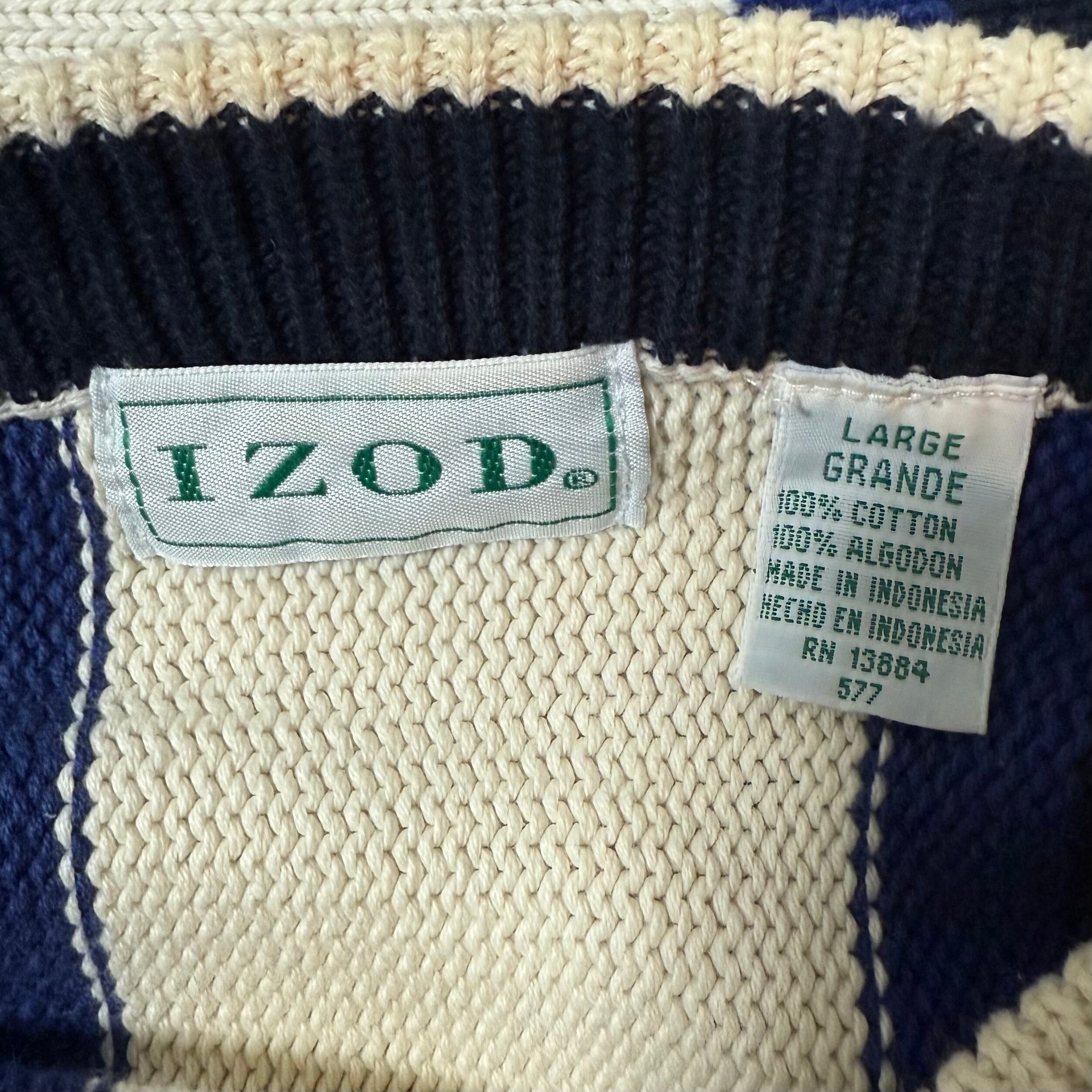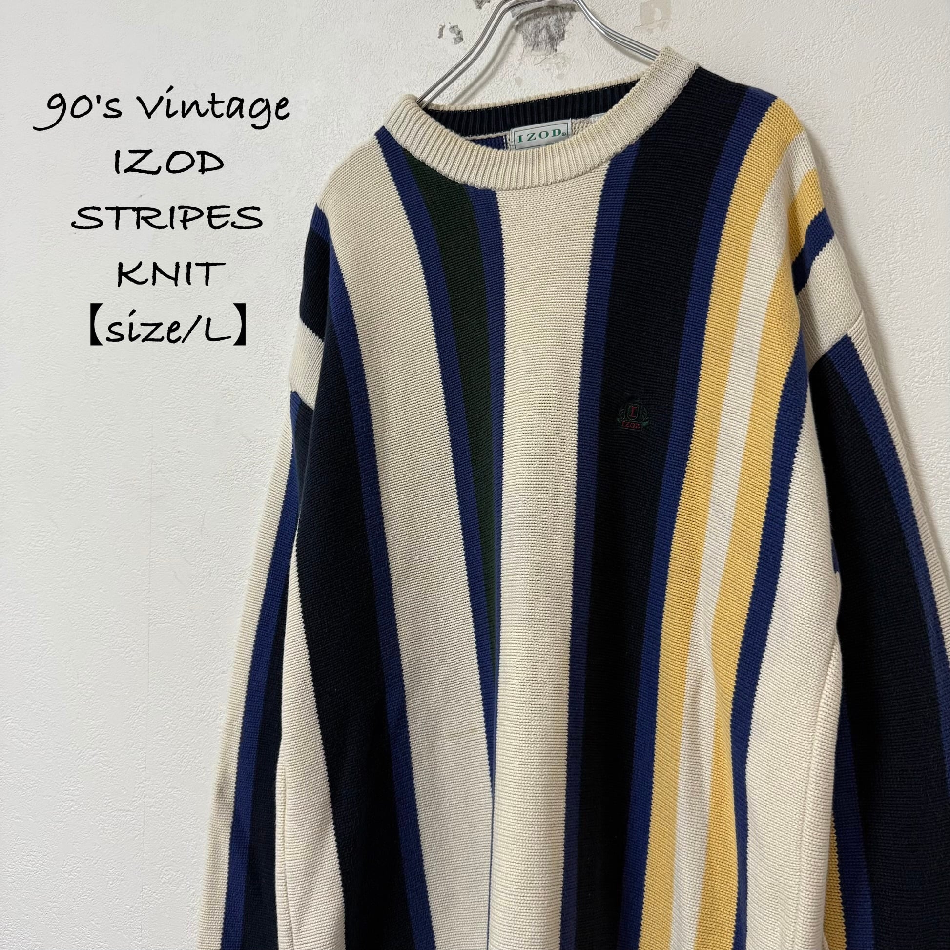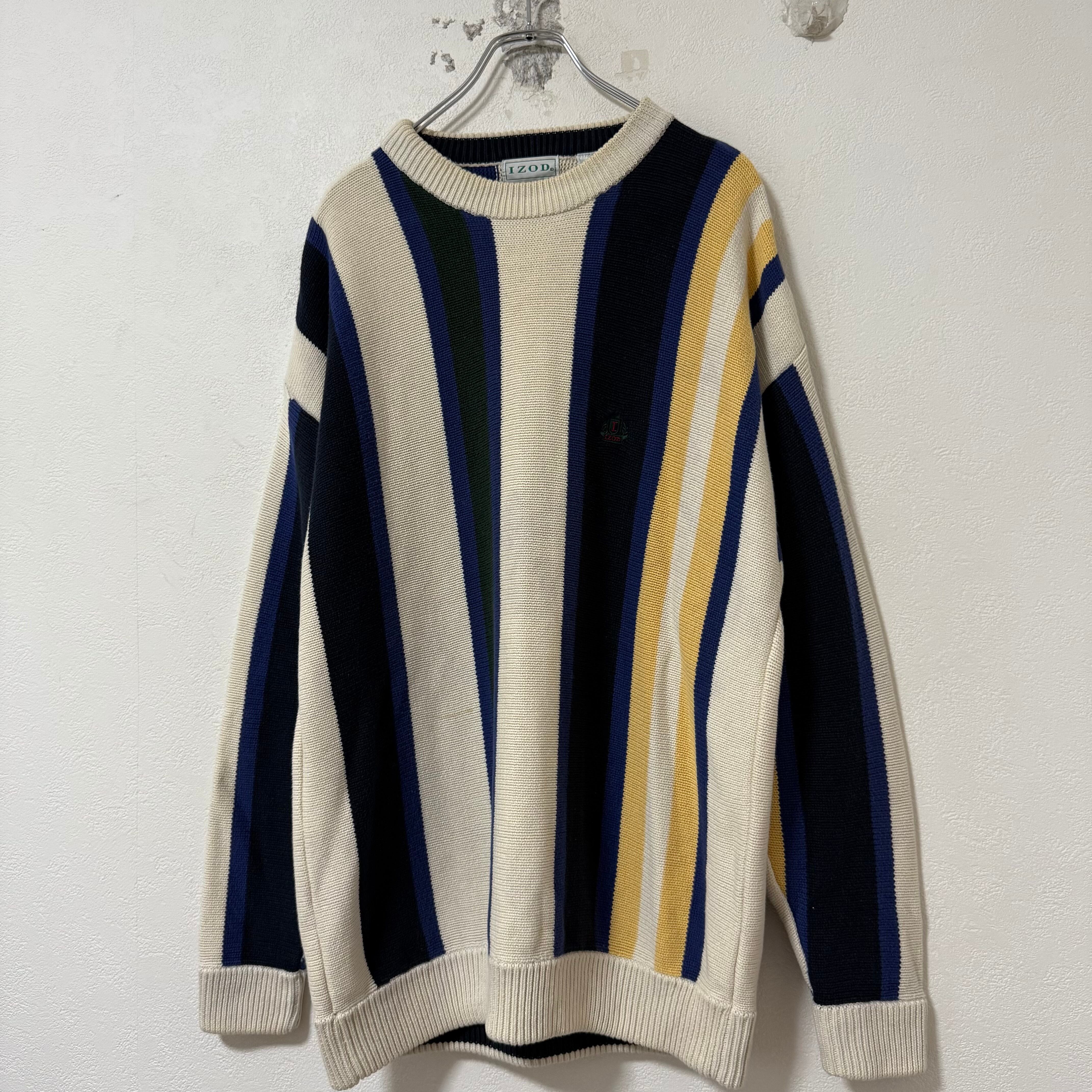 90s★IZOD/アイゾッド★ストライプ★ニット/セーター★生成り黒紺青黄★L