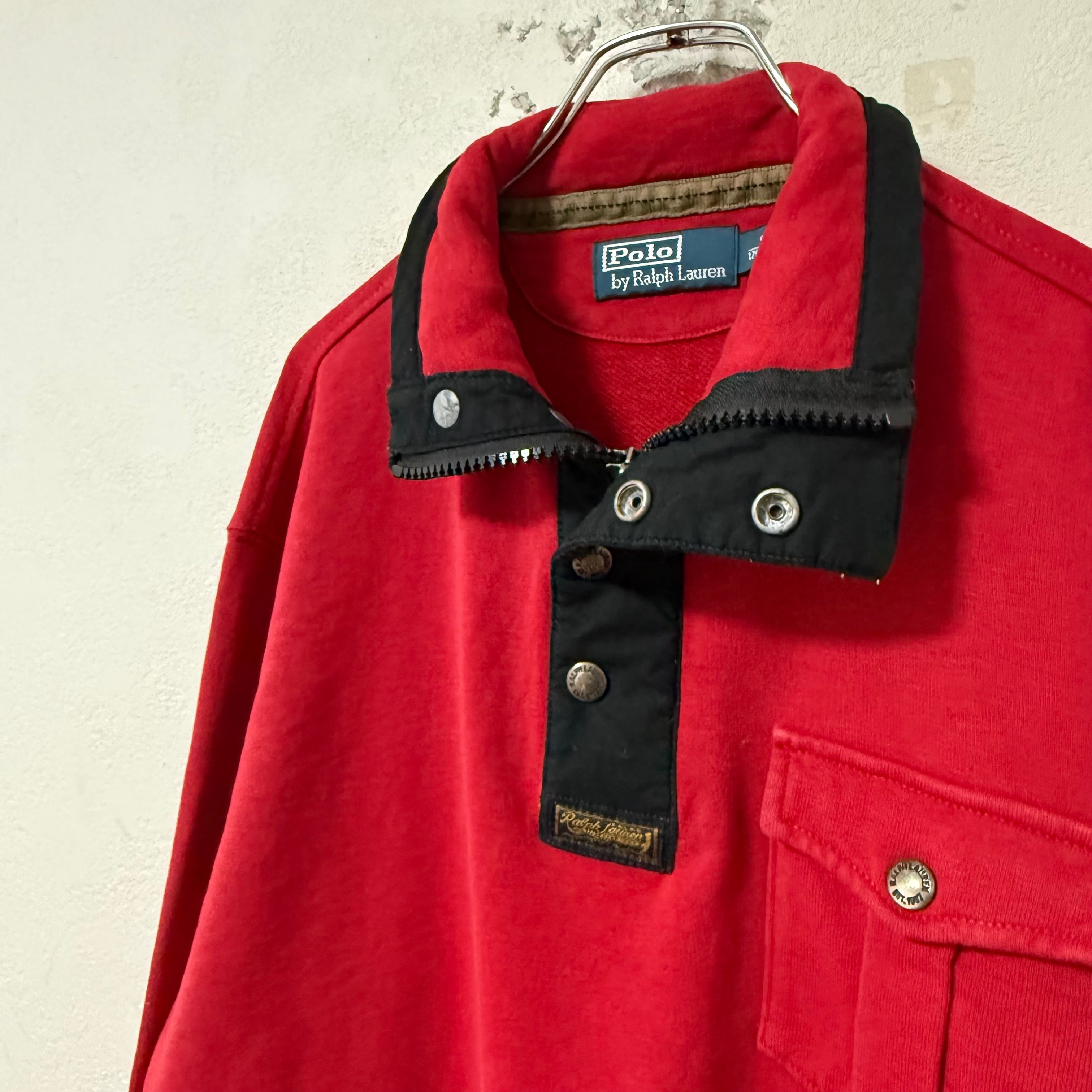 90s★ポロラルフローレン★スナップt★スウェット★ハーフジップ★赤黒★SM相当