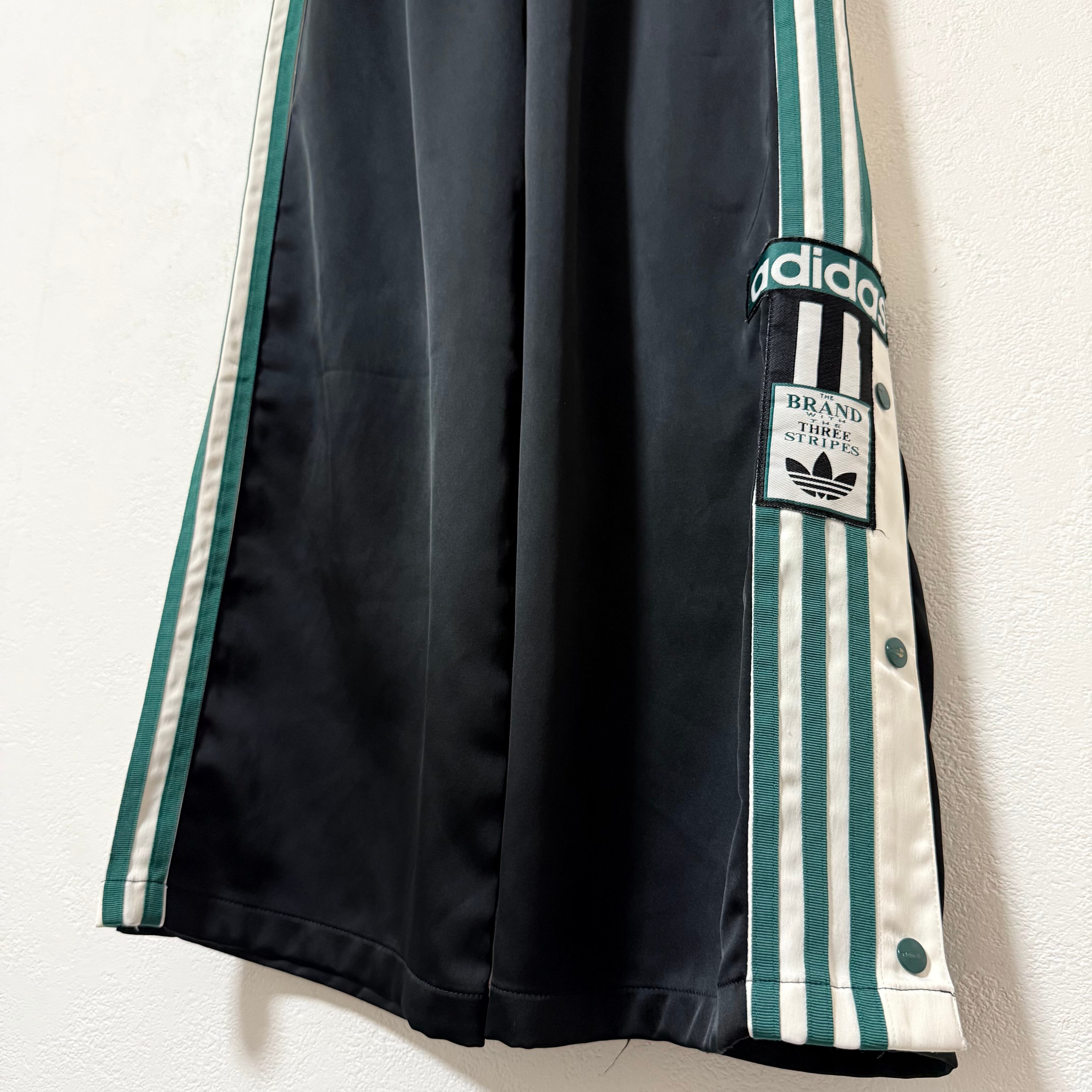 adidas/アディダス★トラックパンツ/ジャージ★ワイド★スナップ★黒緑白★S