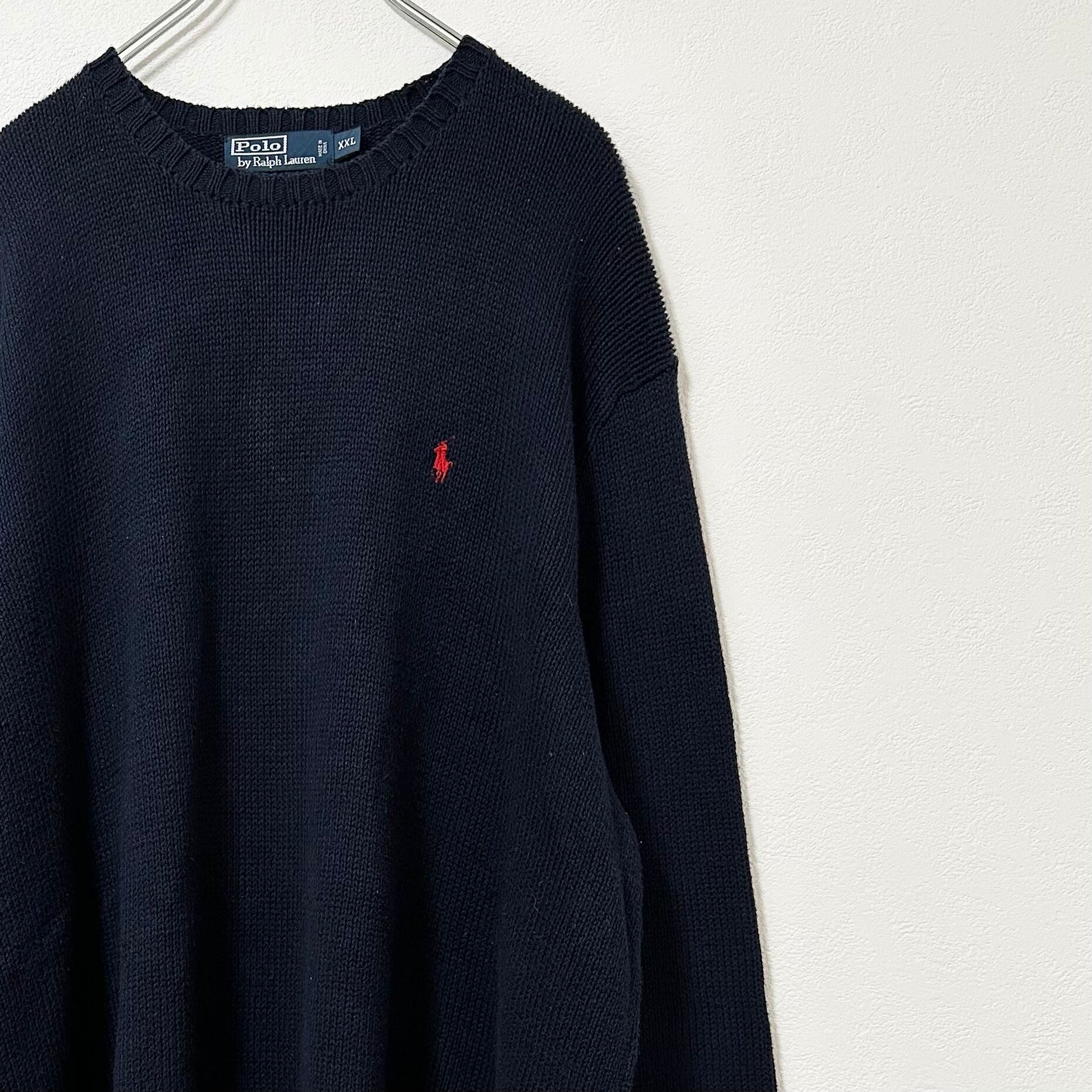 Polo by Ralph Lauren/ポロ バイ ラルフローレン★ニット・セーター★無地/ワンポイントポニー★ネイビー×レッド/紺×赤★XXLサイズ
