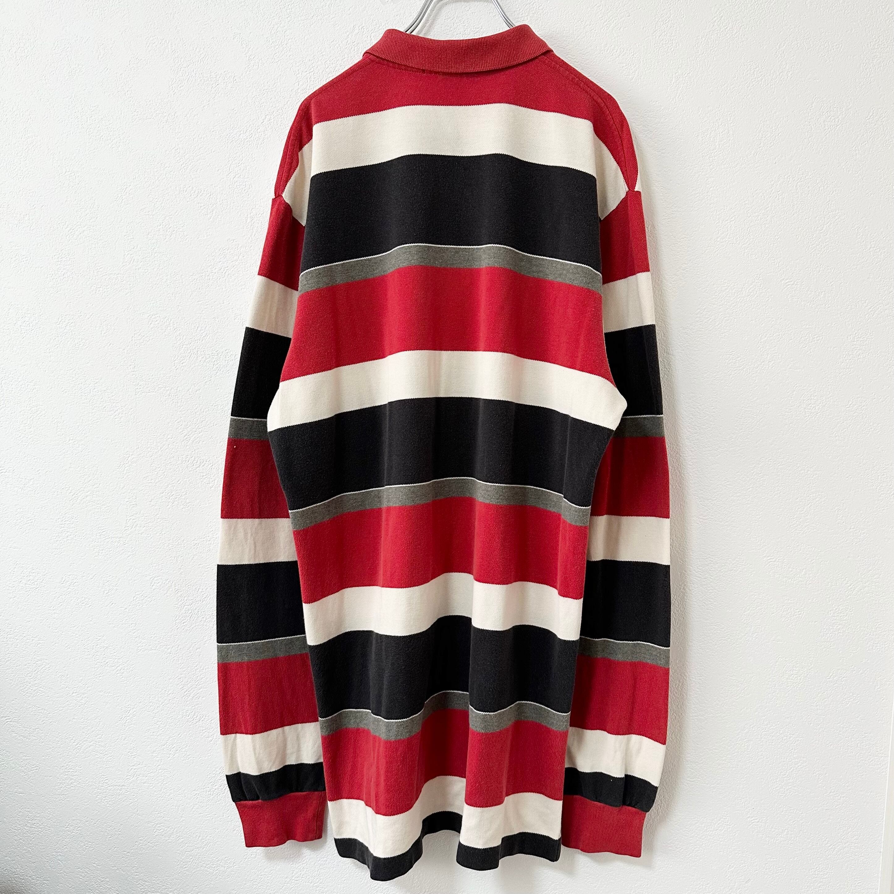 Polo by Ralph Lauren★ポロバイラルフローレン★長袖ポロシャツ★ボーダー★レッド×ベージュ×ブラウン×グレー/赤×茶×灰★XL〜相当