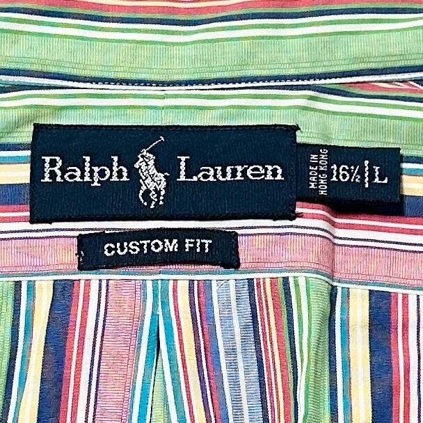 Polo Ralph Lauren★ポロラルフローレン★長袖シャツ★ストライプ★グリーン/緑×ブルー/青×ピンク★Lサイズ