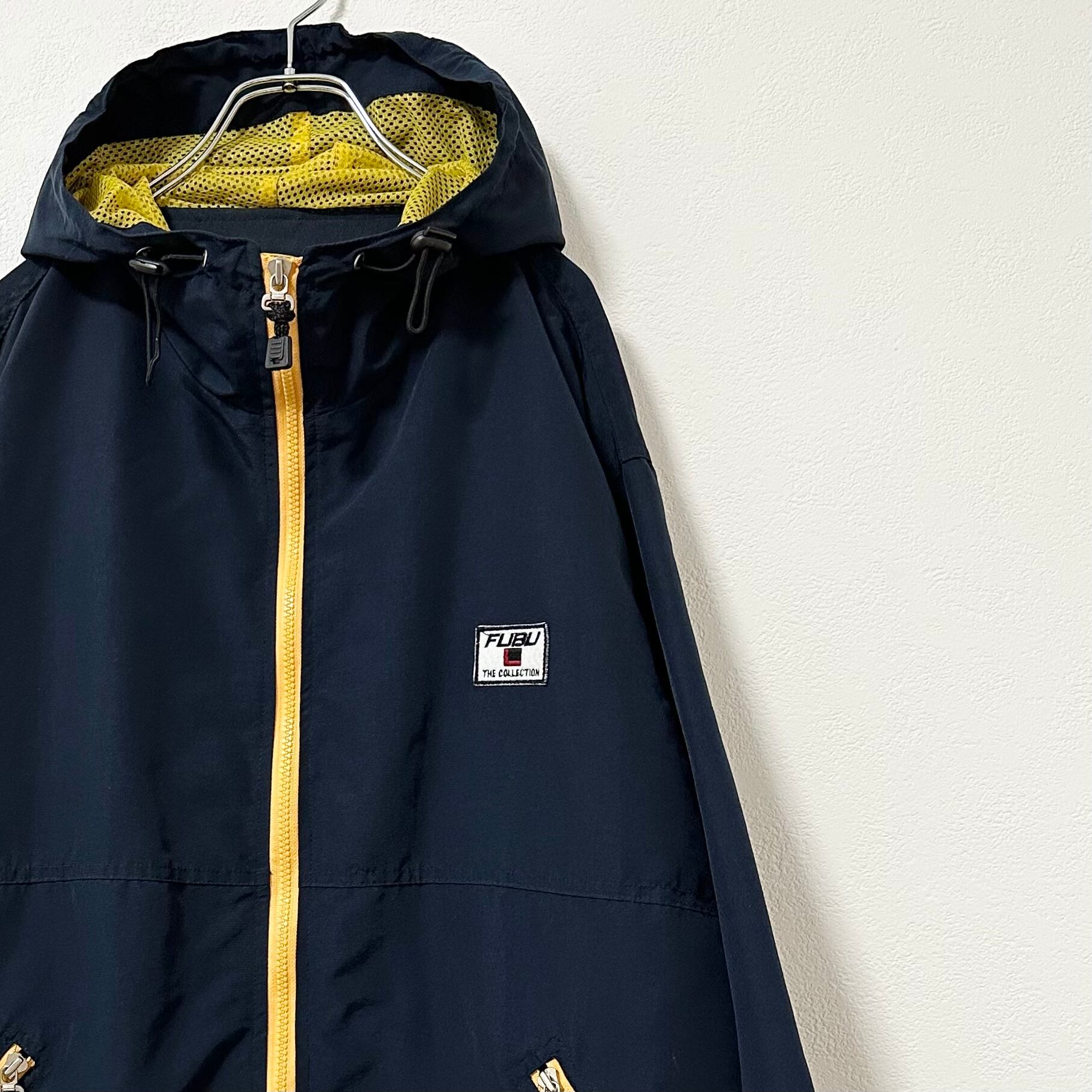 FUBU/フブ★ジップパーカー★フードジャケット★ブルゾン★ネイビー×イエロー×ホワイト/紺×黄×白★Lサイズ相当