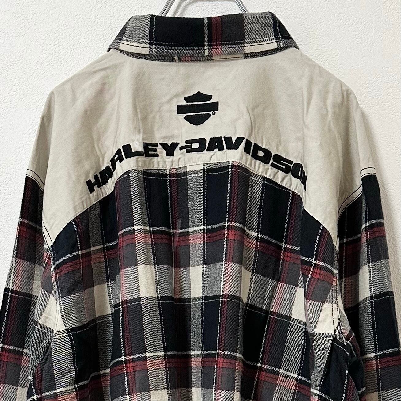 HARLEY-DAVIDSON/ハーレーダビッドソン★ネルシャツ★チェック★エルボーパッチ★ブラック/黒×赤×白×ベージュ系★XL