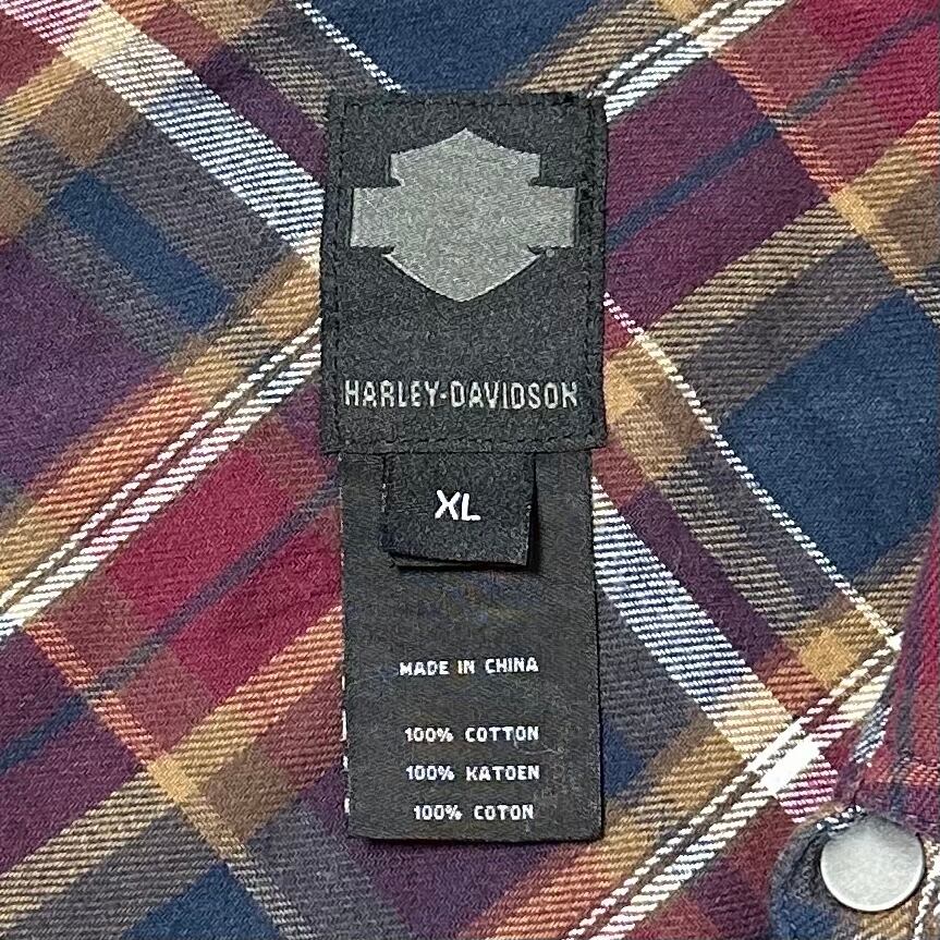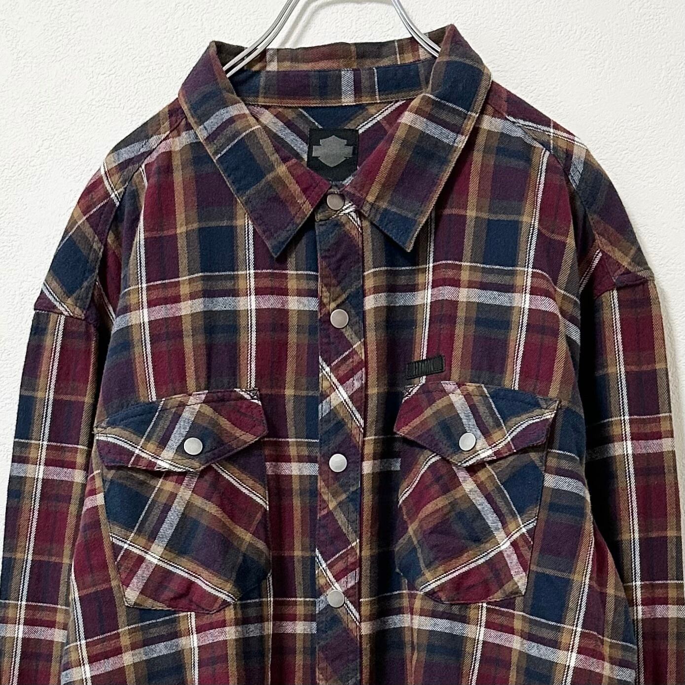 HARLEY-DAVIDSON/ハーレーダビッドソン★長袖チェックシャツ★バーガンディ・ワイン・ボルドー系★XL