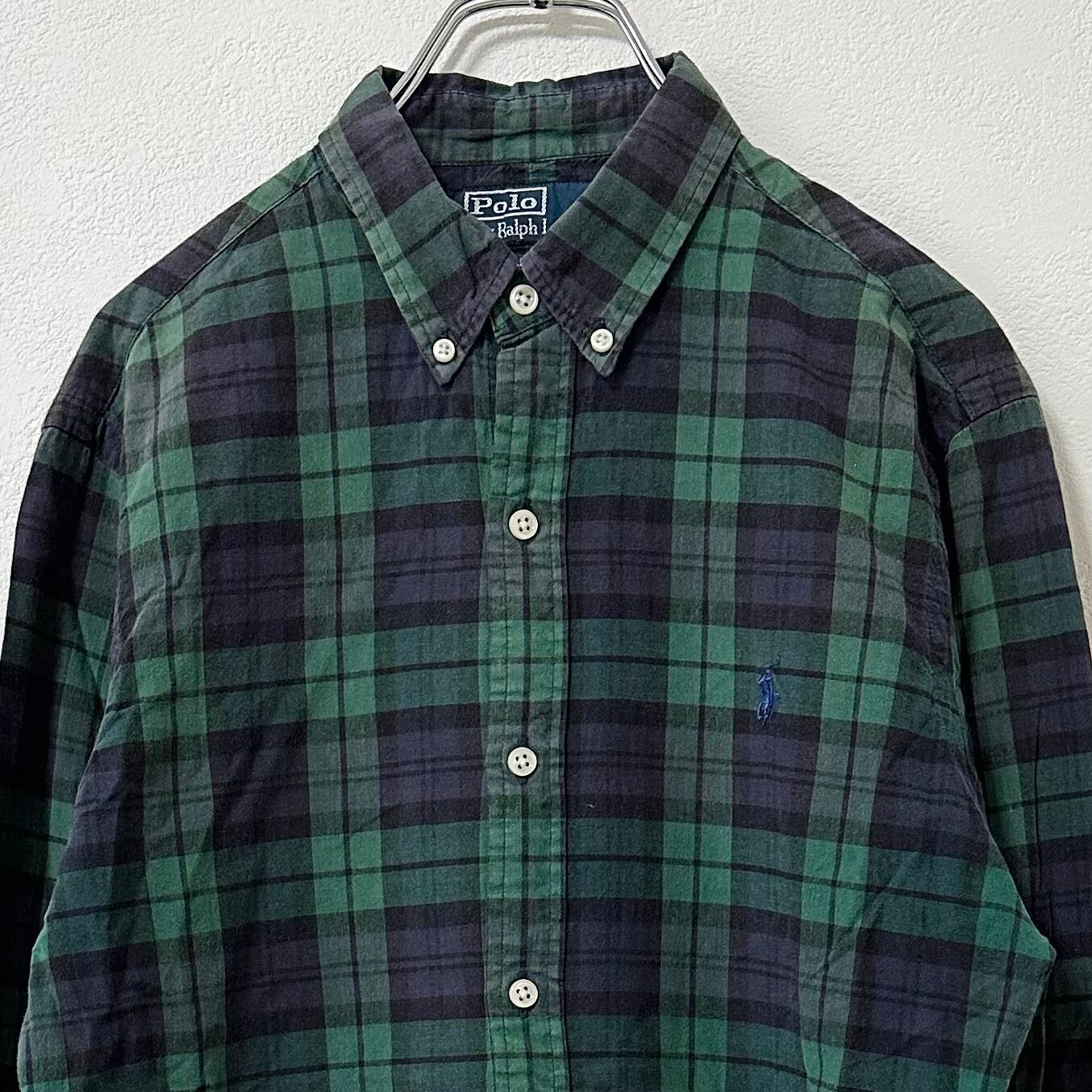 ×Polo by Ralph Lauren/ポロ バイ ラルフローレン★90's★長袖チェックシャツ★ブラックウォッチ★グリーン×ネイビー/緑×紺★S