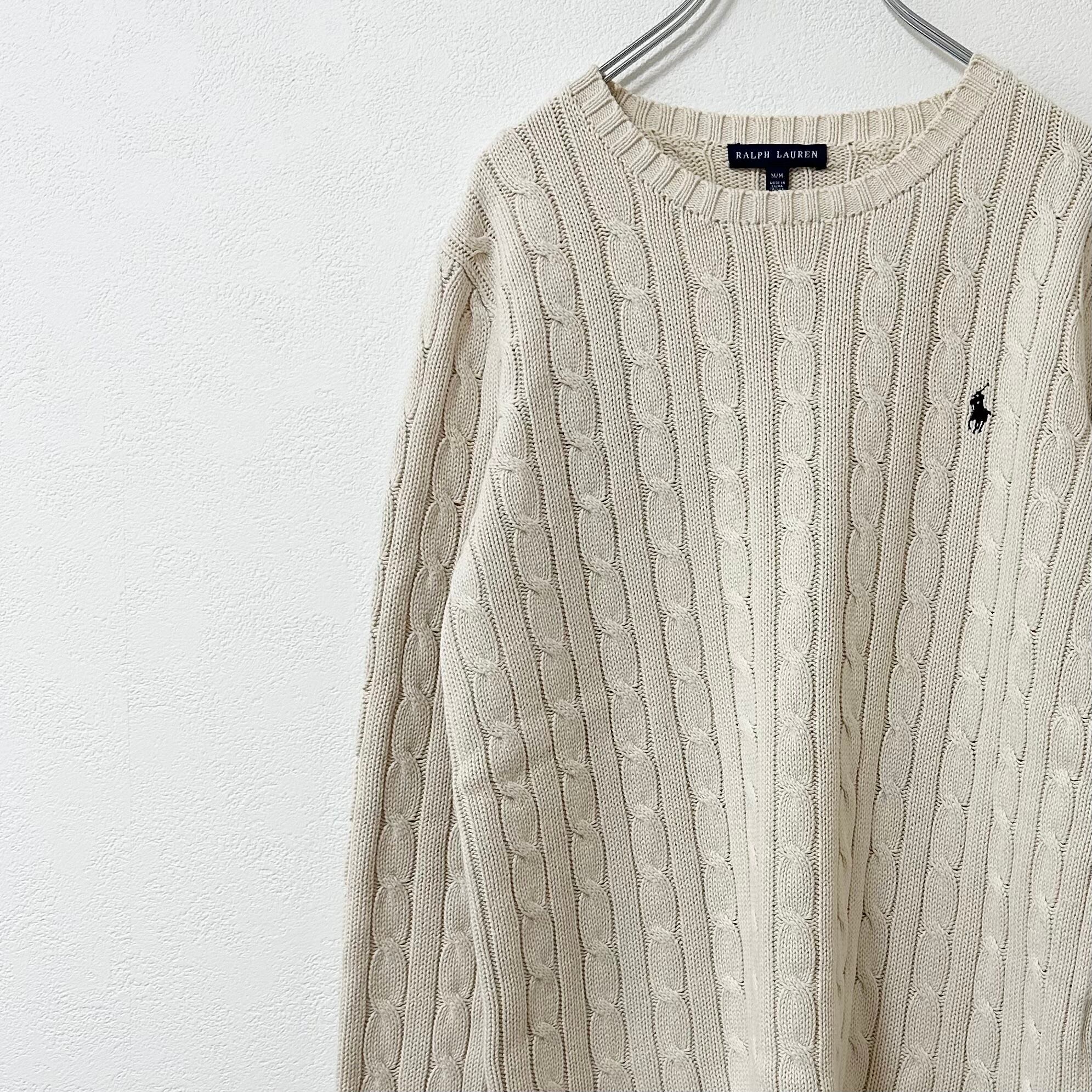 Polo Ralph Lauren/ポロ ラルフローレン★ケーブルニット・セーター★オフホワイト・生成り/白★M