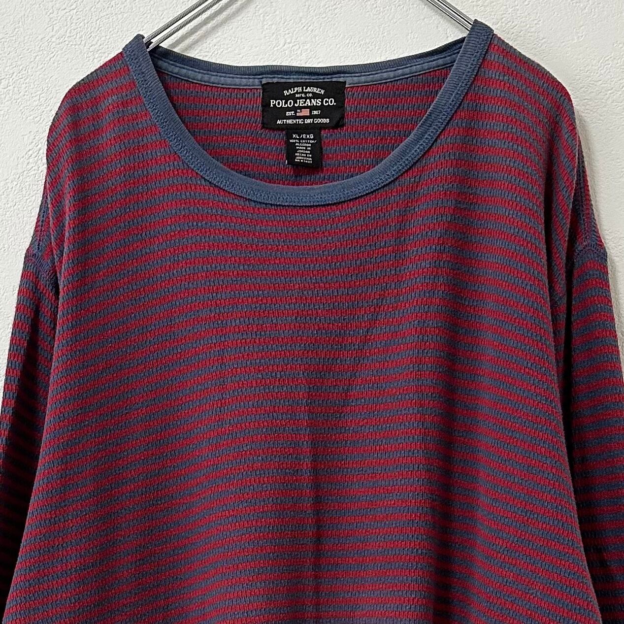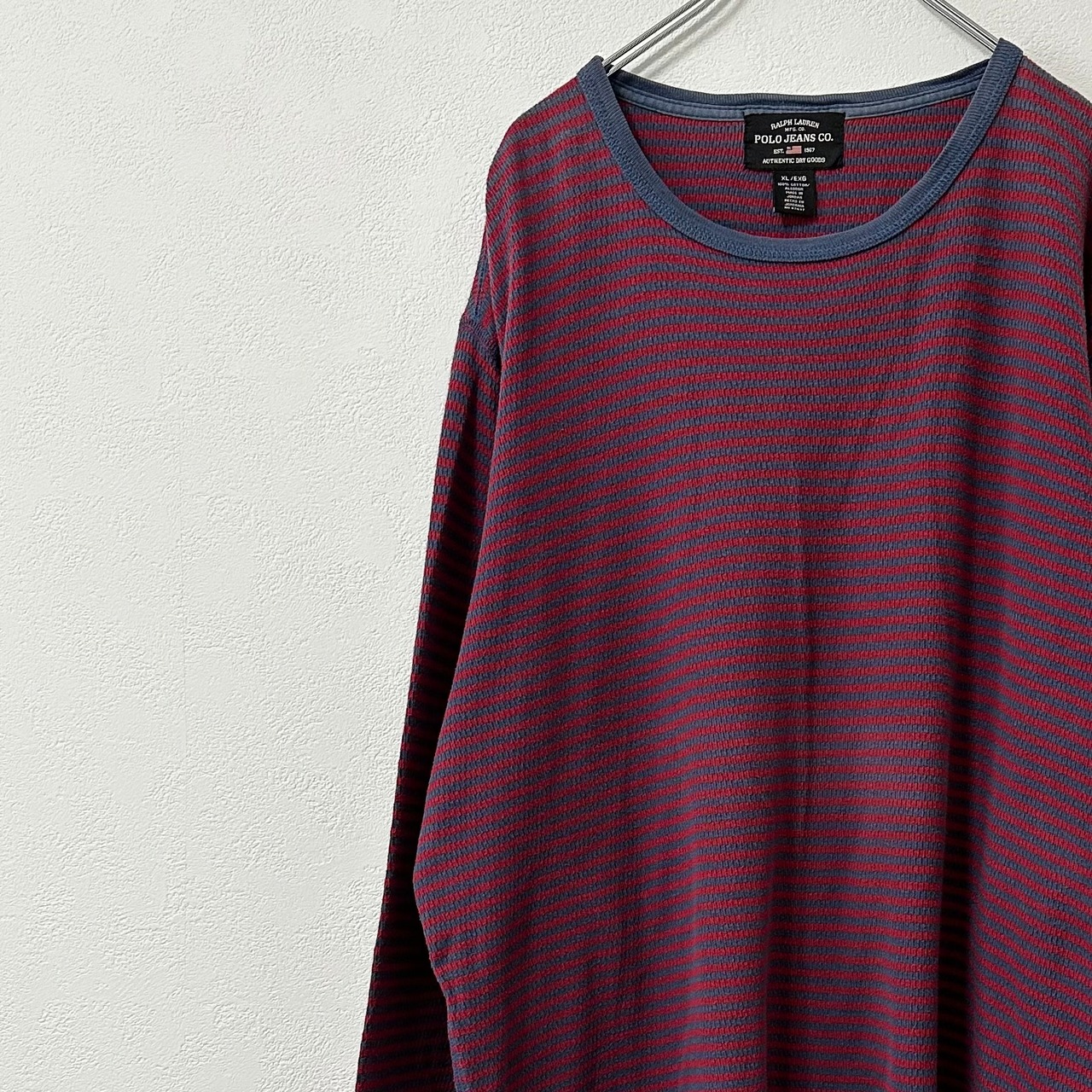 POLO JEANS CO./ポロジーンズ★RALPH LAUREN/ラルフローレン★長袖Tシャツ/ロンT★ワッフル★ボーダー★レッド×ネイビー/赤紺★XL