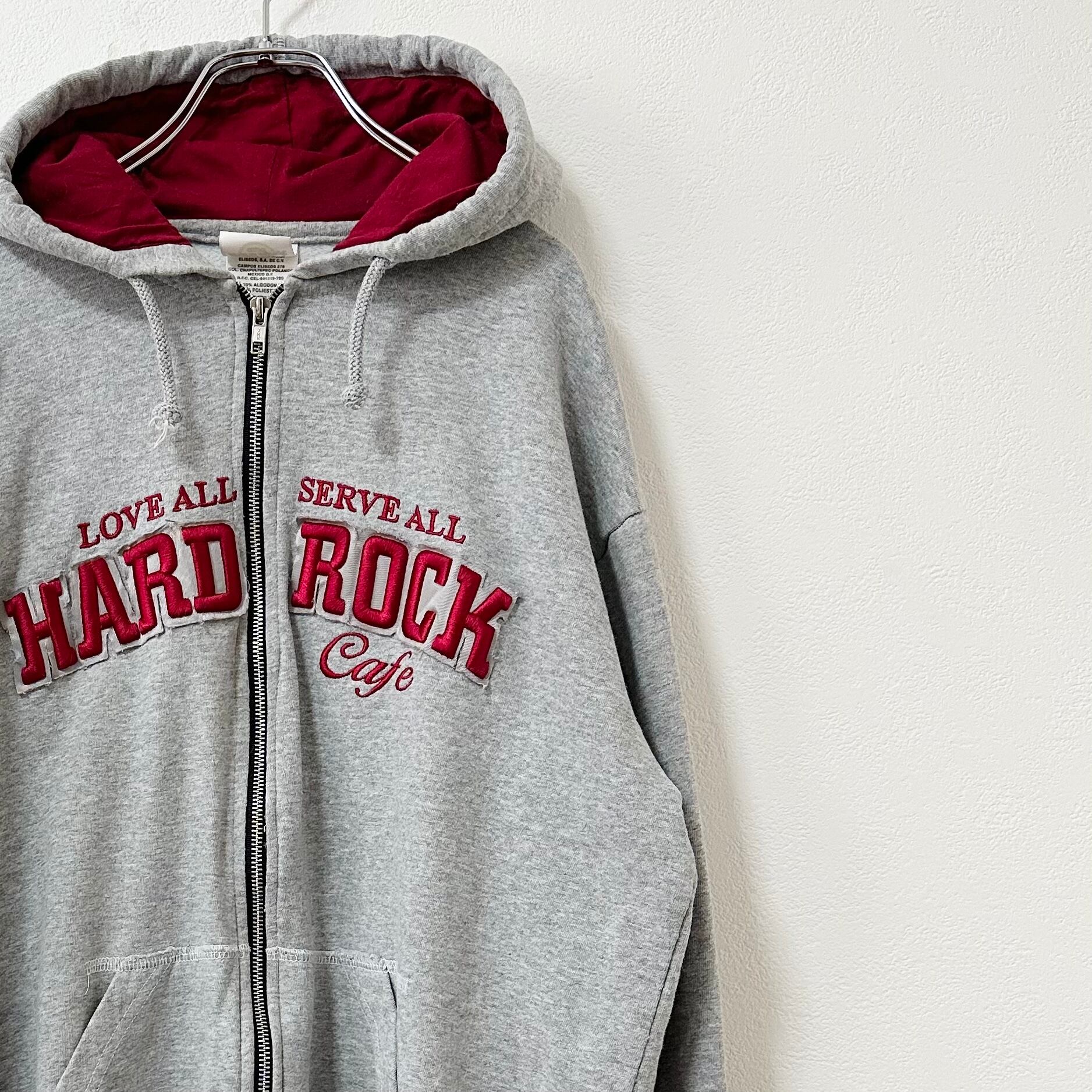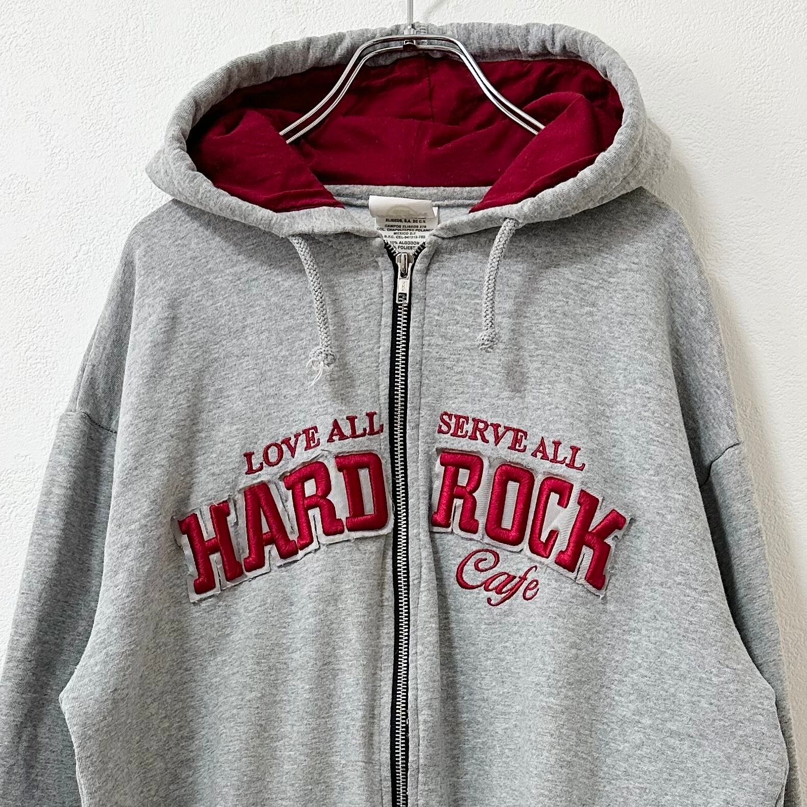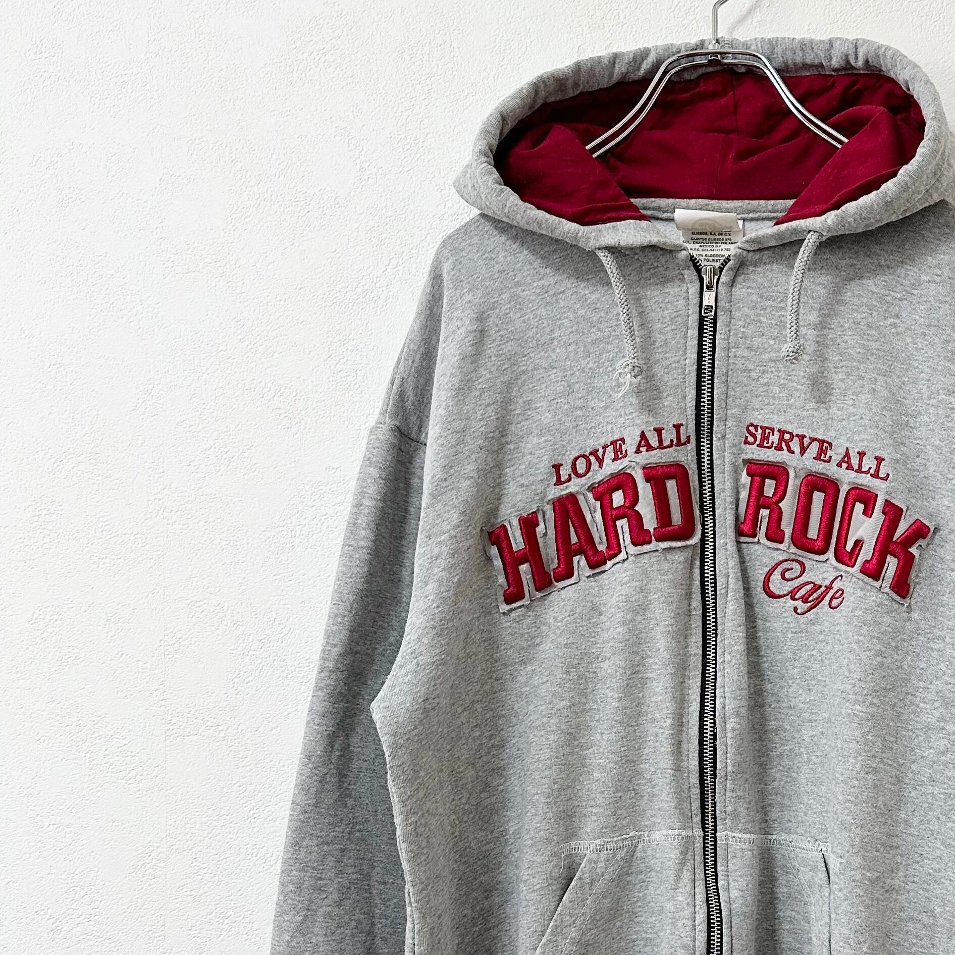 HARD ROCK CAFE/ハードロックカフェ★スウェットジップパーカー★刺繍ロゴ★グレー×レッド/赤★L