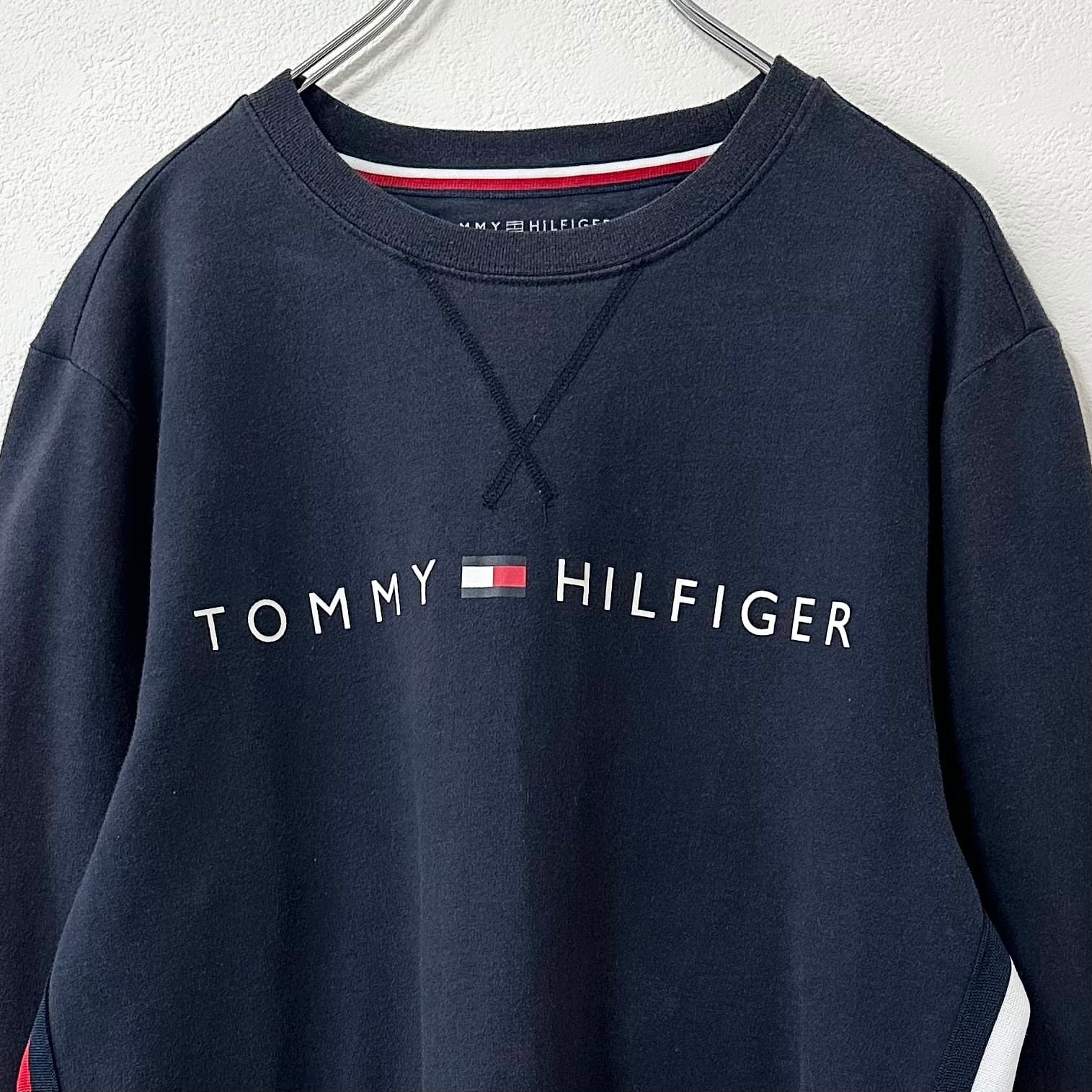 Tommy Hilfiger/トミーヒルフィガー★スウェット/トレーナー★薄手★Vガゼット★ネイビー×レッド×ホワイト/紺赤白★M