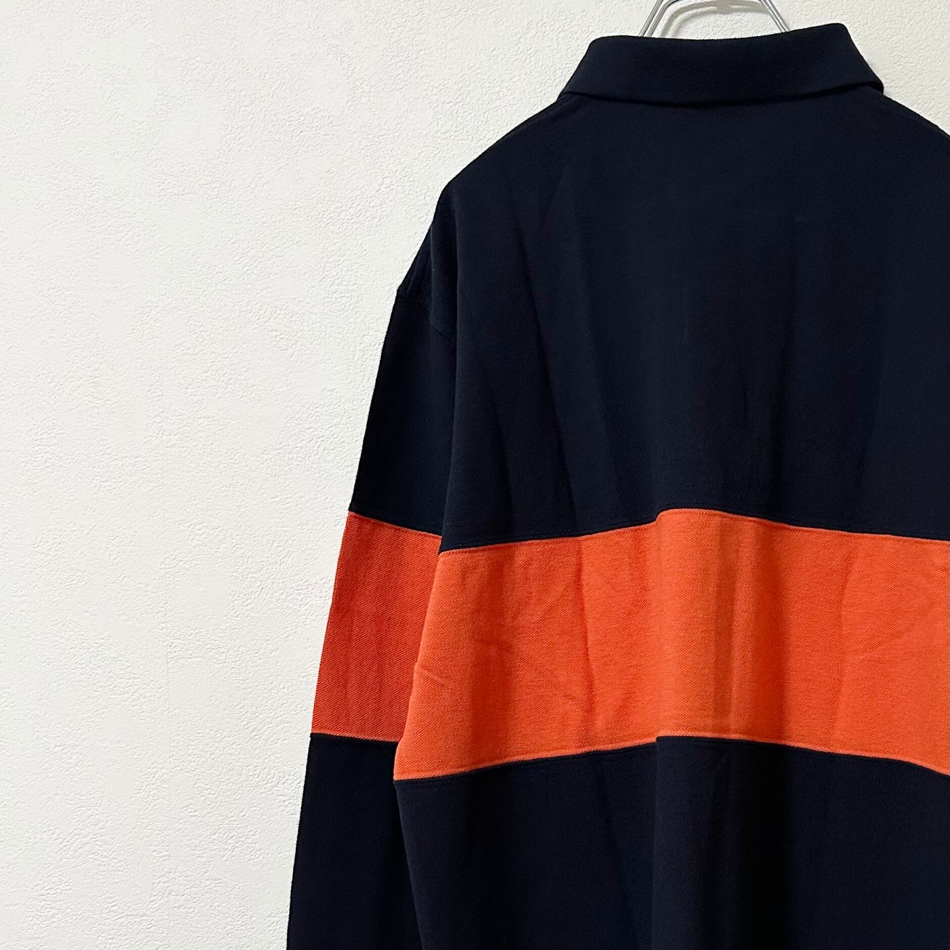 Polo by Ralph Lauren/ポロ バイ ラルフローレン★90s★ラガーシャツ★デッドストック★日本製★ネイビー/紺×オレンジ×グリーン/緑★新品未使用★タグ付★L