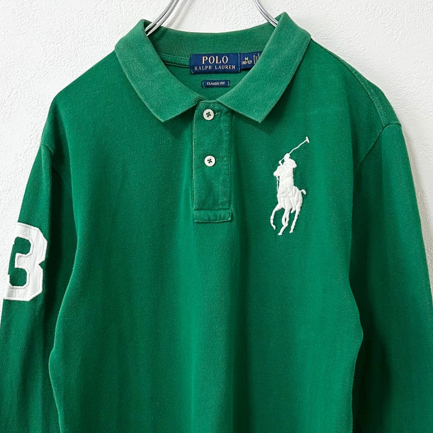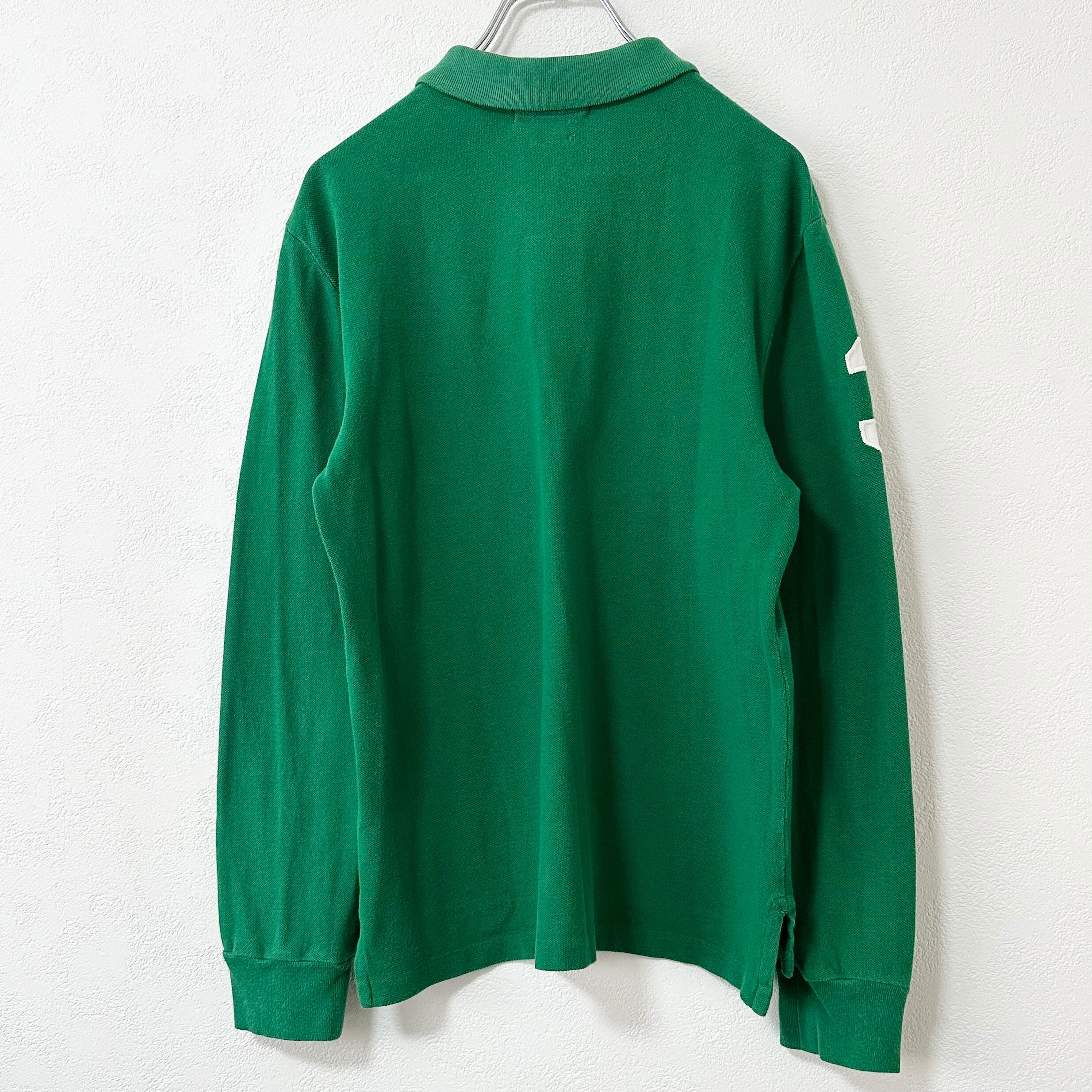 Polo Ralph Lauren/ポロラルフローレン★長袖ポロシャツ★ビッグポニー★グリーン×ホワイト/緑×白★M