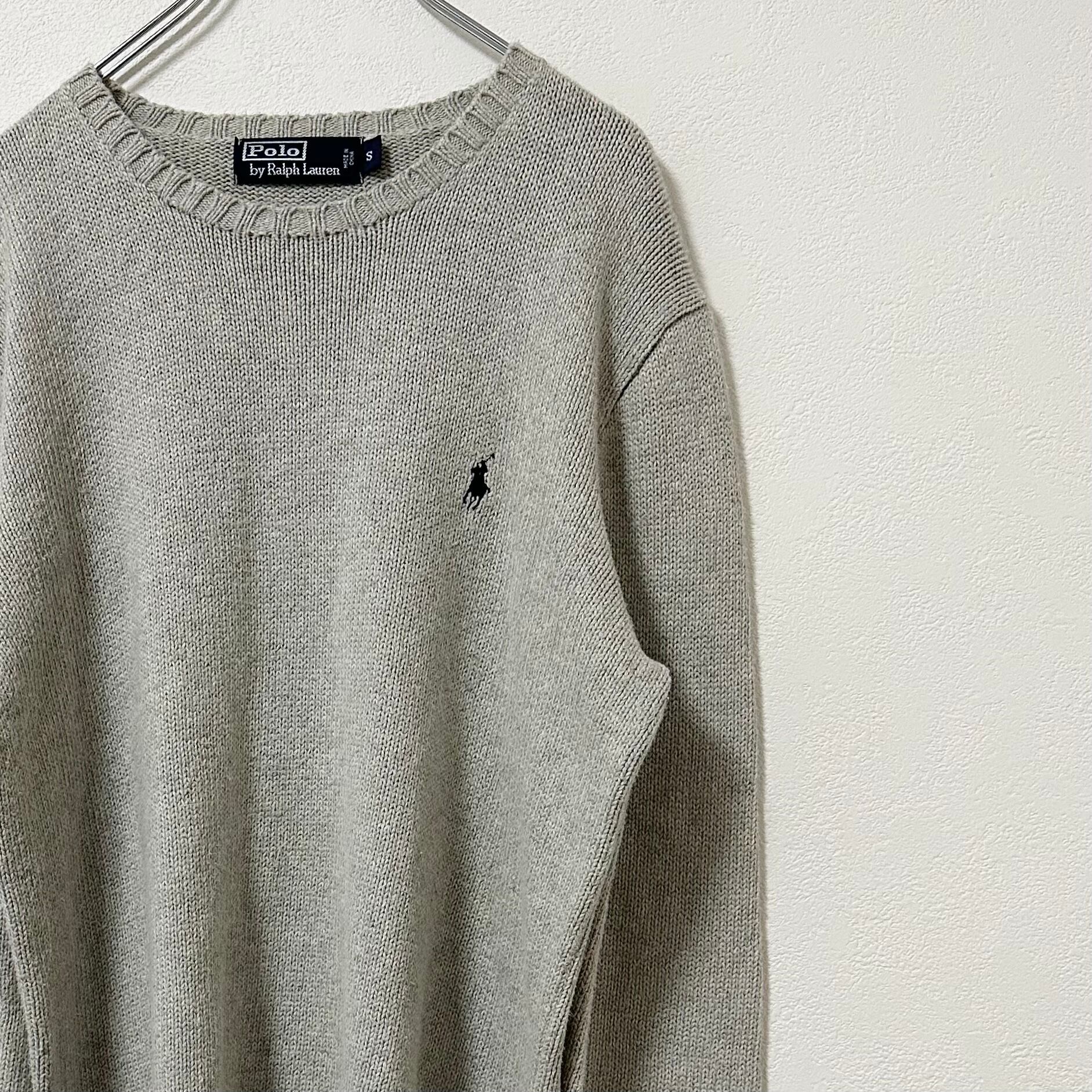 Polo by Ralph Lauren/ポロ バイ ラルフローレン★ニット/セーター★コットン100%★グレー/灰×ネイビー/紺ポニー刺繍★S