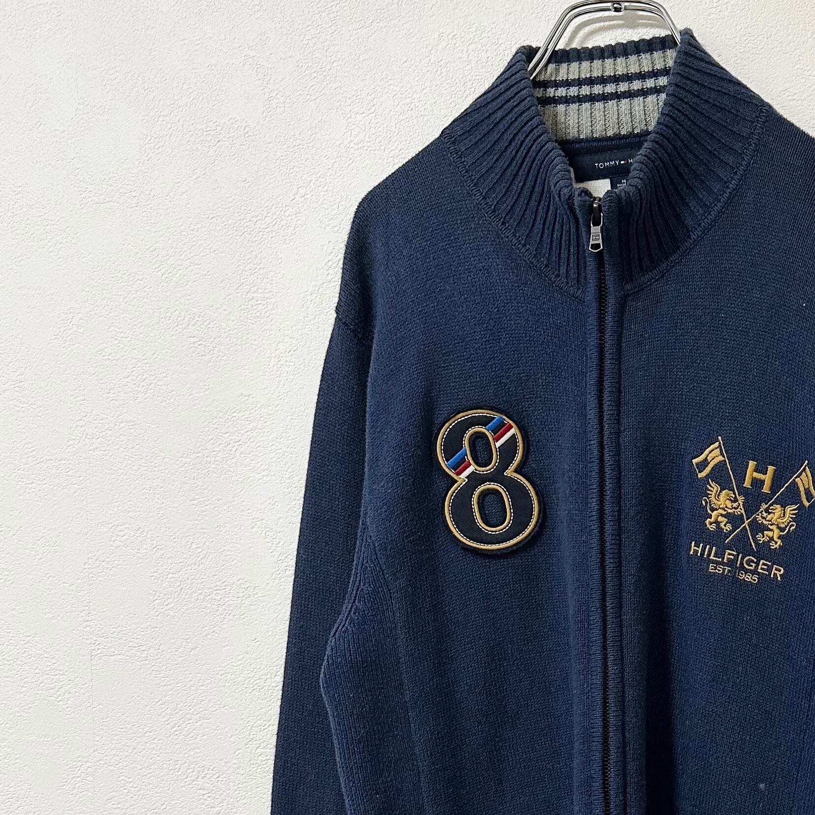 TOMMY HILFIGER/トミーヒルフィガー★フルジップアップ★ニット・セーター★ネイビー/紺×グレー★M