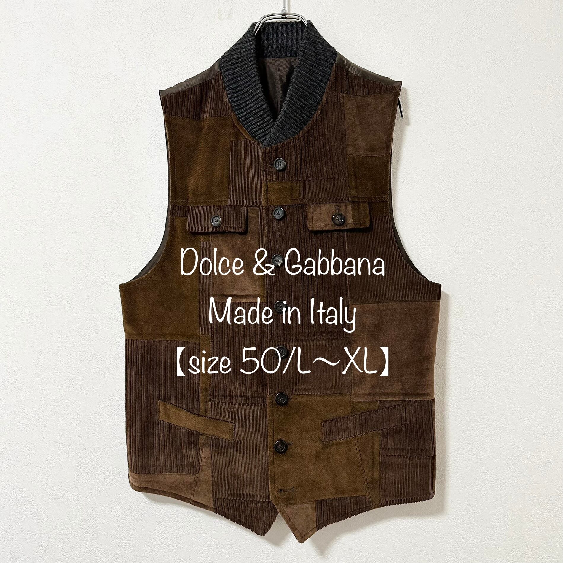 Dolce&Gabbana/ドルチェ&ガッバーナ★ドルガバ★ジレ/ベスト★イタリア製★パッチワーク★コーデュロイ★ブラウン/茶★size50 ※L〜XL相当